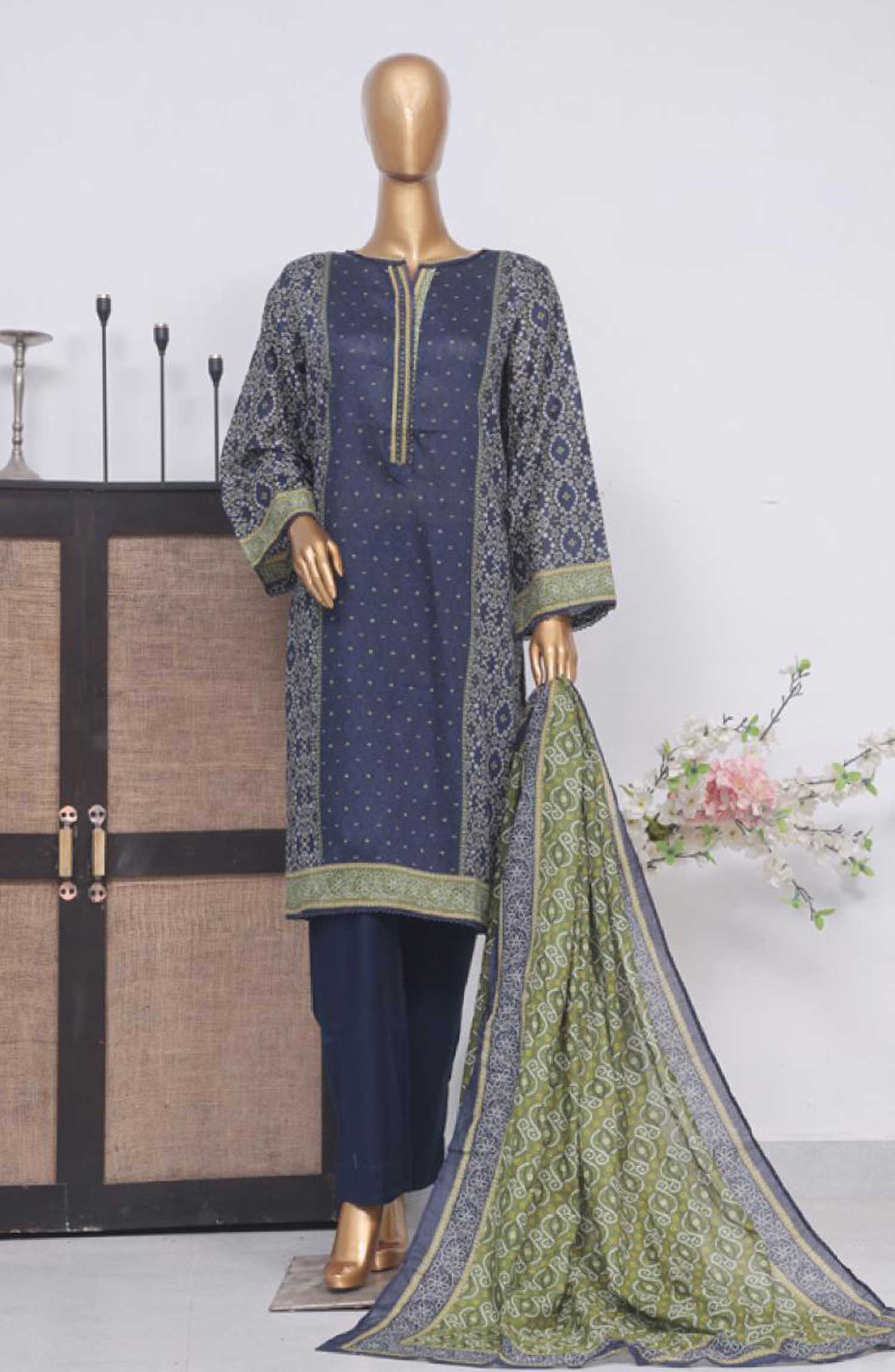 Home Bin Saeed Printed Lawn Stitched 3 Piece - SM 759 - BS25EL - Blue - Summer Collection