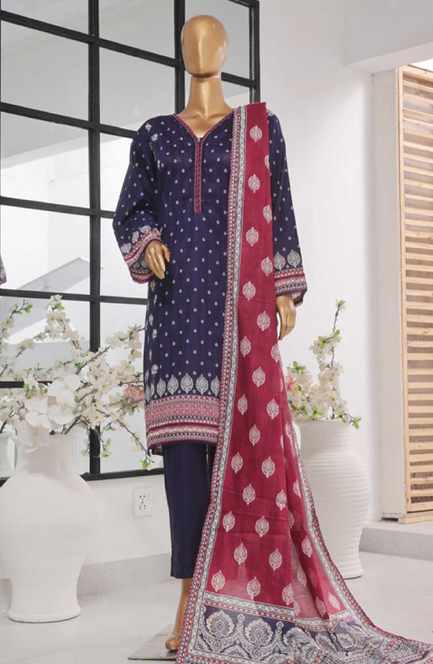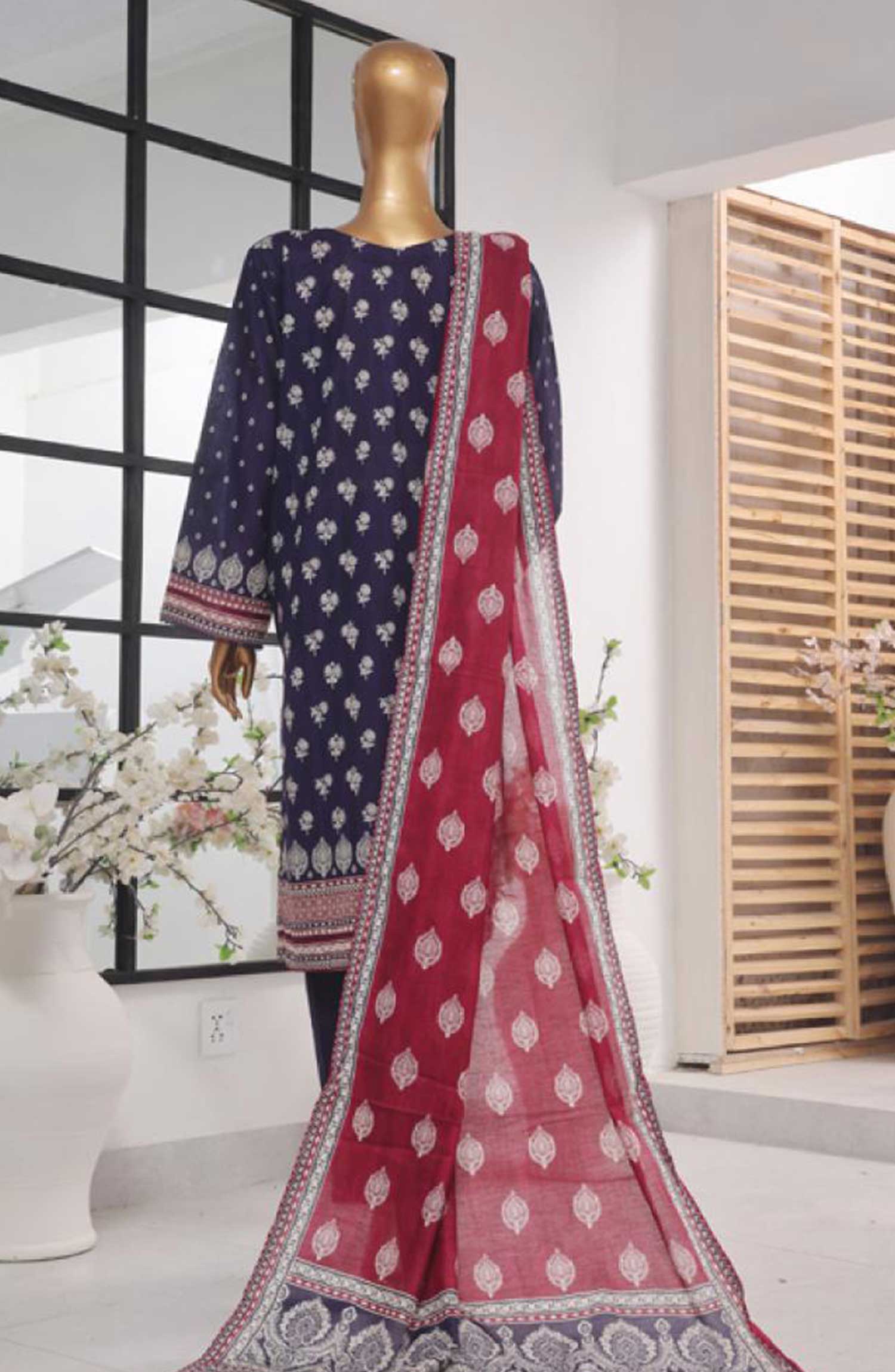 Home Bin Saeed Printed Lawn Stitched 3 Piece - SM 761 - BS25EL - Blue - Summer Collection