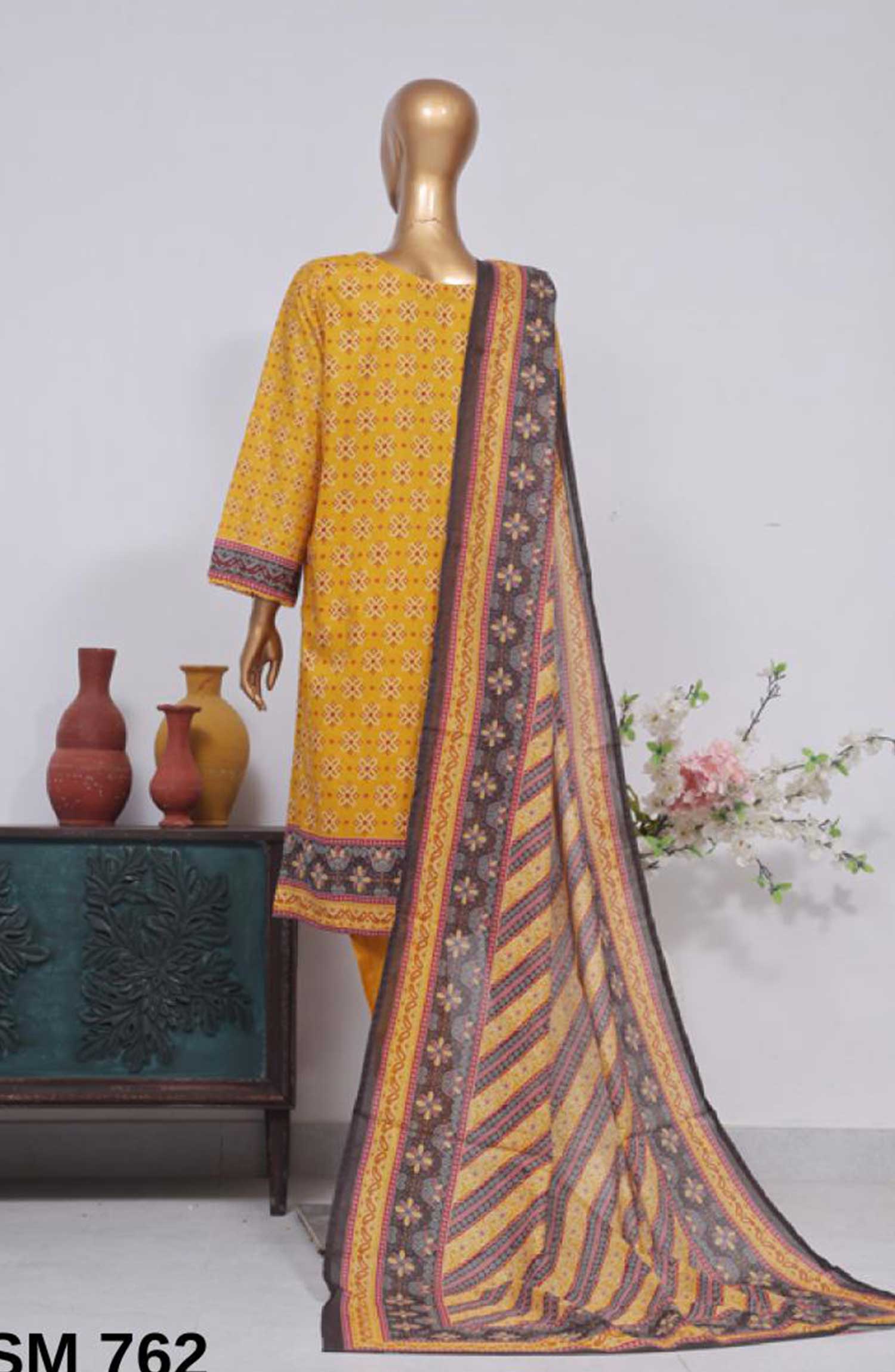 Home Bin Saeed Printed Lawn Stitched 3 Piece - SM 762 - BS25EL - Yellow - Summer Collection