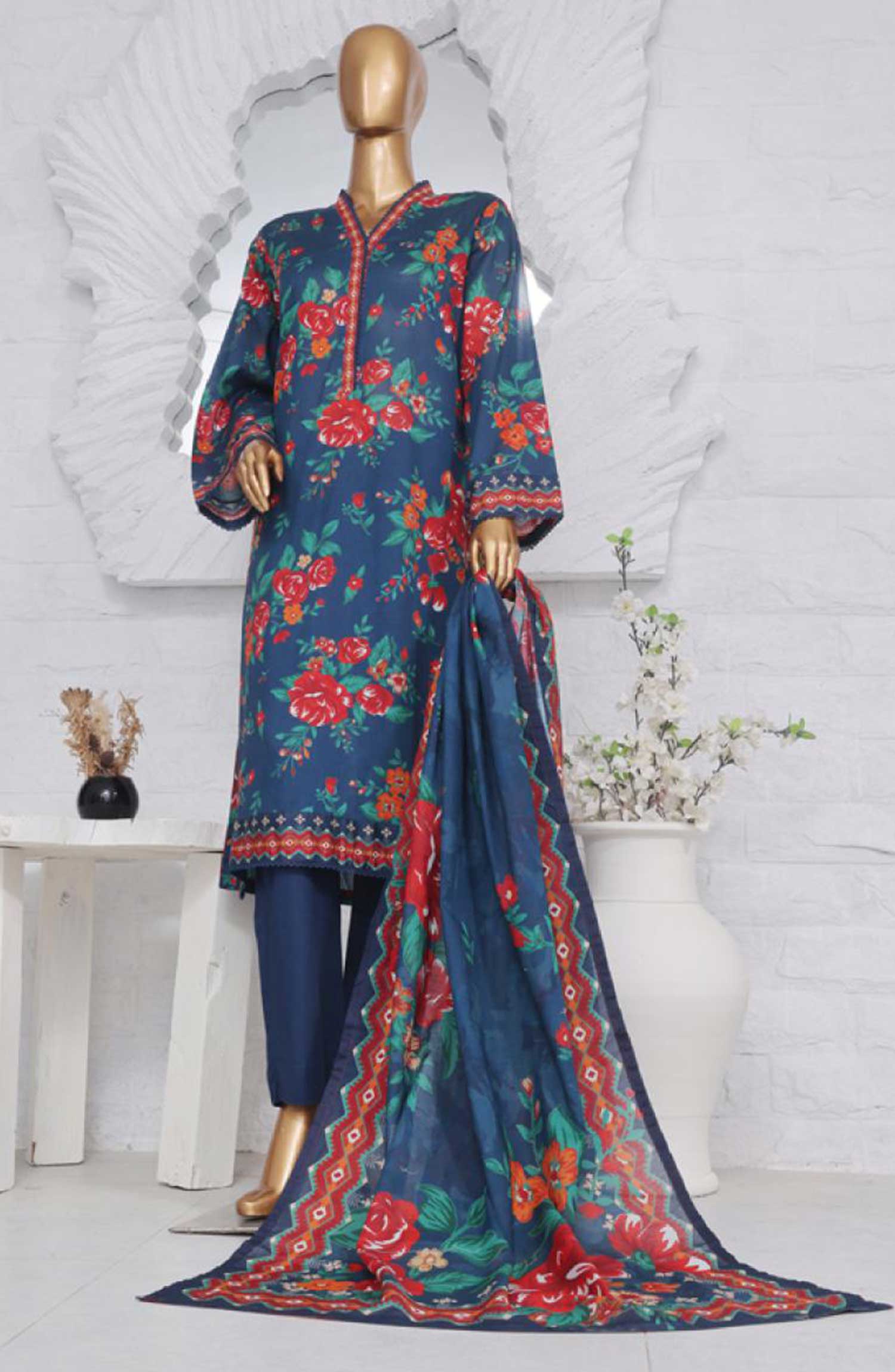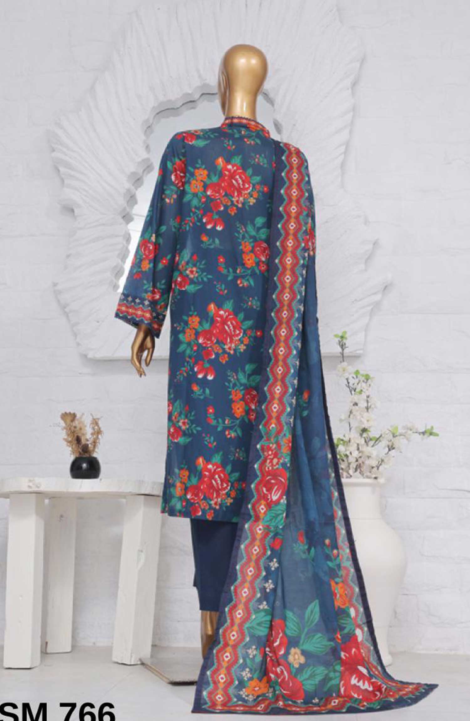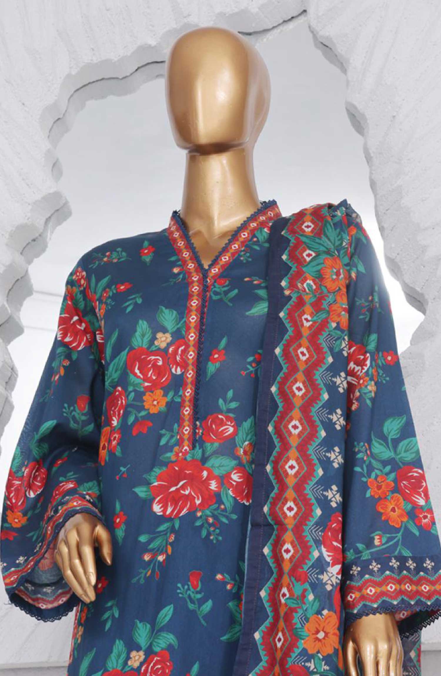 Home Bin Saeed Printed Lawn Stitched 3 Piece - SM-766 - BS25EL - Blue - Summer Collection