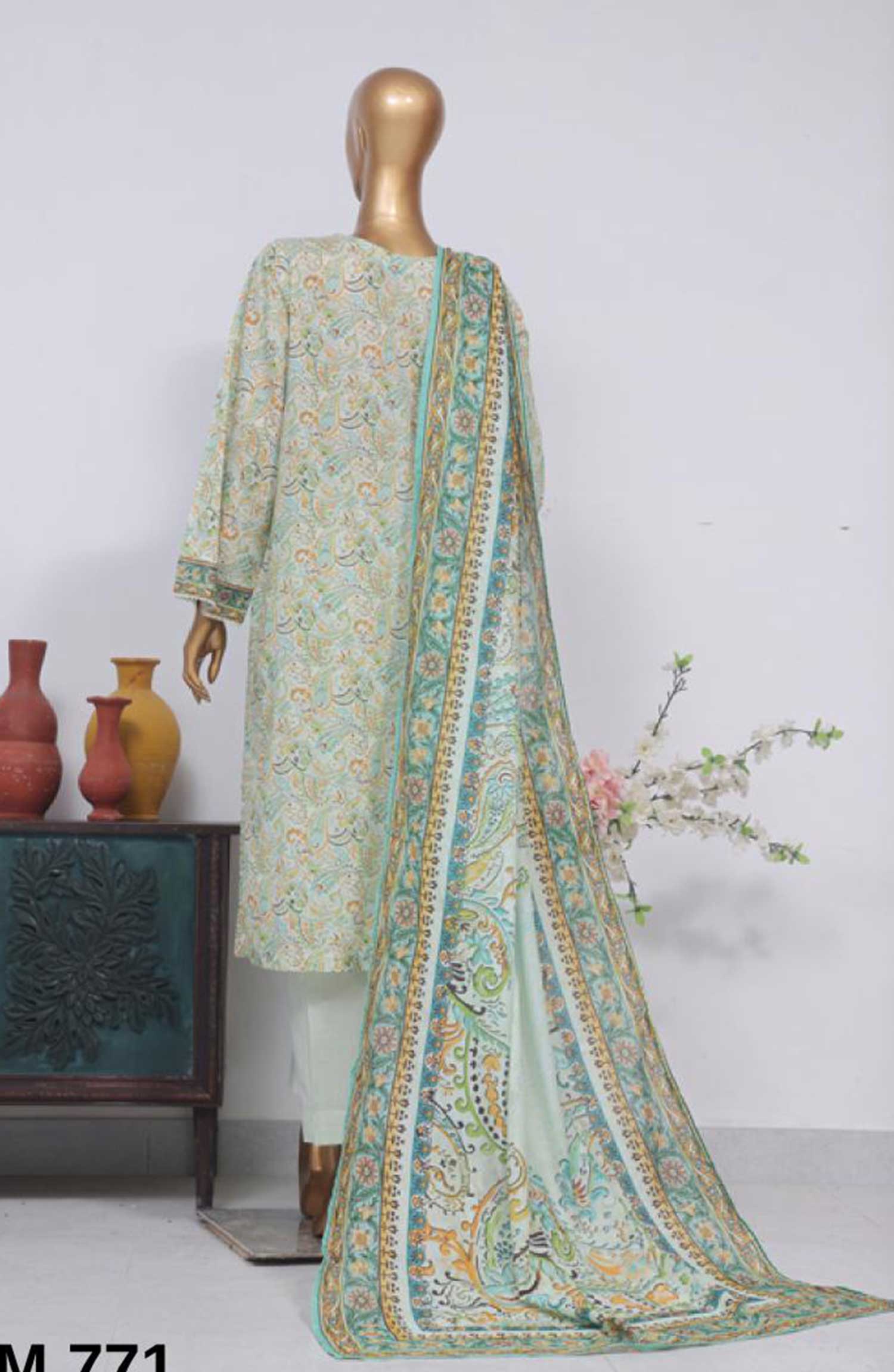 Home Bin Saeed Printed Lawn Stitched 3 Piece - SM-771 - BS25EL - Green - Summer Collection