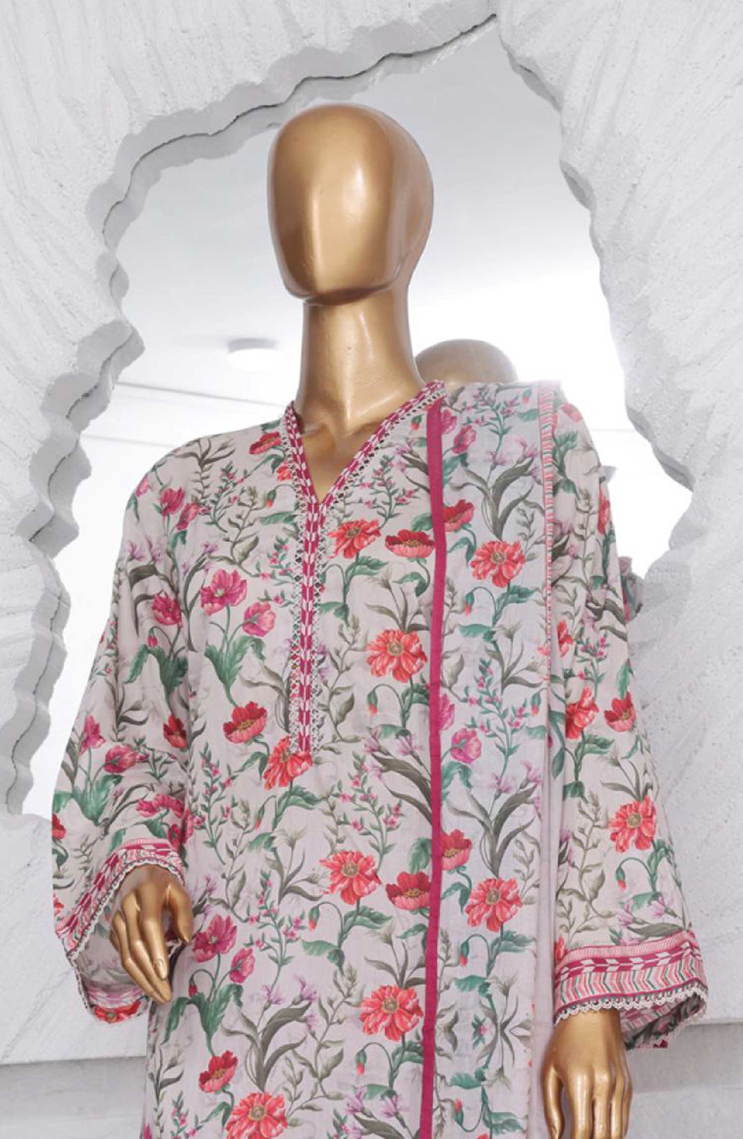 Home Bin Saeed Printed Lawn Stitched 3 Piece - SM-775 - BS25EL - White - Summer Collection