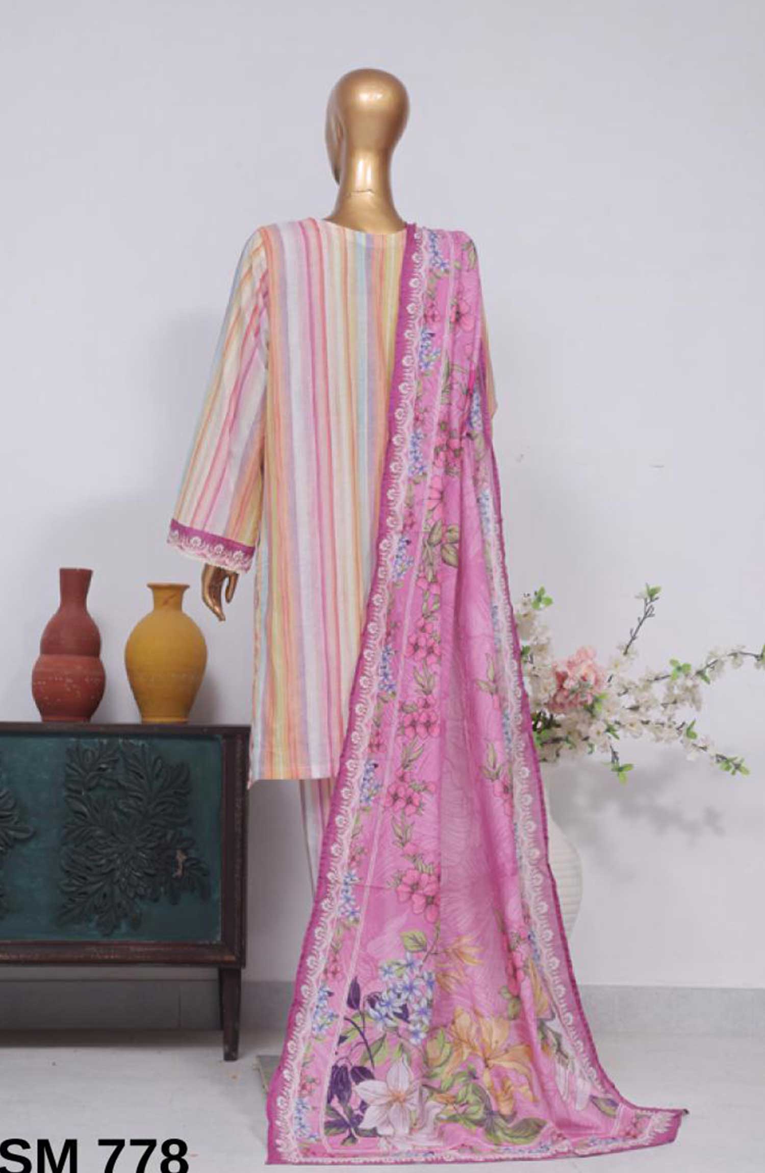 Home Bin Saeed Printed Lawn Stitched 3 Piece - SM 778 - BS25EL - Light Pink - Summer Collection