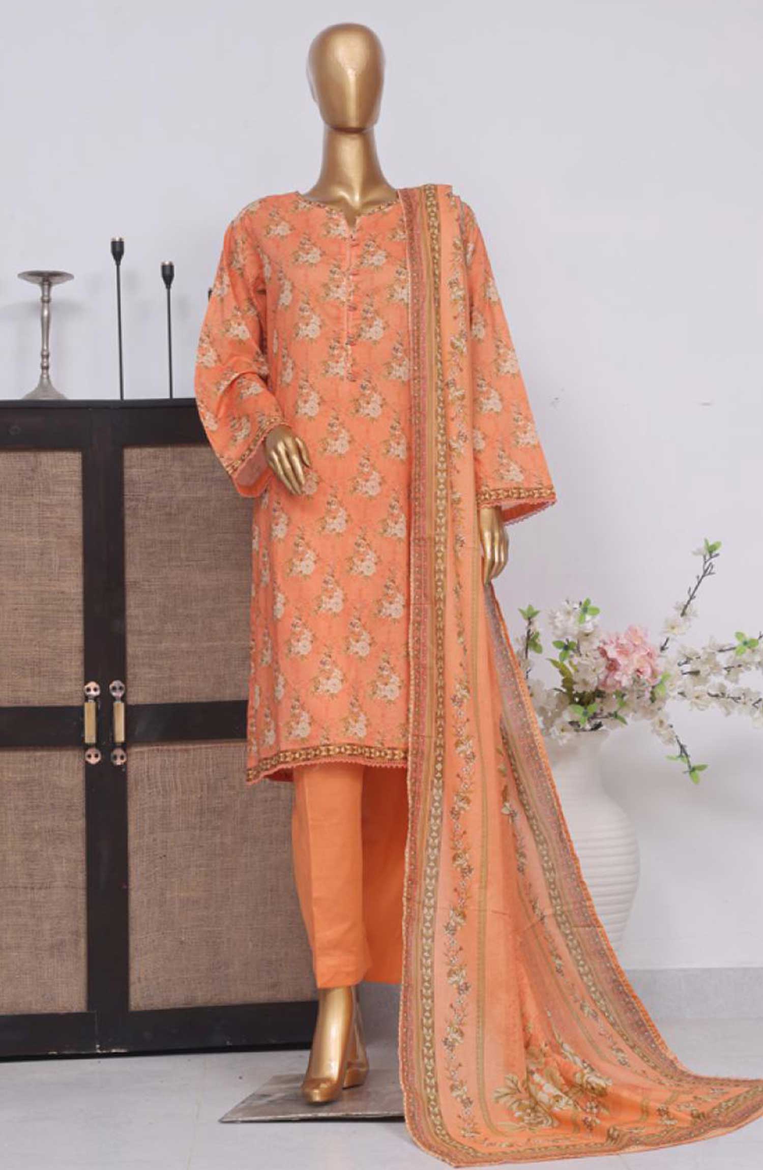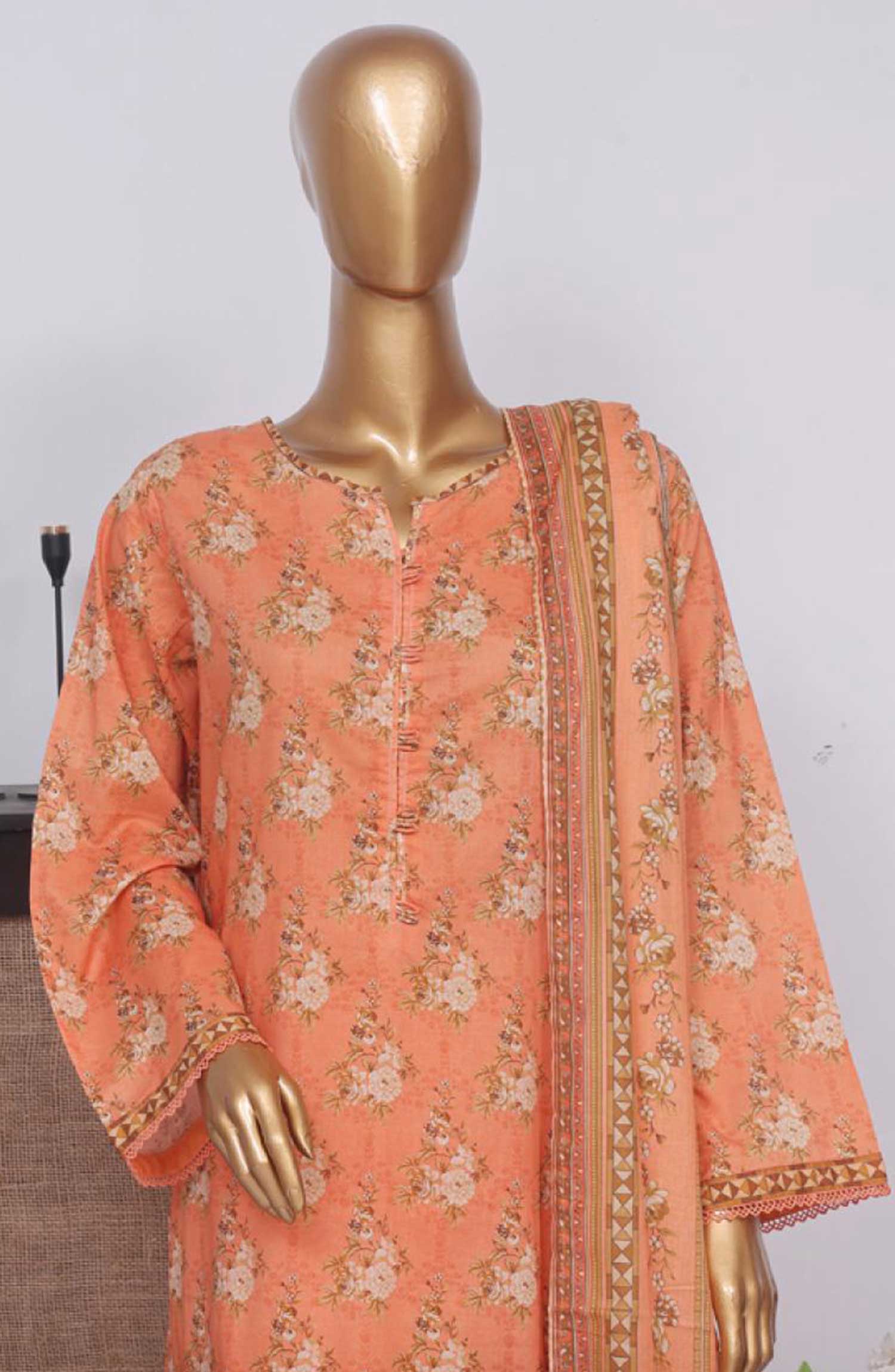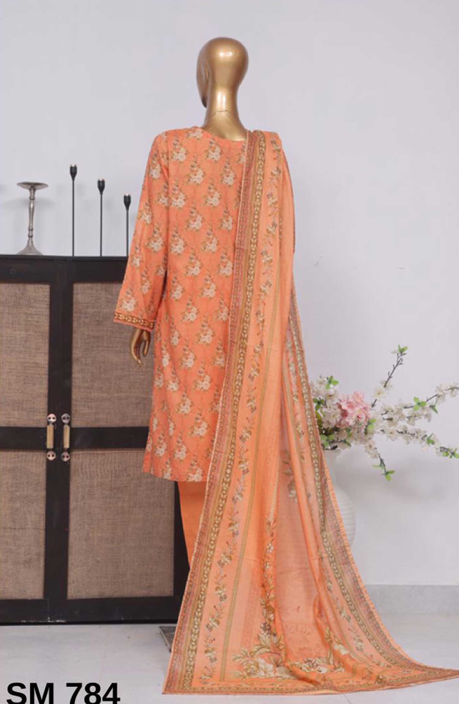 Home Bin Saeed Printed Lawn Stitched 3 Piece - SM 784 - BS25EL - Orange - Summer Collection
