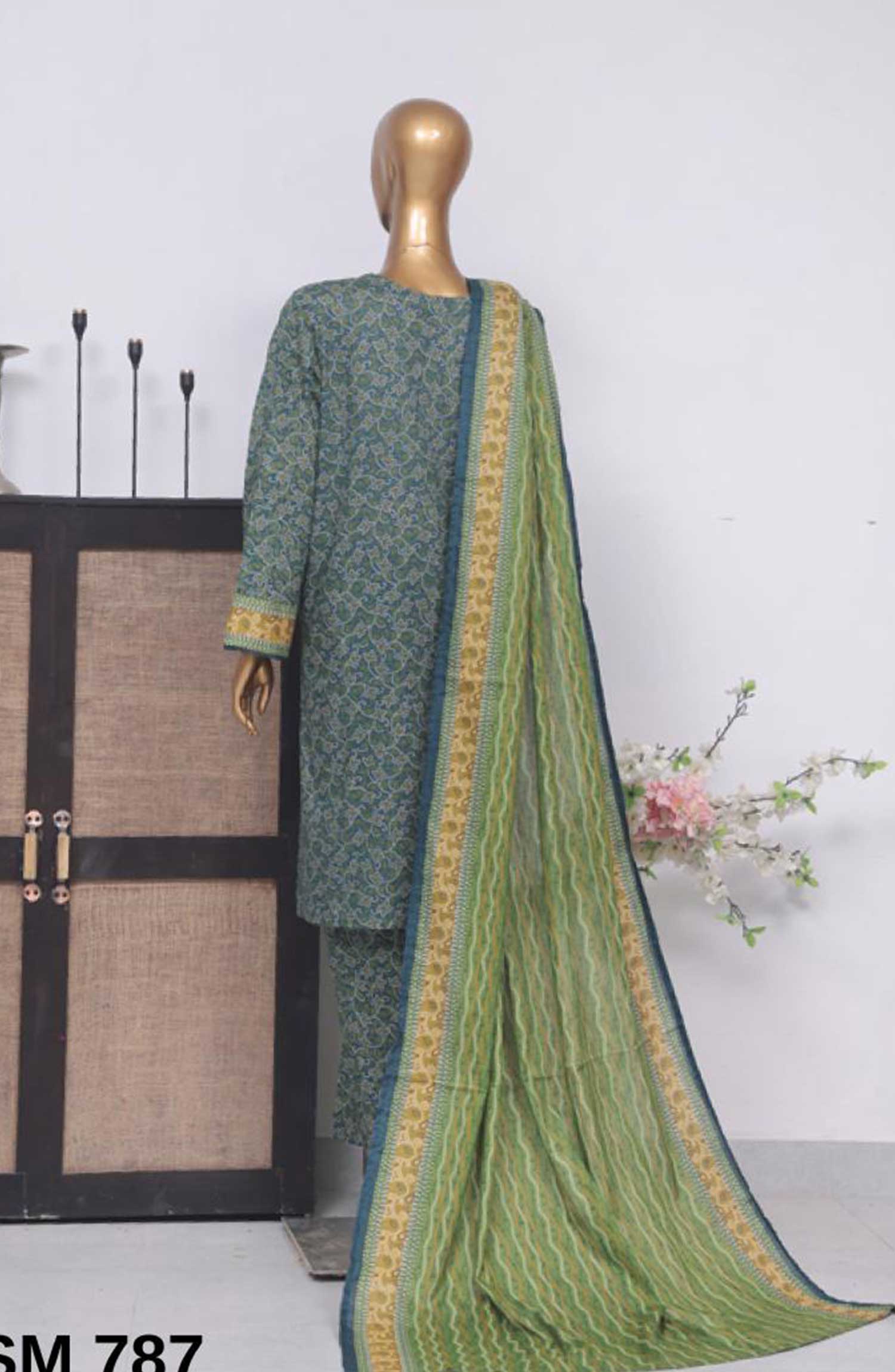 Home Bin Saeed Printed Lawn Stitched 3 Piece - SM 787 - BS25EL - Sea Green - Summer Collection