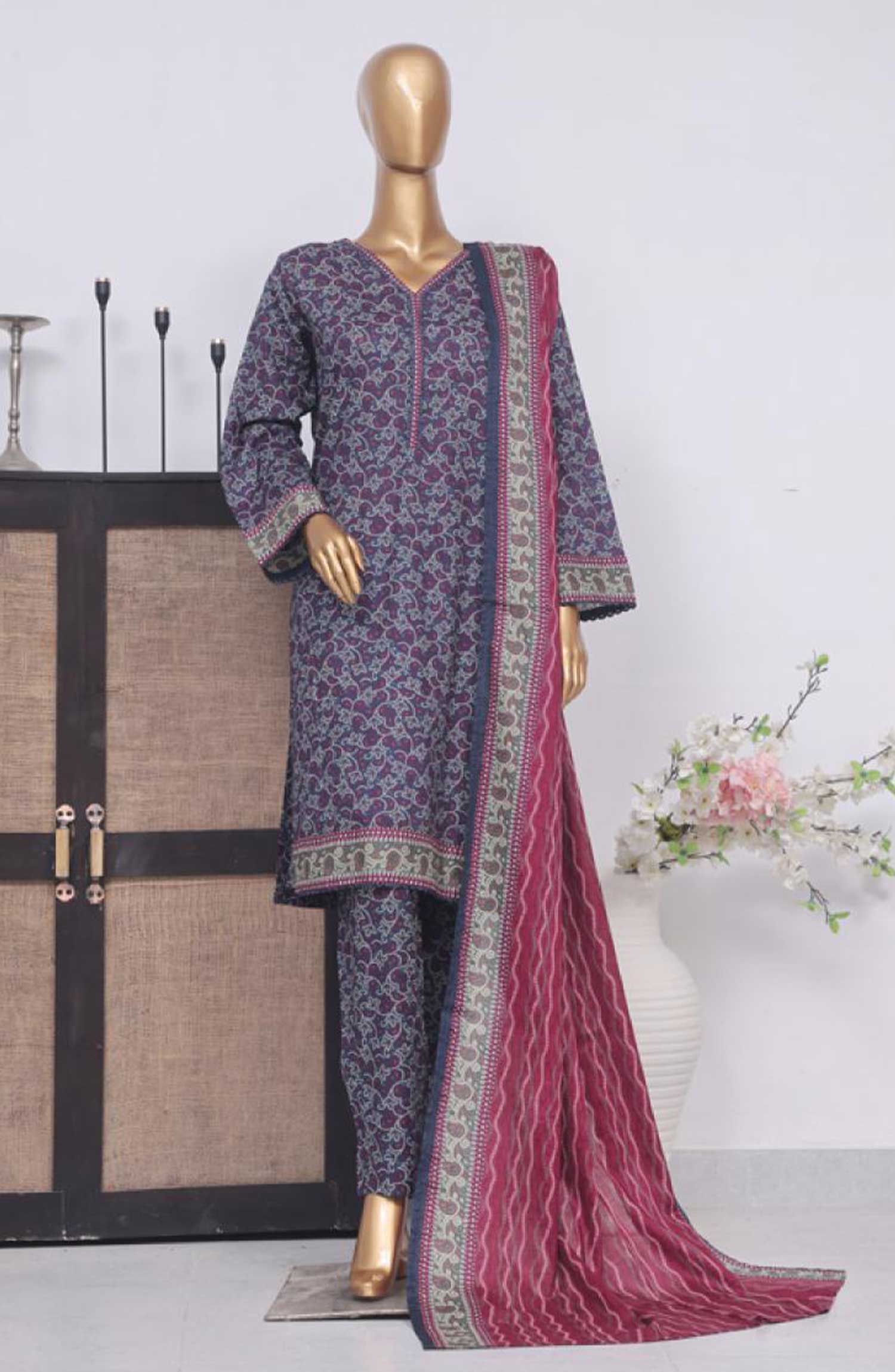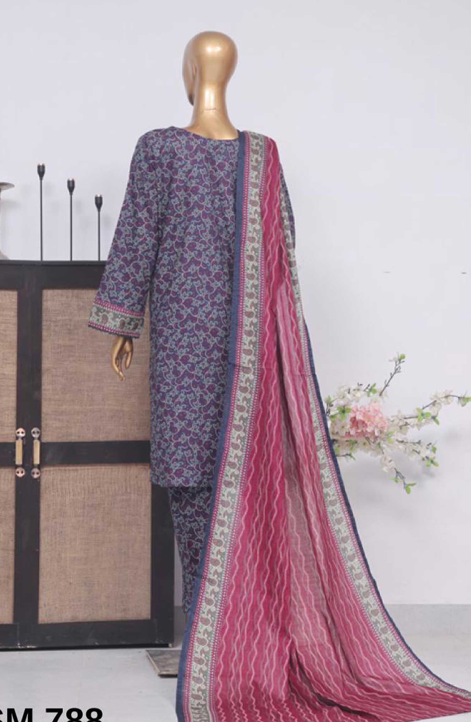Home Bin Saeed Printed Lawn Stitched 3 Piece - SM 788 - BS25EL - Dark Blue - Summer Collection