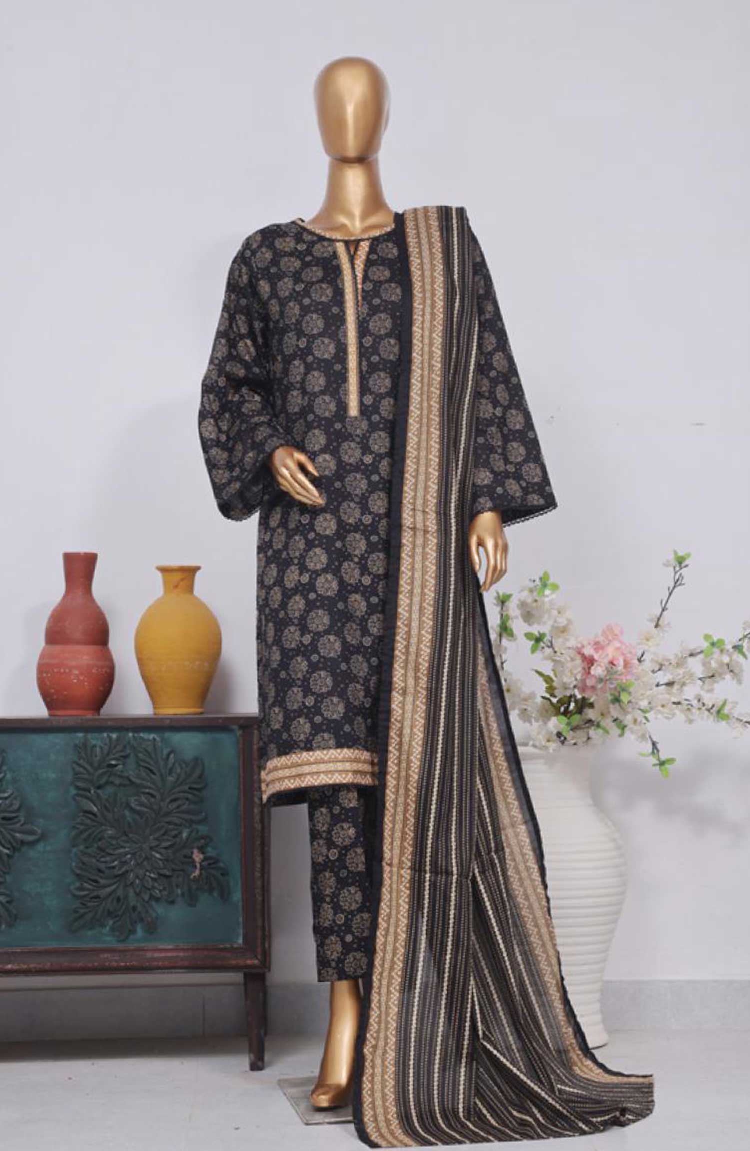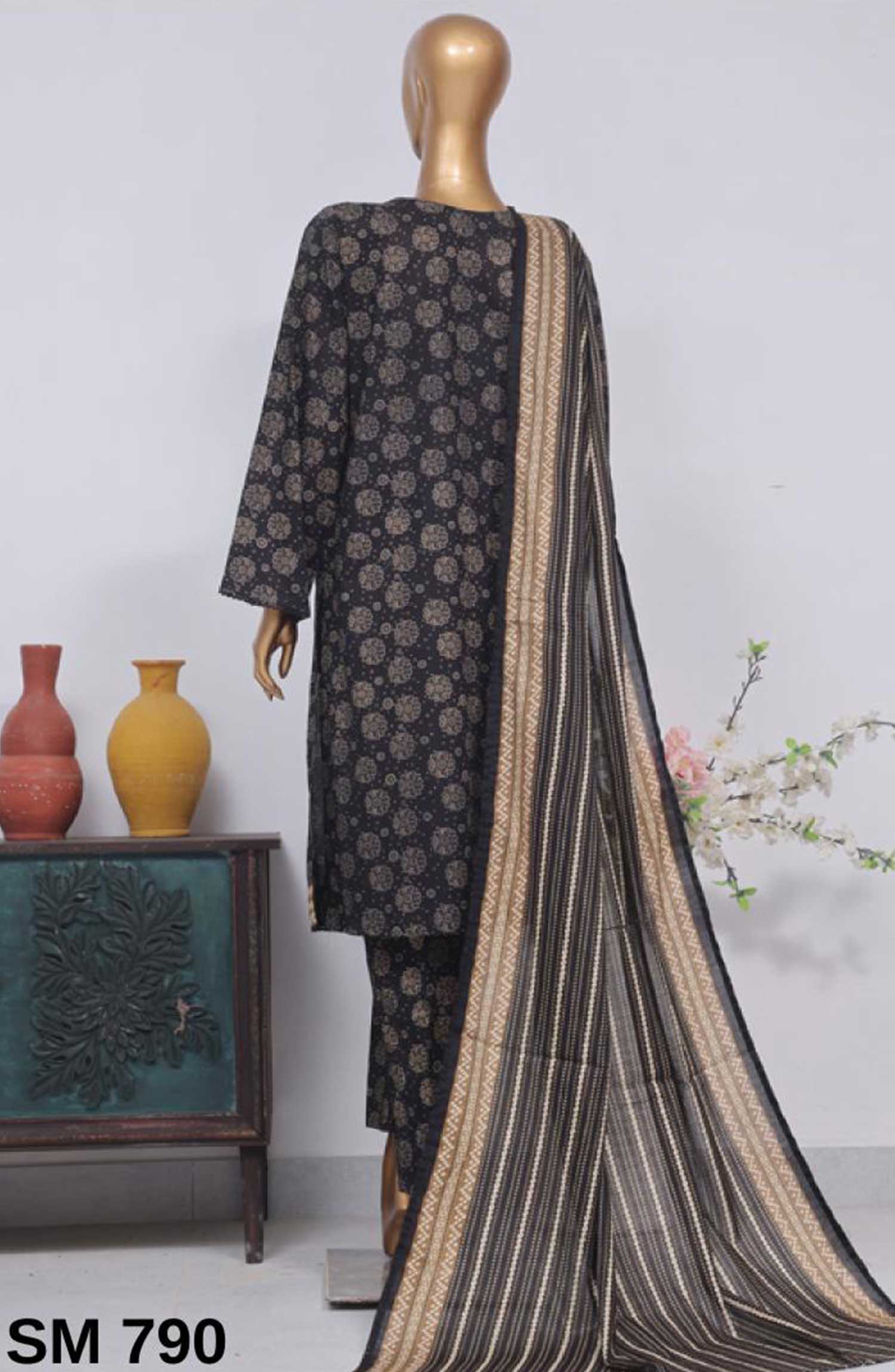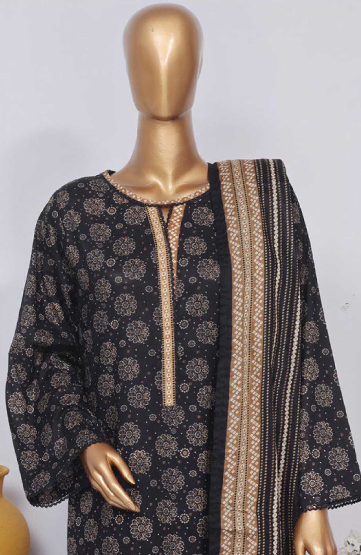 Home Bin Saeed Printed Lawn Stitched 3 Piece - SM-790 - BS25EL - Black - Summer Collection