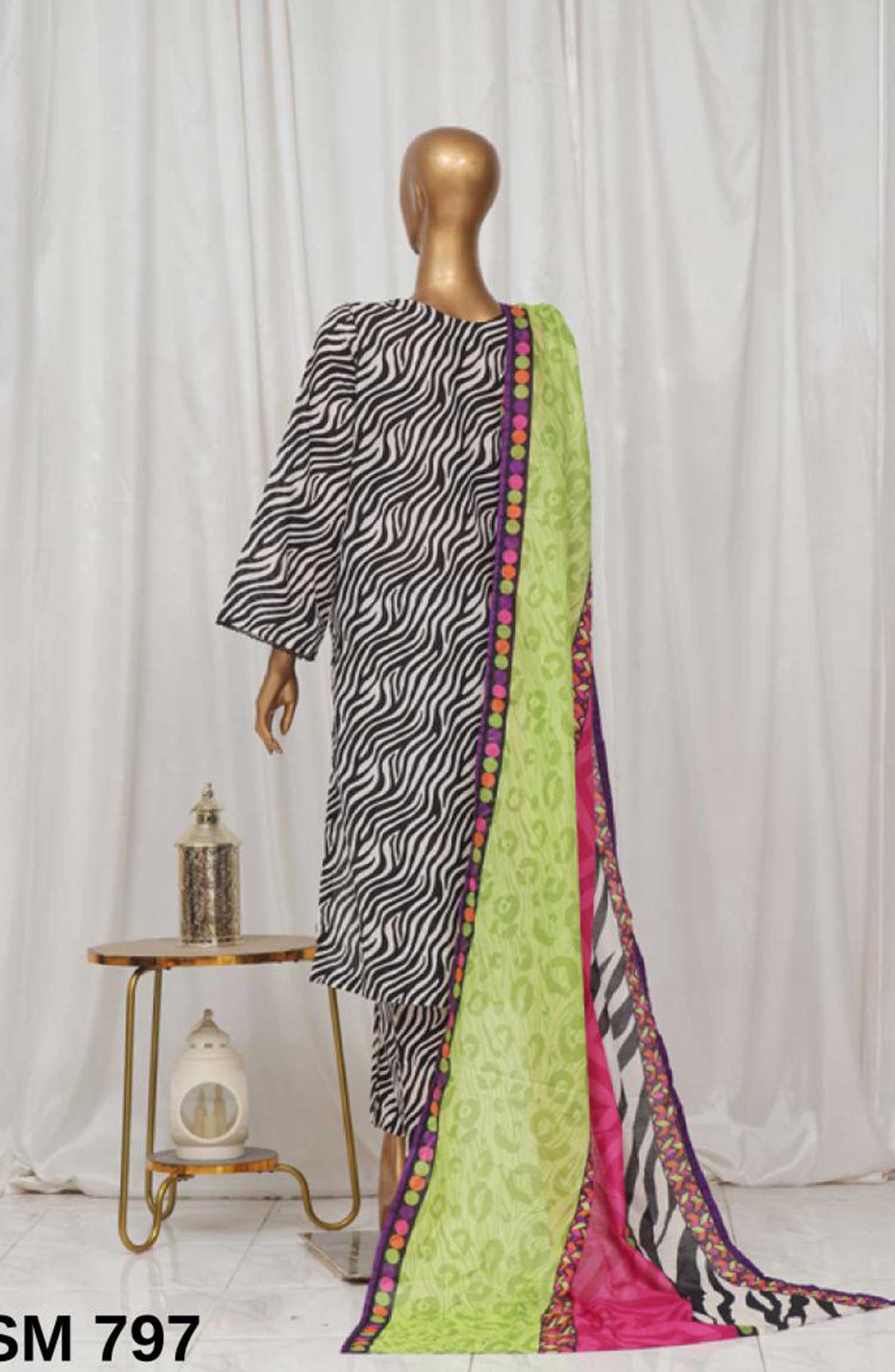 Bin Saeed Printed Lawn Stitched 3 Piece - SM 797 - BS25EL - Black - Summer Collection