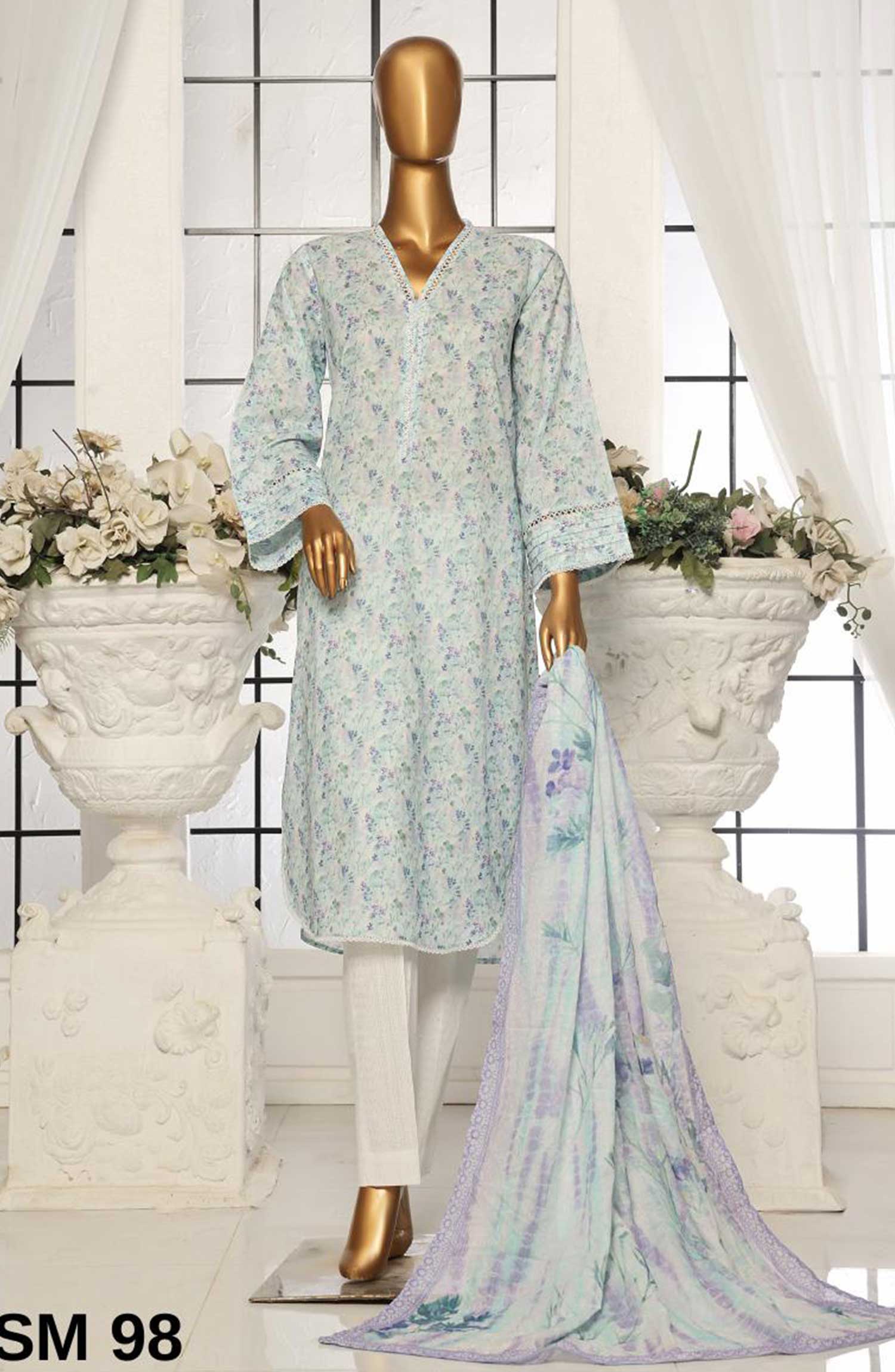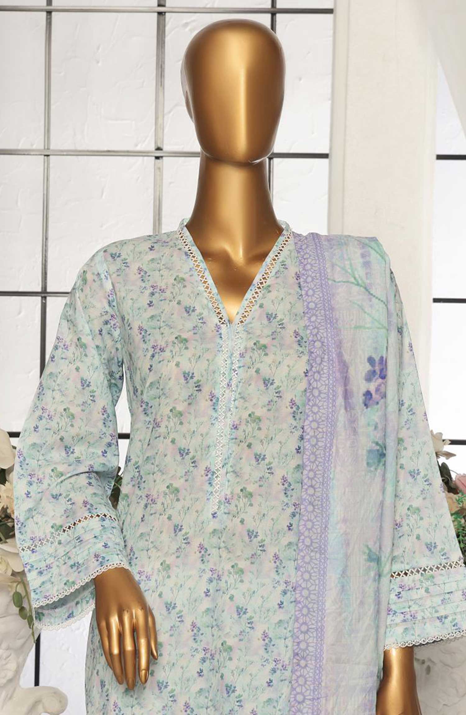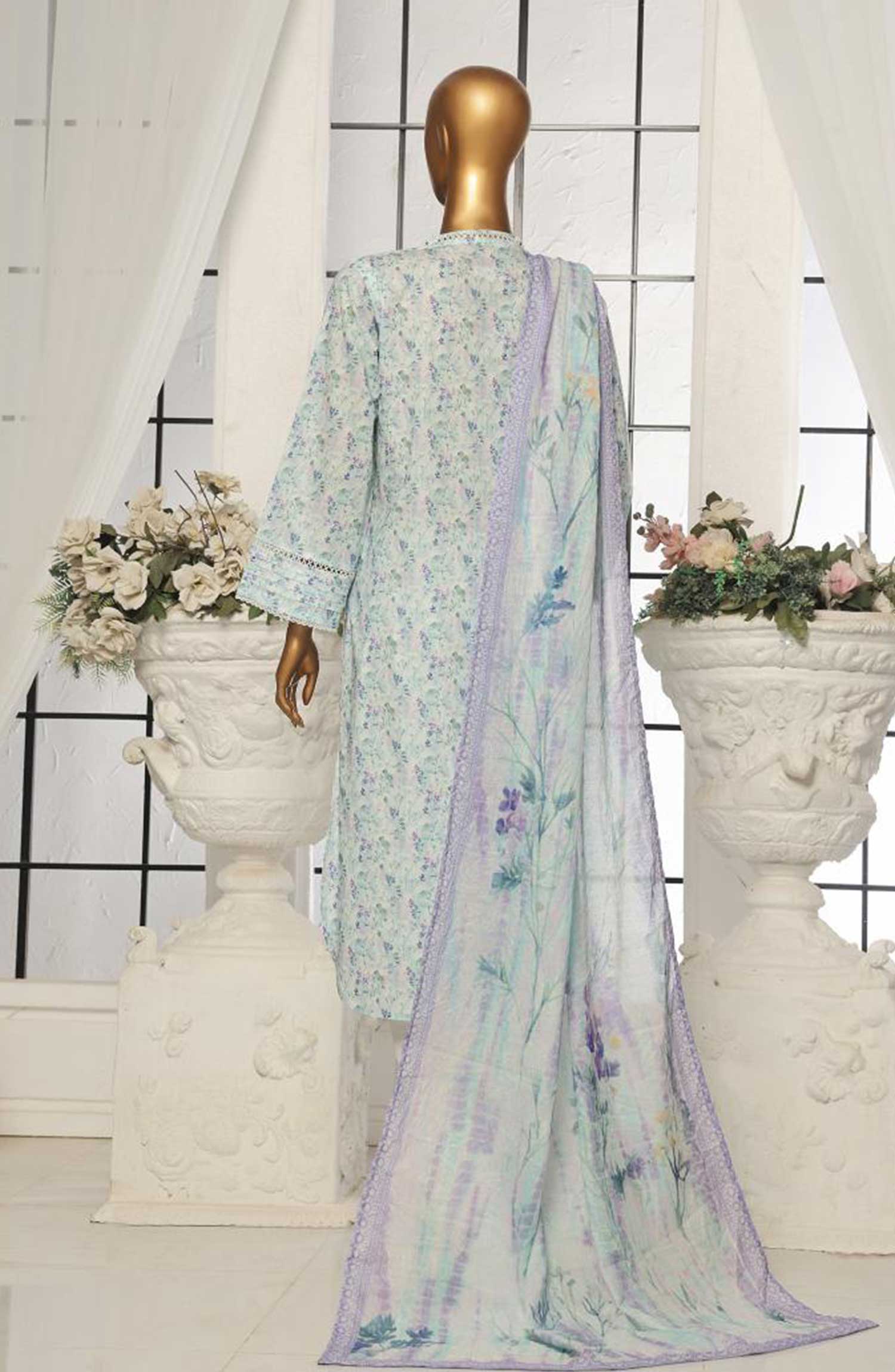 Home Bin Saeed Printed Lawn Stitched 3 Piece - SM 98 - BS25EL - Light Blue - Summer Collection