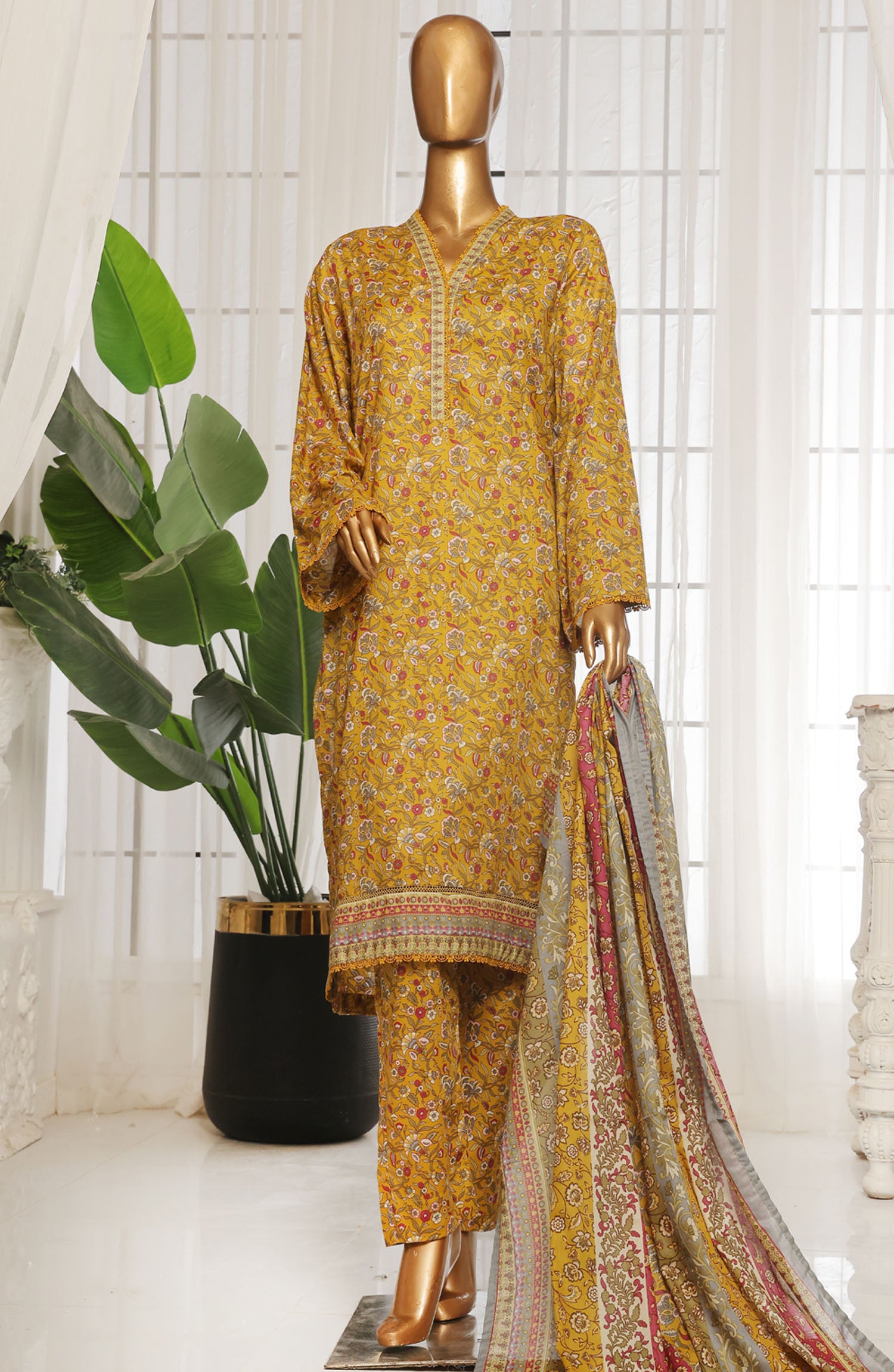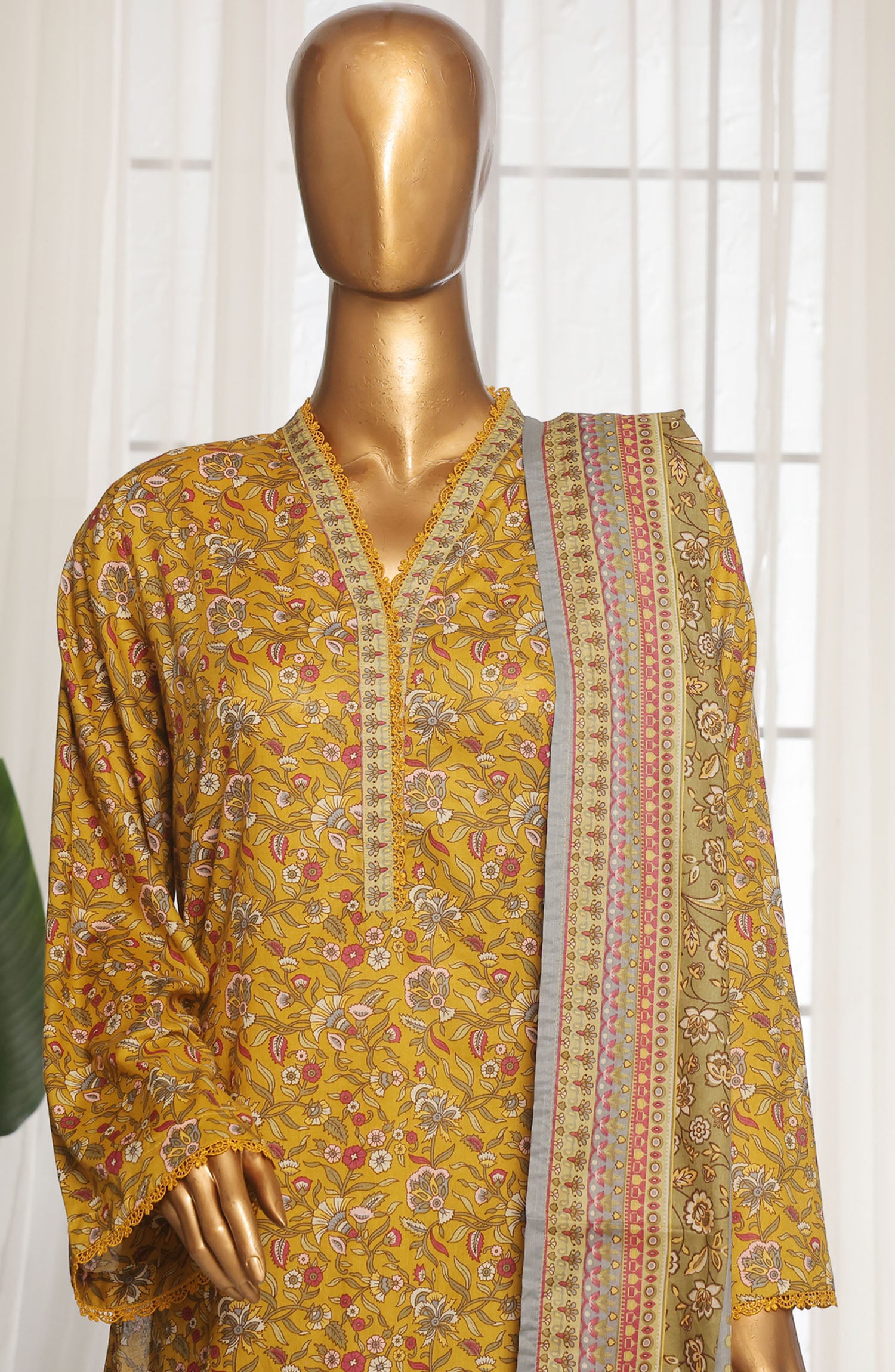 Home Bin Saeed Printed Lawn Stitched 3 Piece Suit - D-01 - BS25EPLV4 - Yellow - Summer Collection