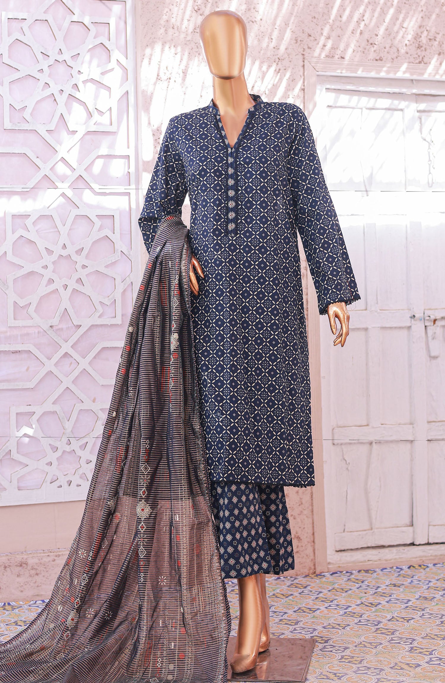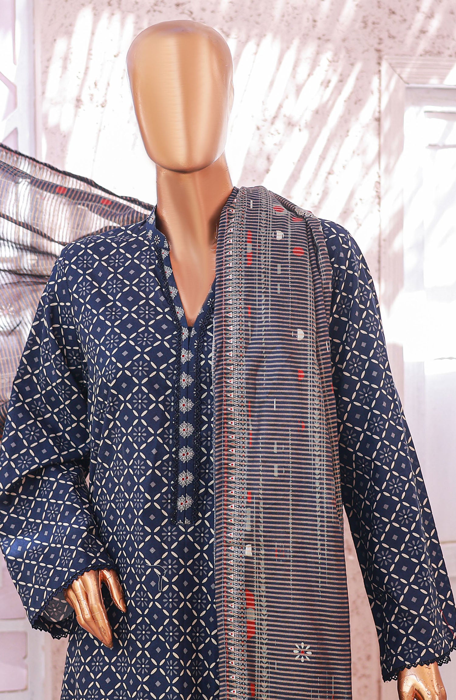 Home Bin Saeed Printed Lawn Stitched 3 Piece Suit - D-01 - BS25EPLV5 - Blue - Summer Collection