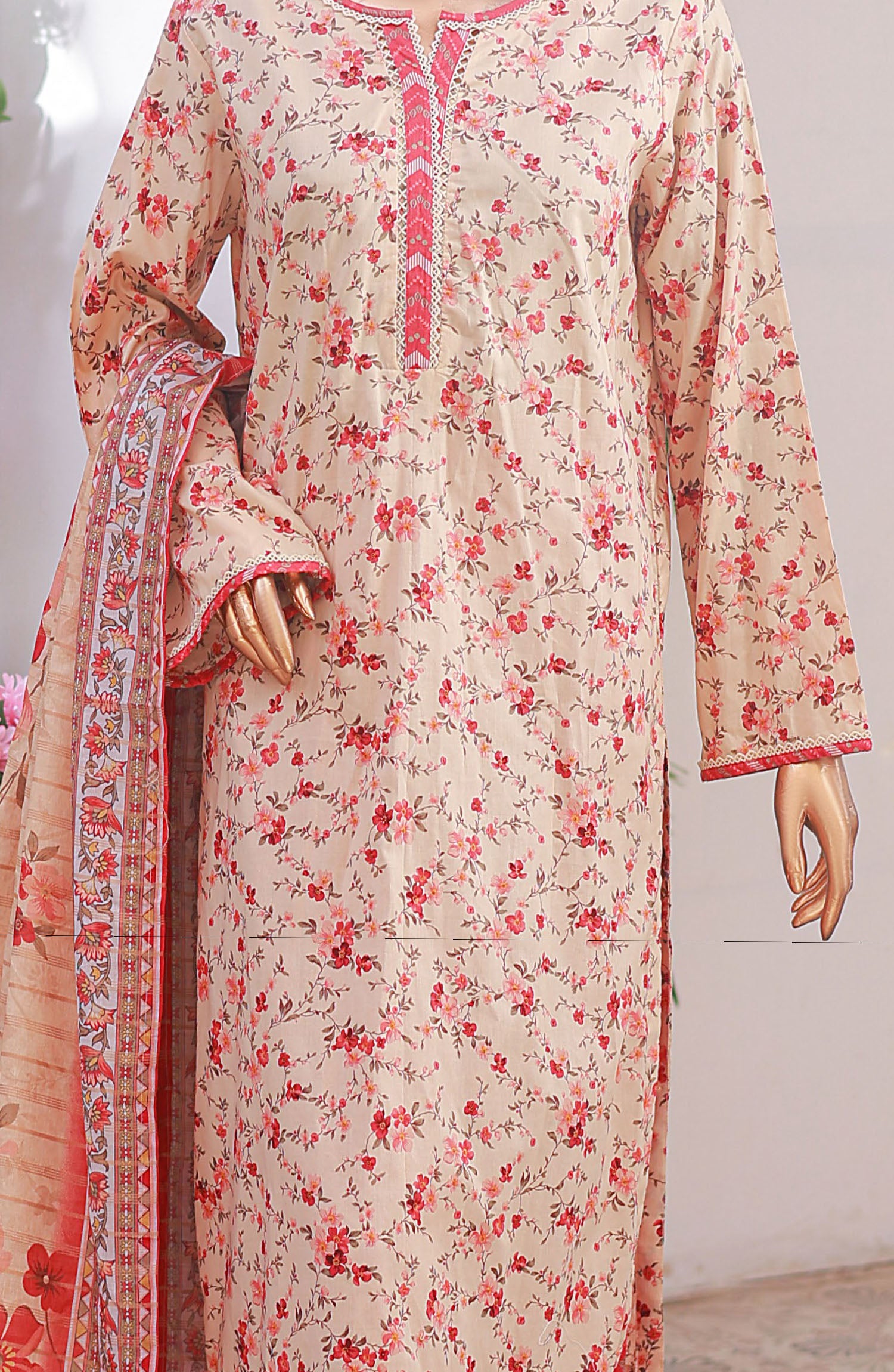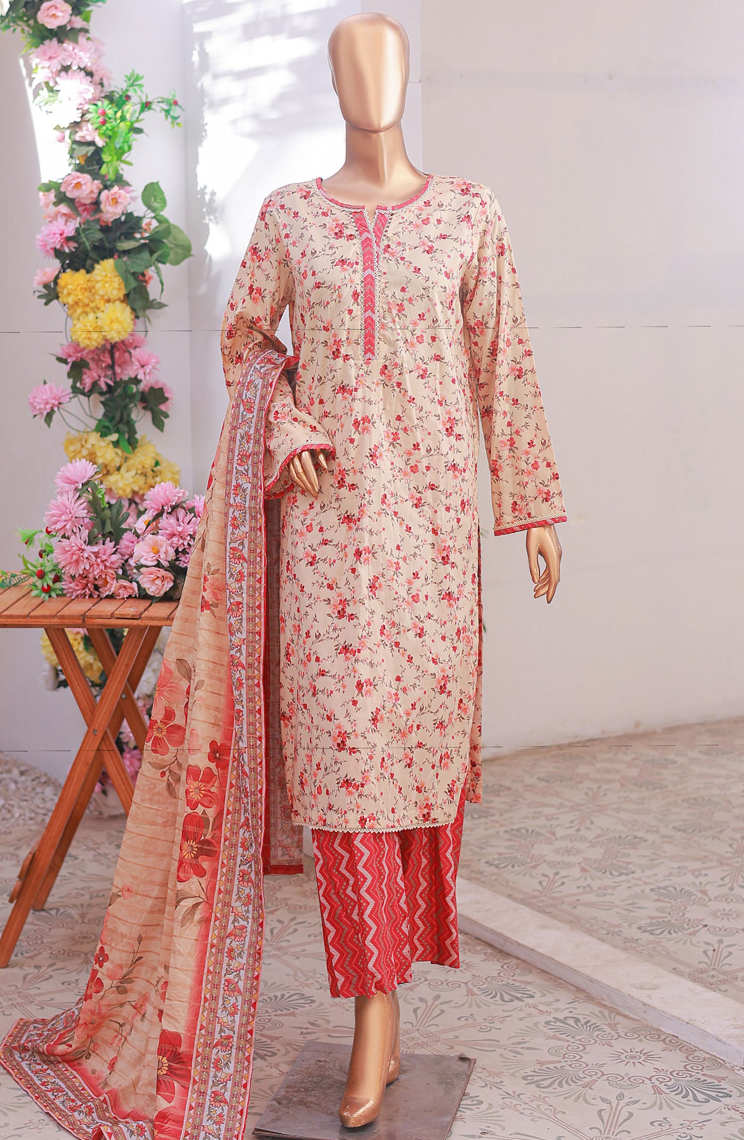 Home Bin Saeed Printed Lawn Stitched 3 Piece Suit - D-01 - BS25PLV6 - Beige - Summer Collection