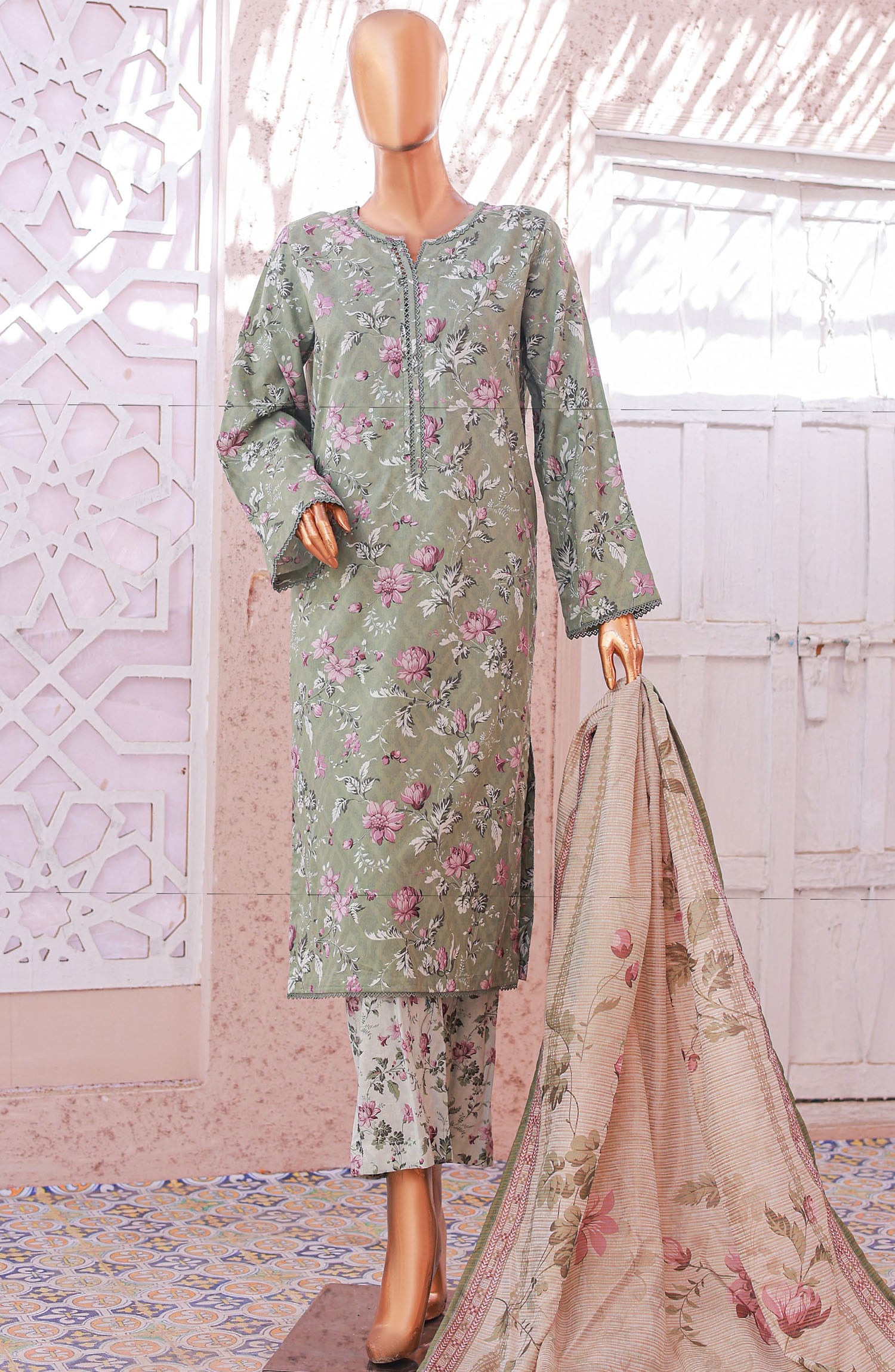 Home Bin Saeed Printed Lawn Stitched 3 Piece Suit - D-03 - BS25EPLV5 - Grey - Summer Collection