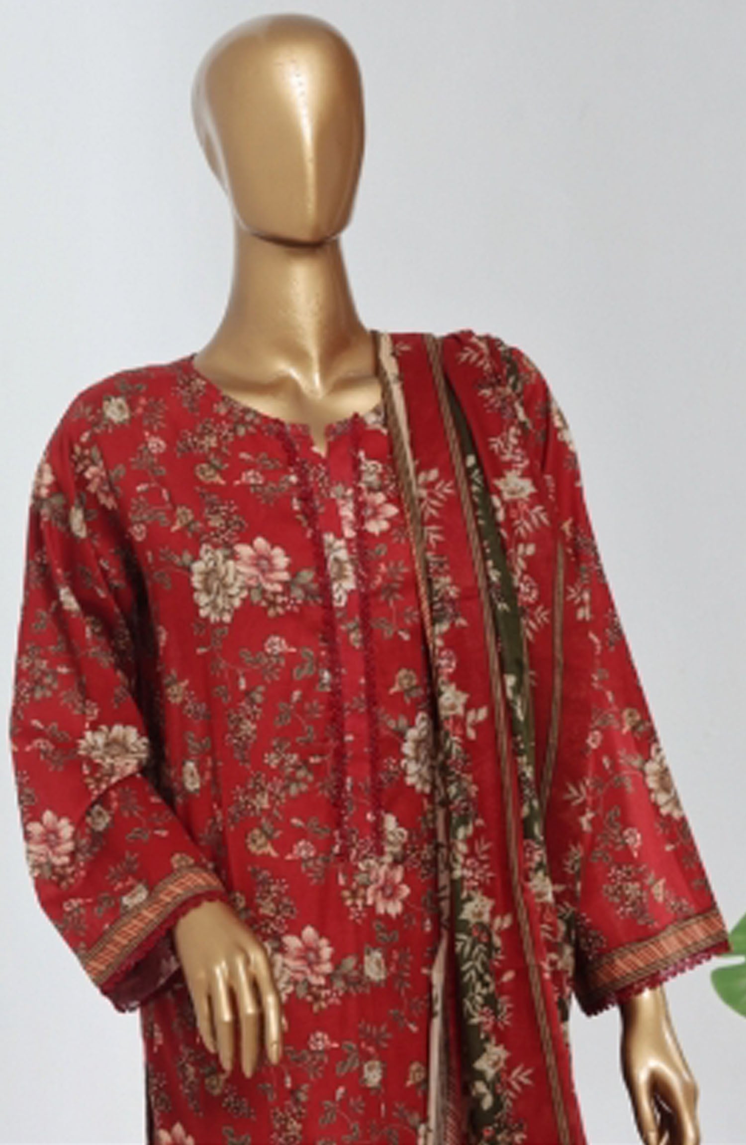 Home Bin Saeed Printed Lawn Stitched 3 Piece Suit - D-03 - BS25EPLV7 - Red - Summer Collection