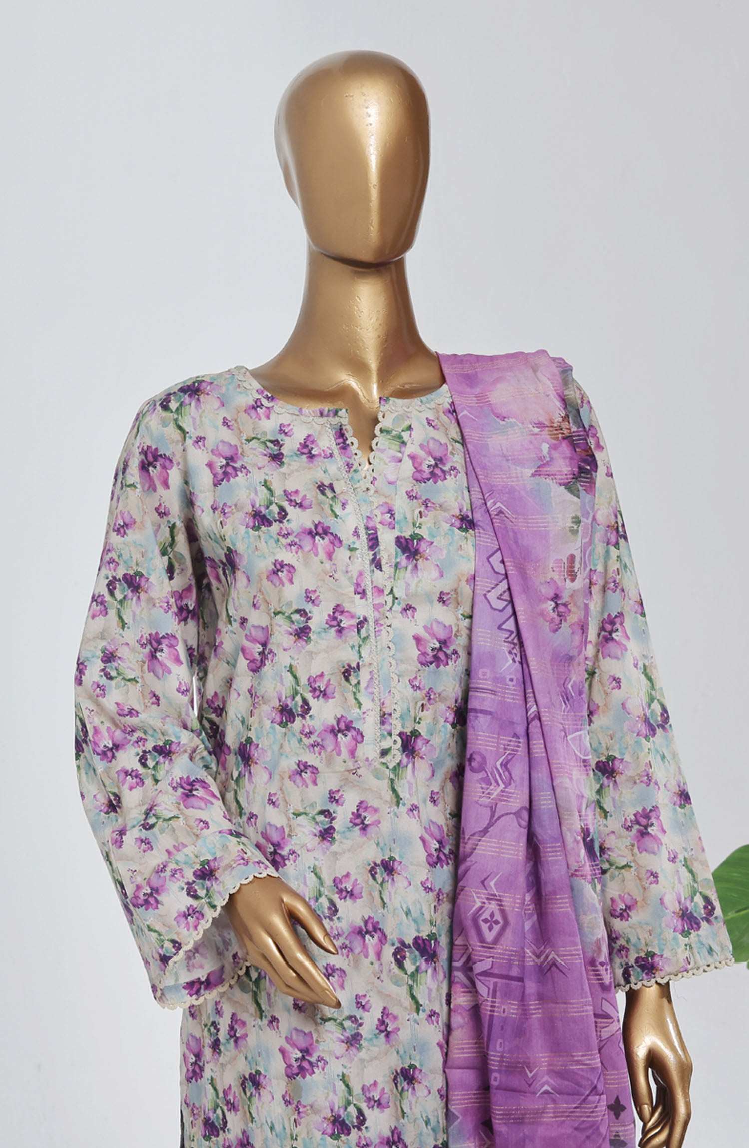 Home Bin Saeed Printed Lawn Stitched 3 Piece Suit - D-04 - BS25EPLV8 - Purple - Summer Collection