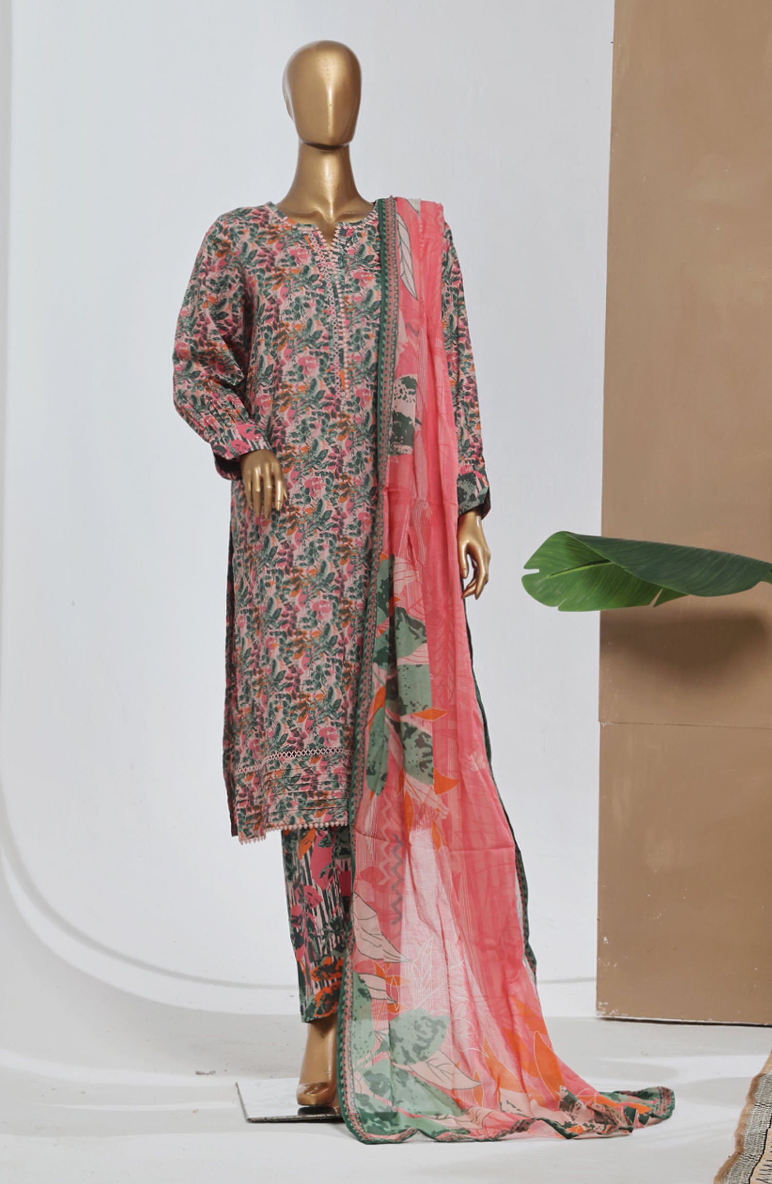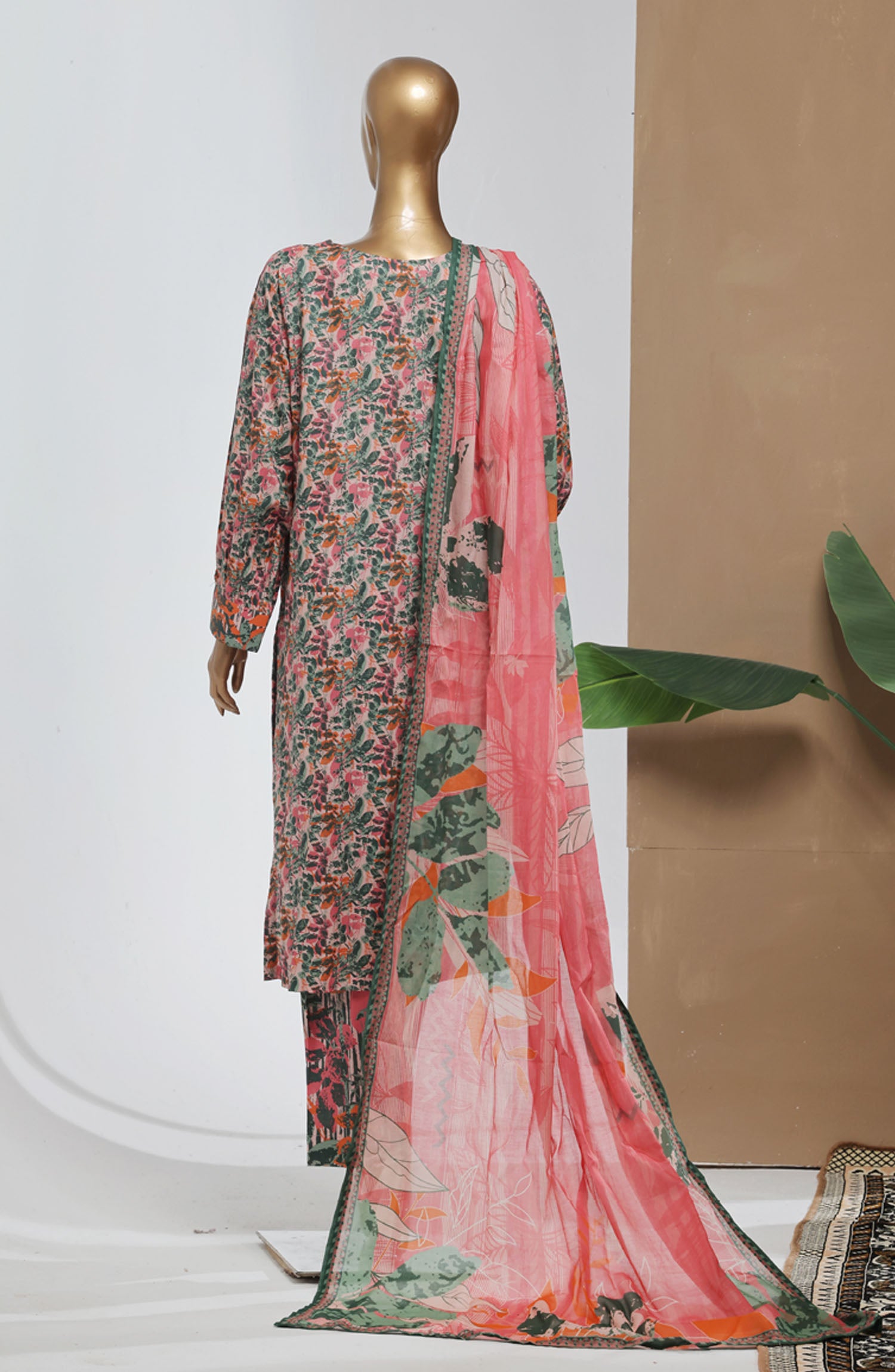 Home Bin Saeed Printed Lawn Stitched 3 Piece Suit - D-05 - BS25EPLV8 - Pink - Summer Collection