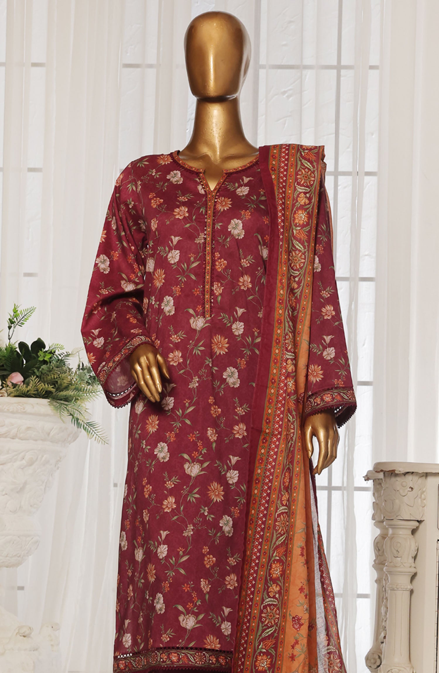 Home Bin Saeed Printed Lawn Stitched 3 Piece Suit - D-06 - BS25EPLV4 - Maroon - Summer Collection