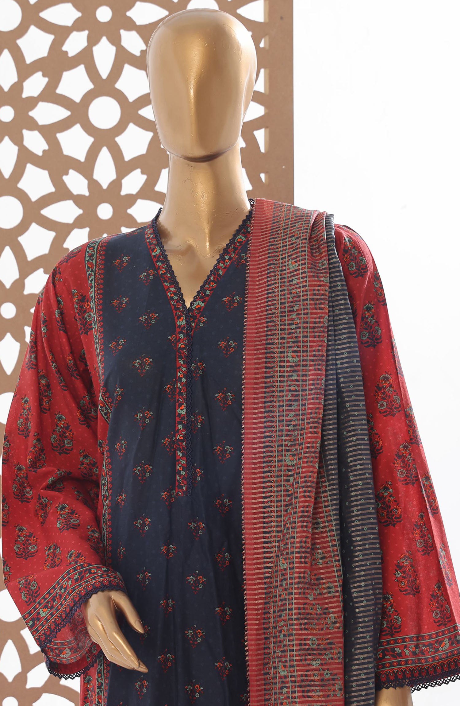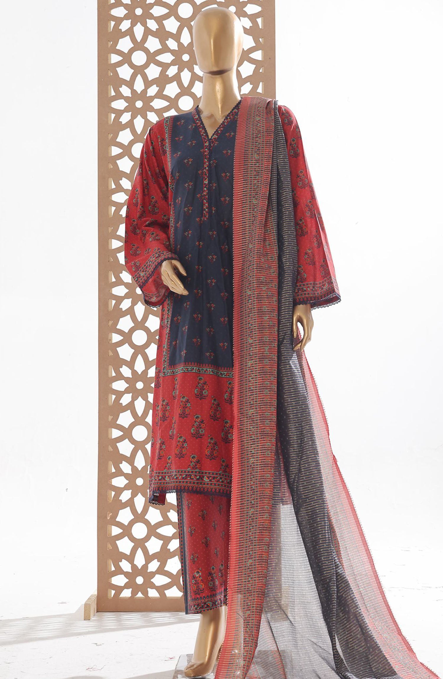 Home Bin Saeed Printed Lawn Stitched 3 Piece Suit - D-07 - BS25EPLV3 - Red - Summer Collection