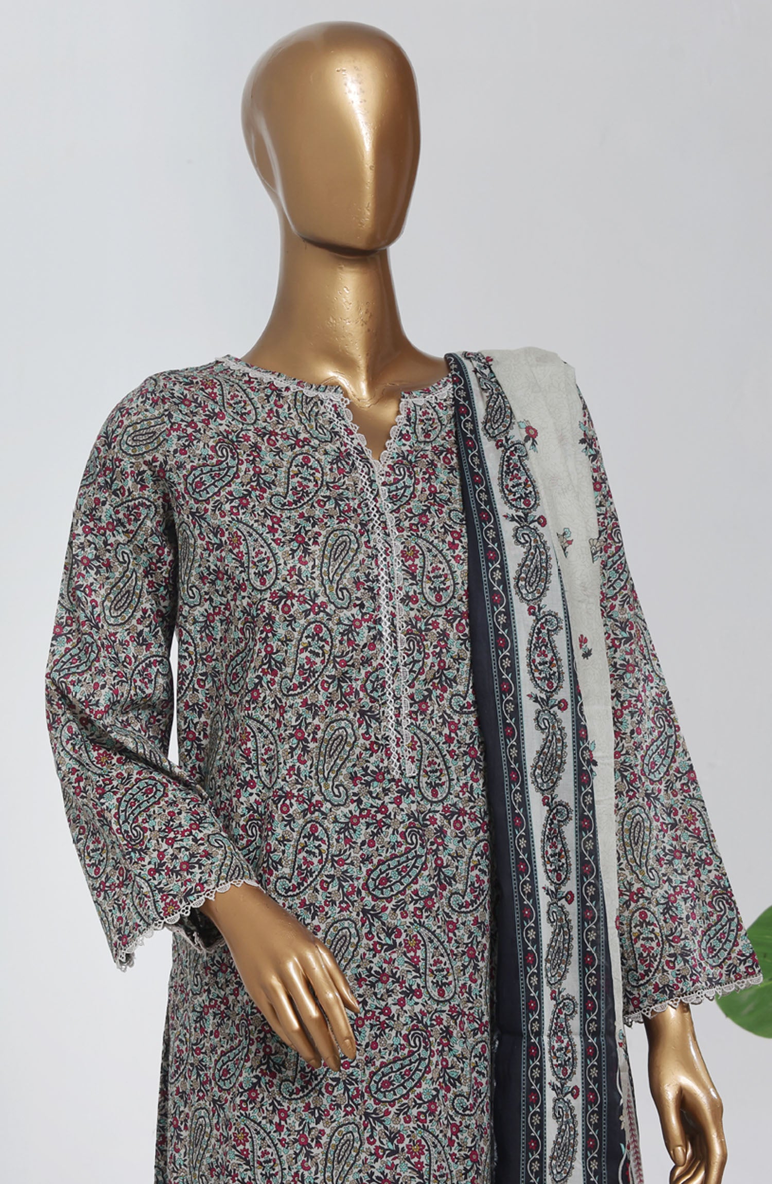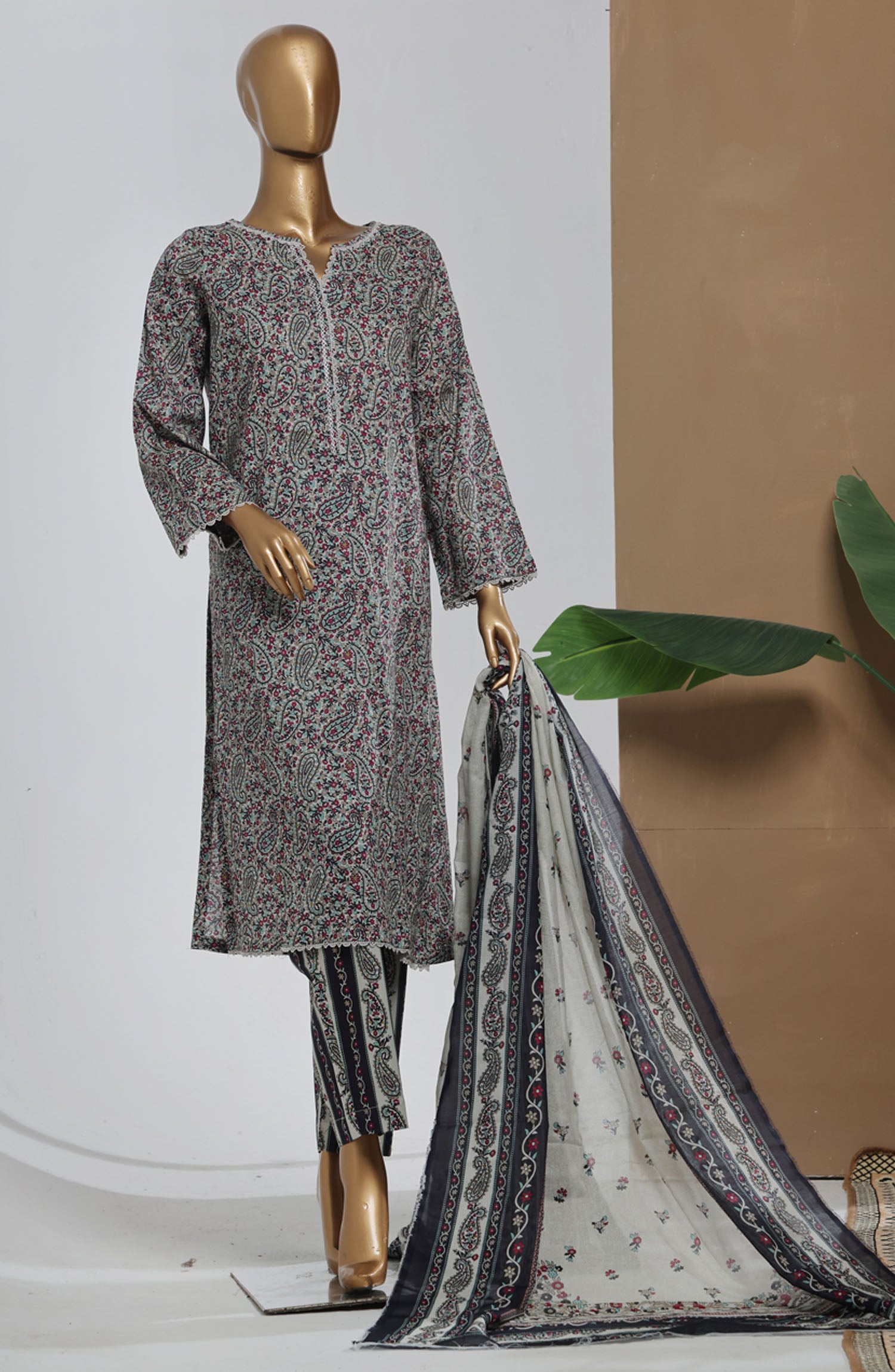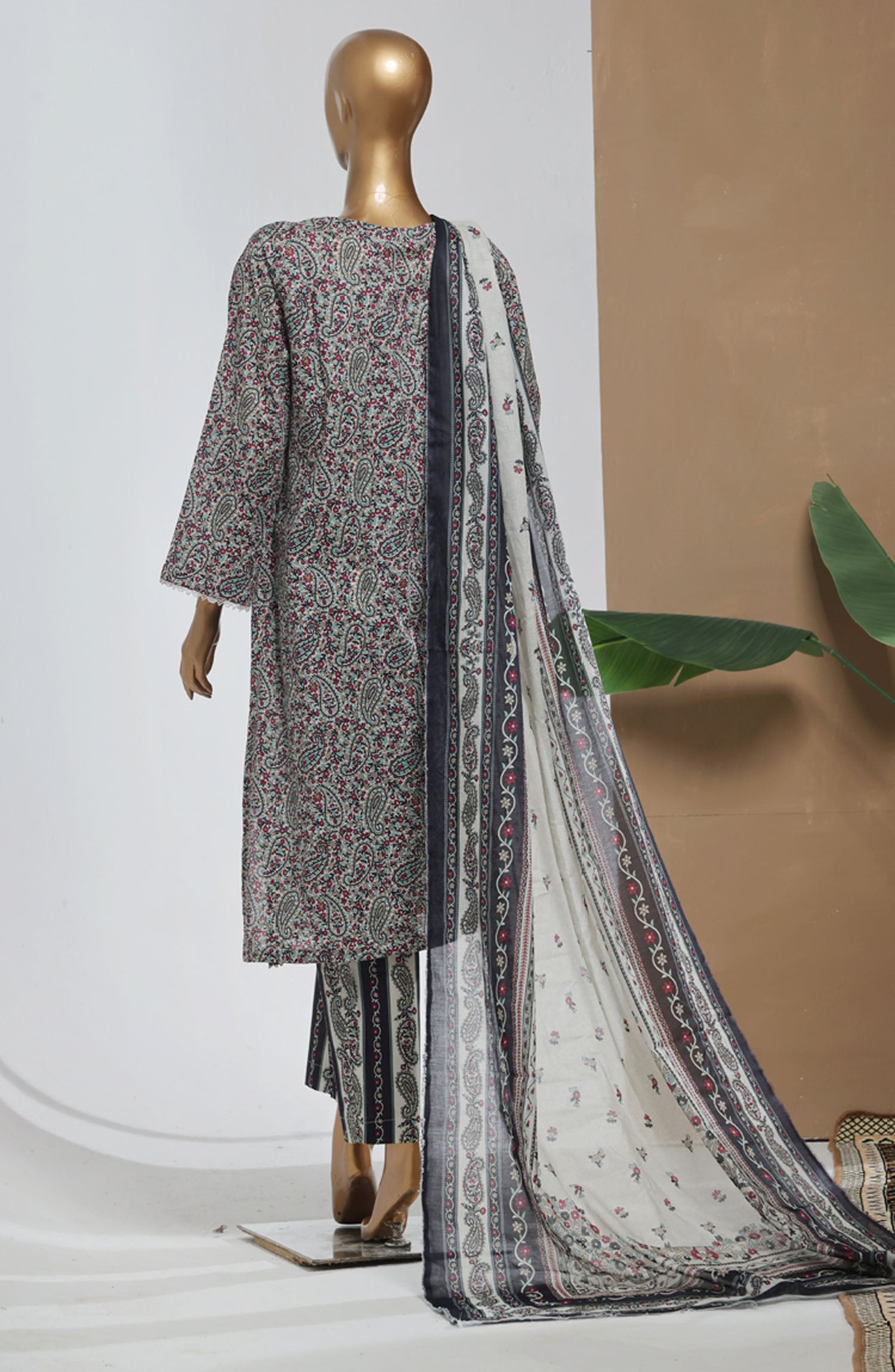 Home Bin Saeed Printed Lawn Stitched 3 Piece Suit - D-07 - BS25EPLV8 - Grey - Summer Collection