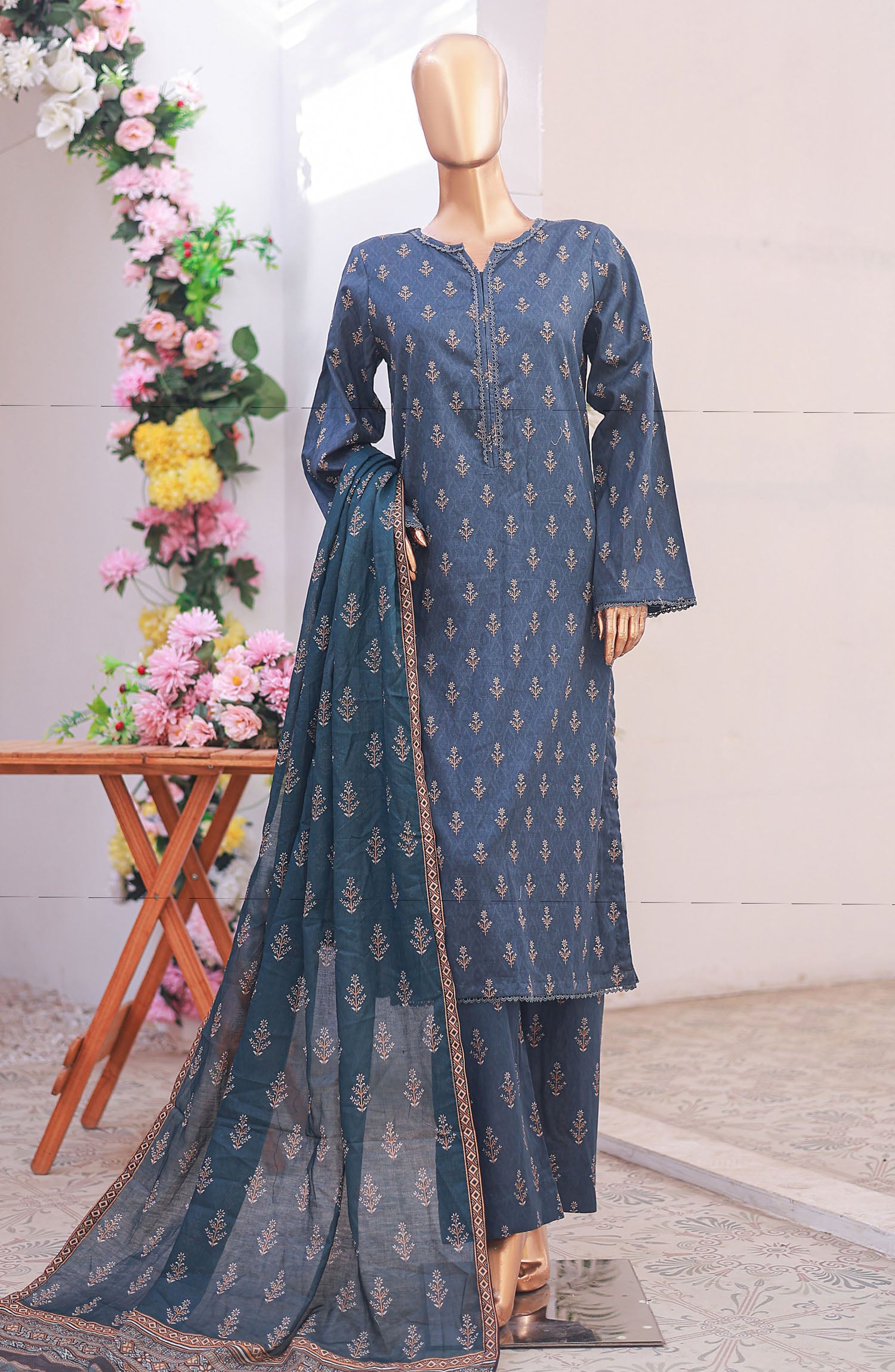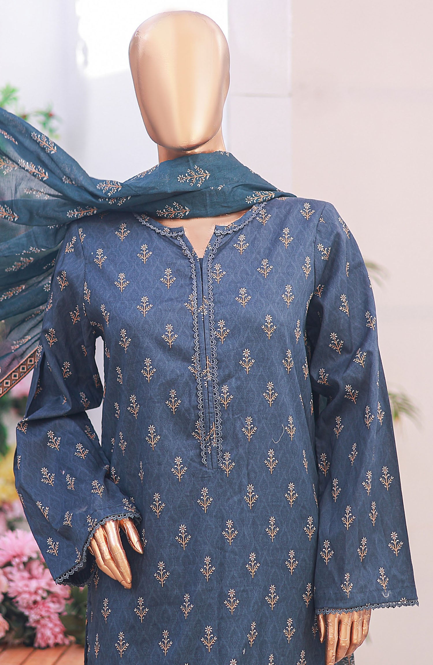 Home Bin Saeed Printed Lawn Stitched 3 Piece Suit - D-07 - BS25PLV6 - Blue - Summer Collection
