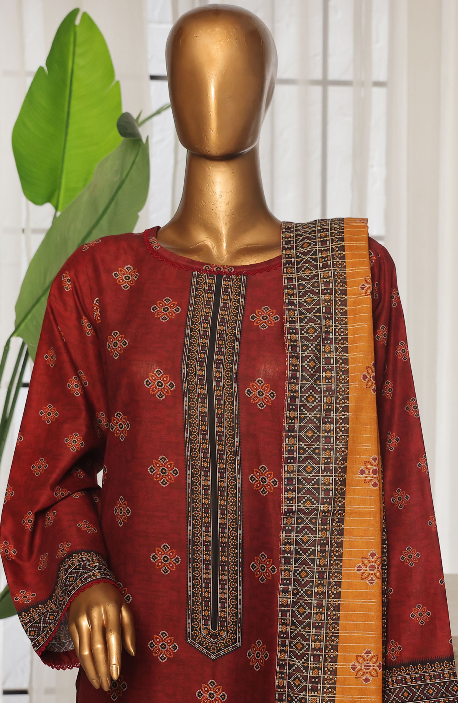 Home Bin Saeed Printed Lawn Stitched 3 Piece Suit - D-08 - BS25EPLV4 - Red - Summer Collection