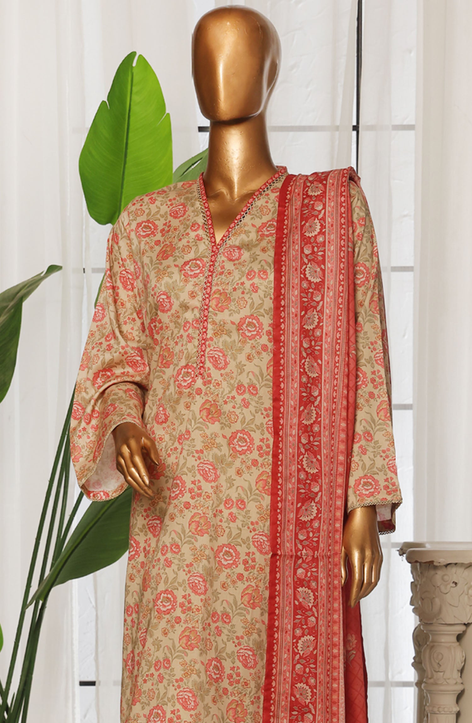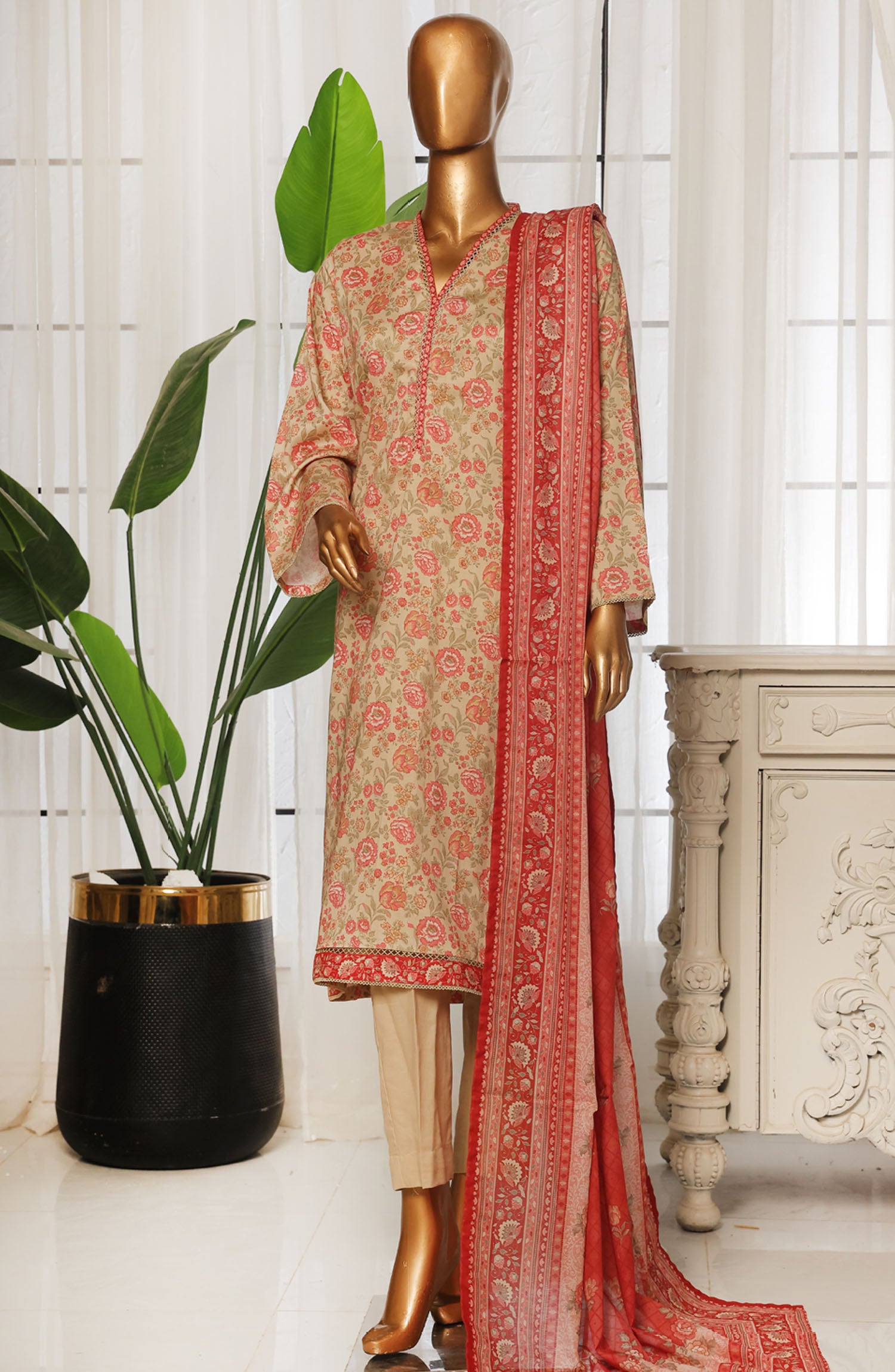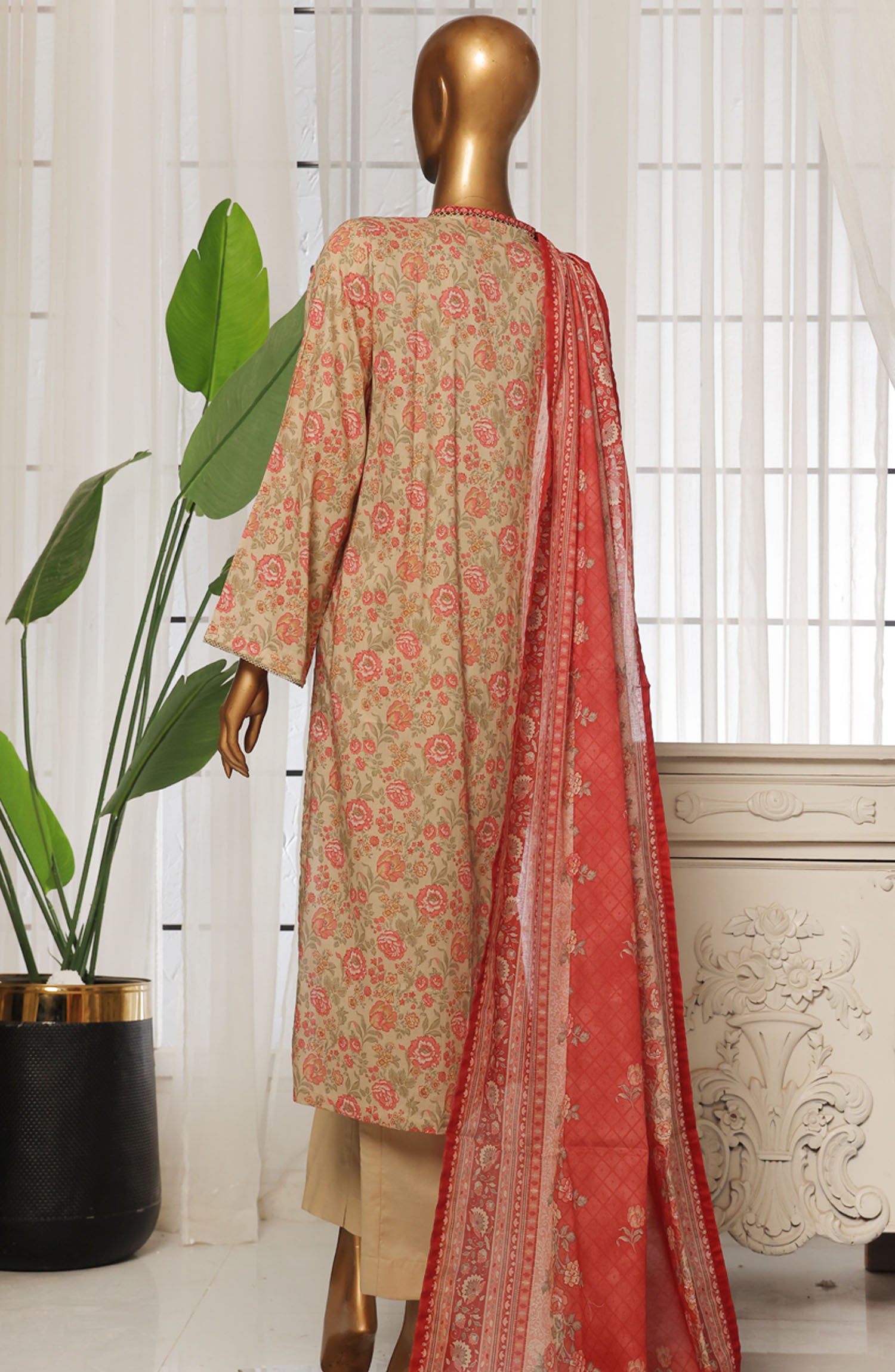 Home Bin Saeed Printed Lawn Stitched 3 Piece Suit - D-09 - BS25EPLV4 - Pink - Summer Collection