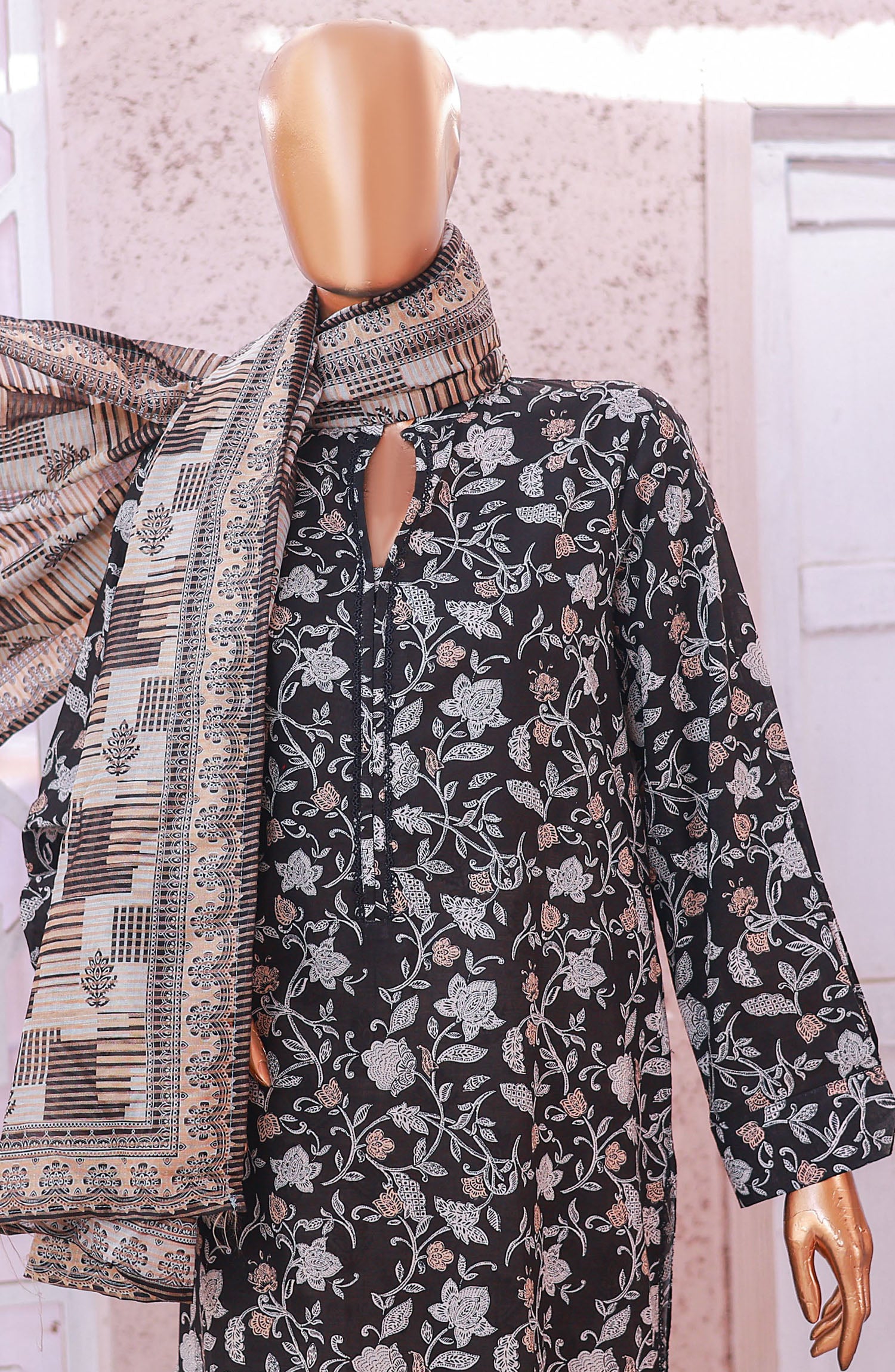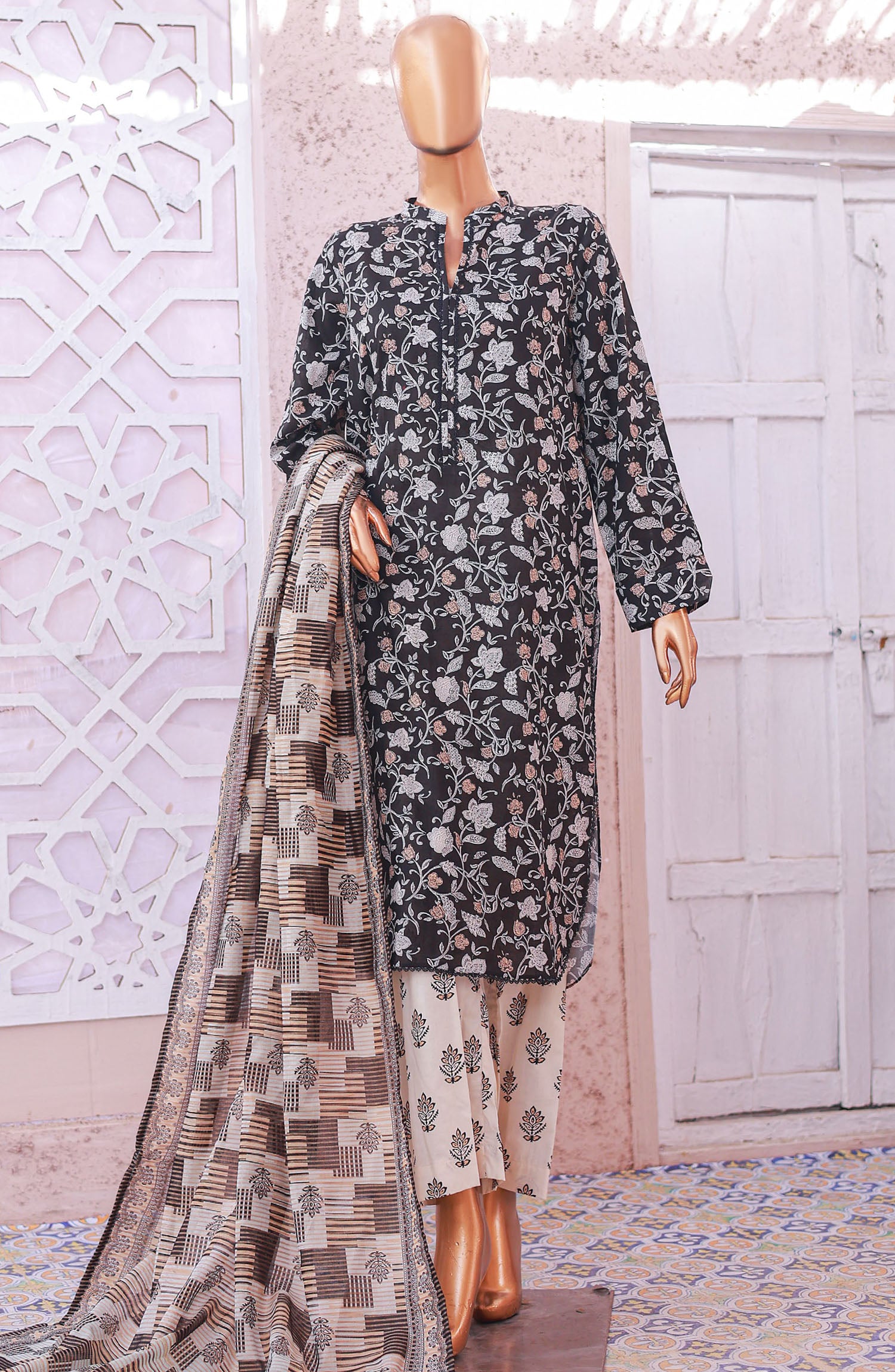 Home Bin Saeed Printed Lawn Stitched 3 Piece Suit - D-09 - BS25EPLV5 - Black - Summer Collection