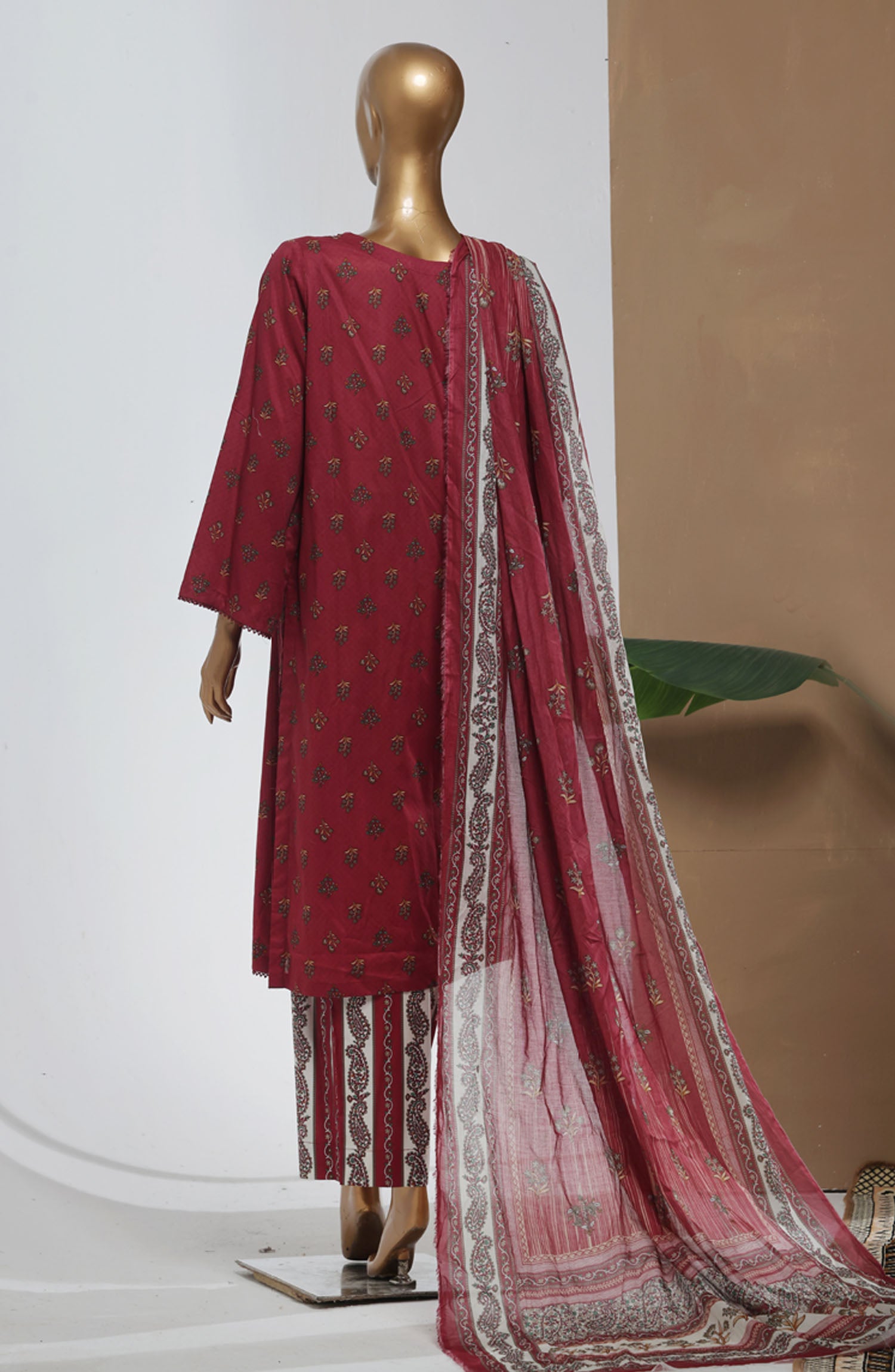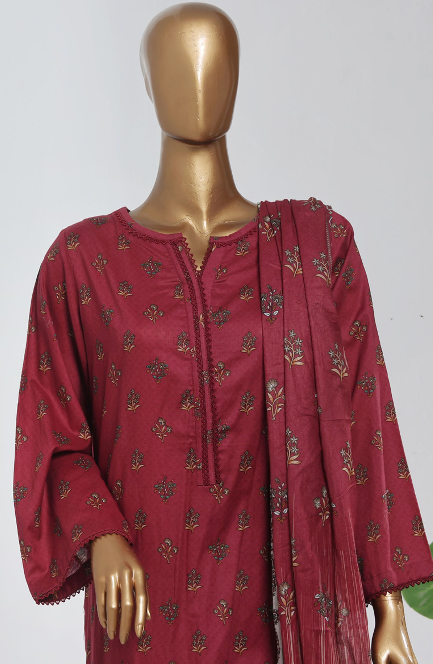 Home Bin Saeed Printed Lawn Stitched 3 Piece Suit - D-09 - BS25EPLV8 - Maroon - Summer Collection