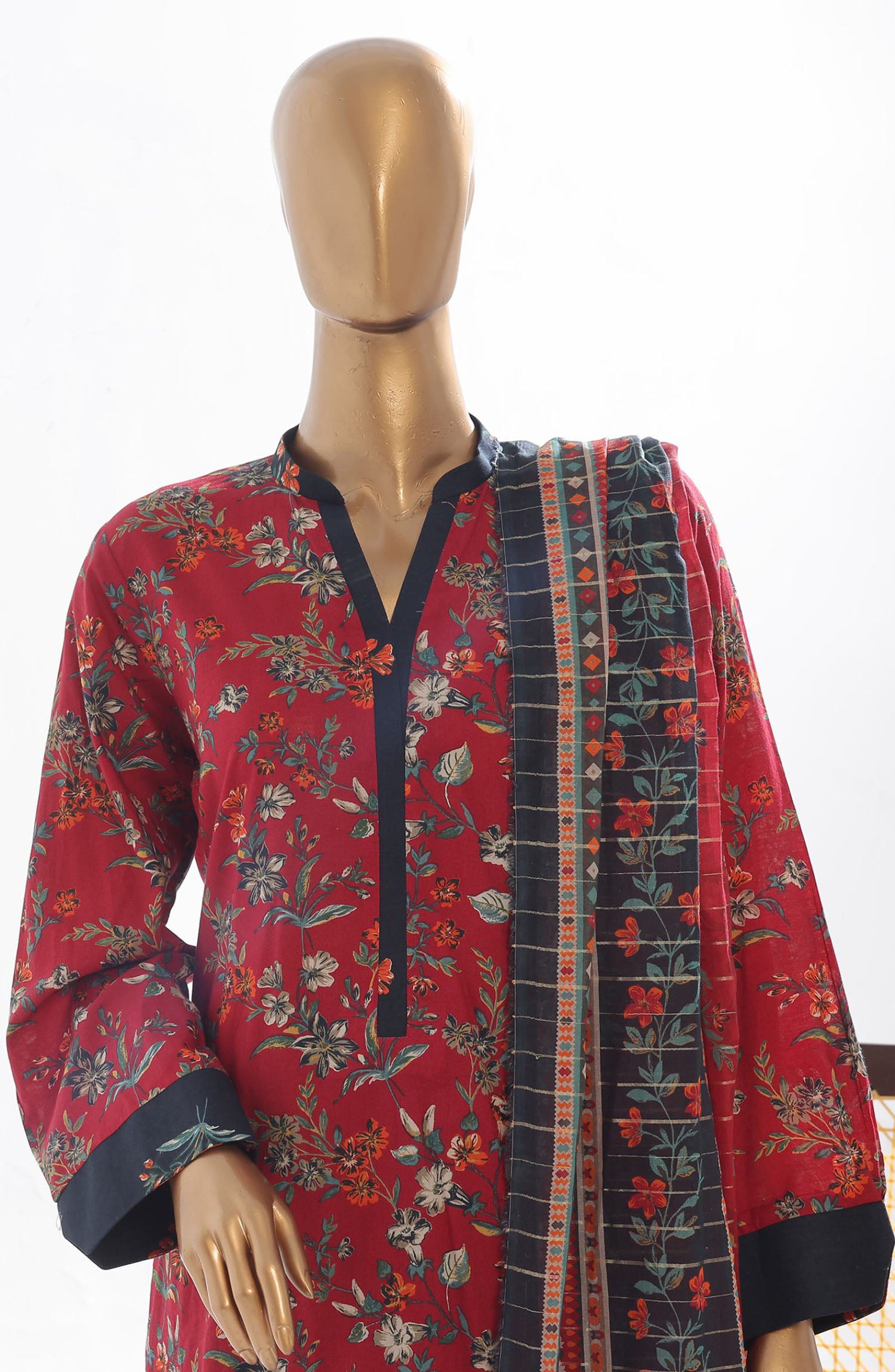 Home Bin Saeed Printed Lawn Stitched 3 Piece Suit - D-12 - BS25EPLV3 - Red - Summer Collection