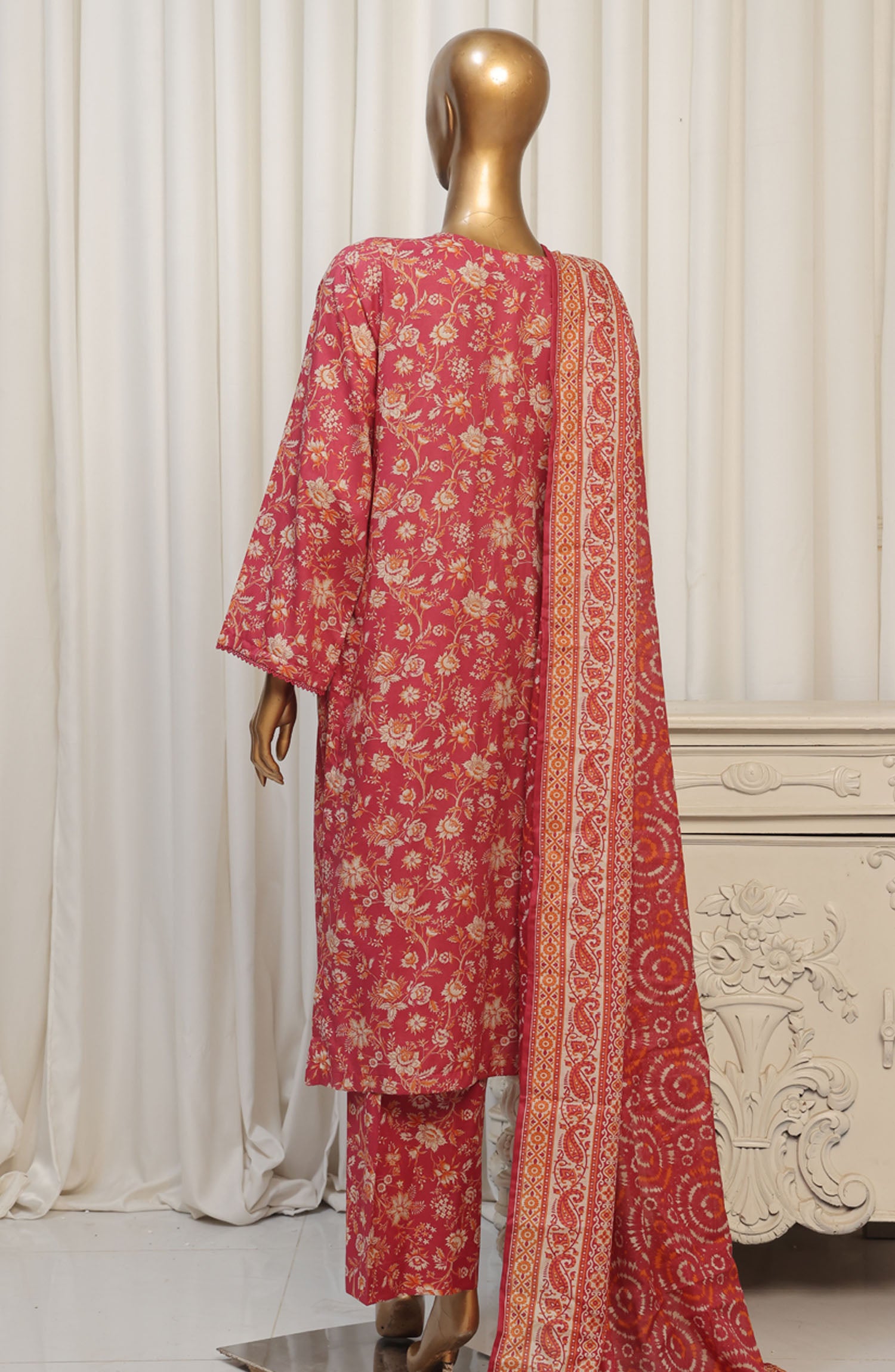 Home Bin Saeed Printed Lawn Stitched 3 Piece Suit - D-12 - BS25EPLV4 - Pink - Summer Collection