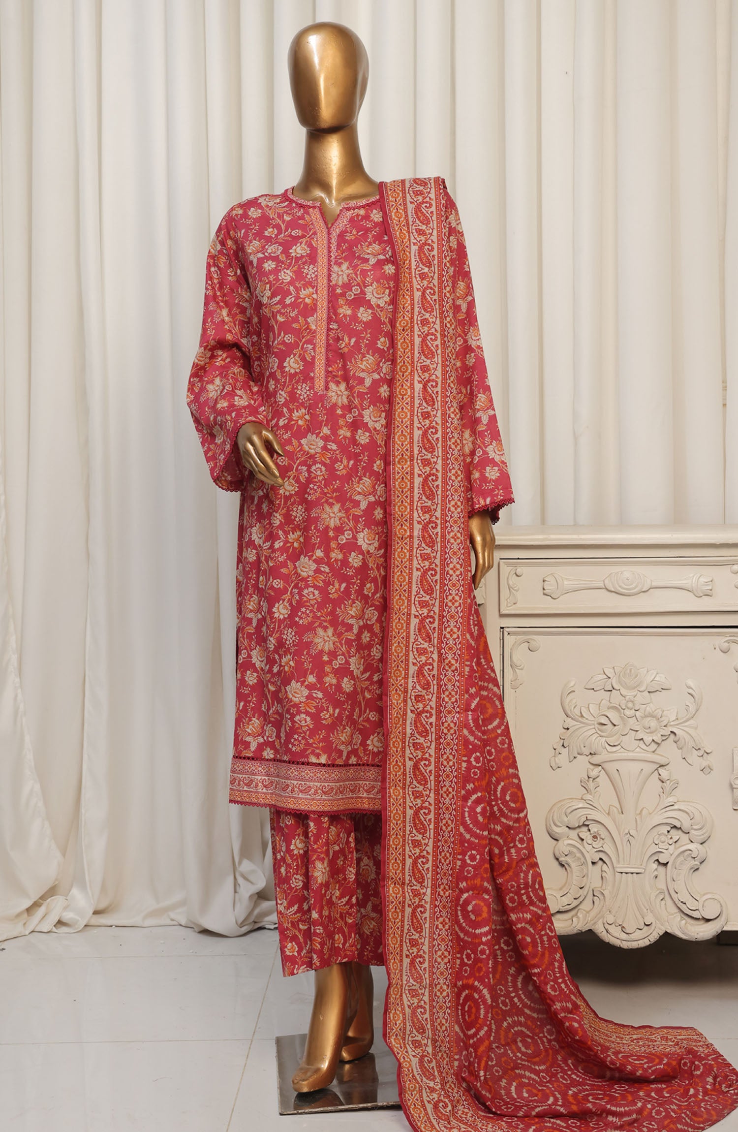 Modest Embroidered Khaddar Stitched 3 Piece Suit - 10040-Pnk - MOD25WNT - Pink - Winter Collection