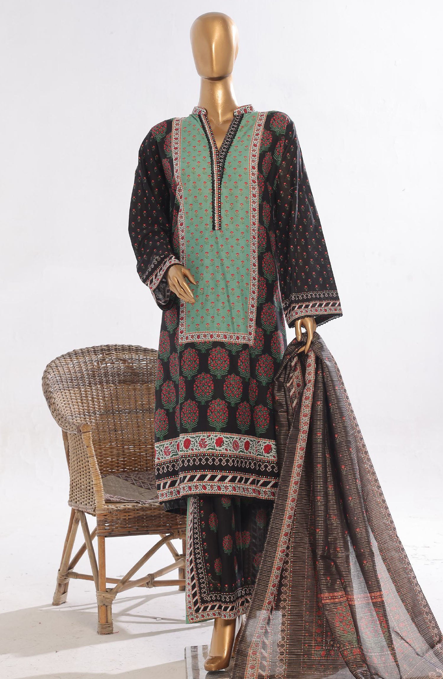 Home Bin Saeed Printed Lawn Stitched 3 Piece Suit - D-13 - BS25EPLV3 - Black - Summer Collection