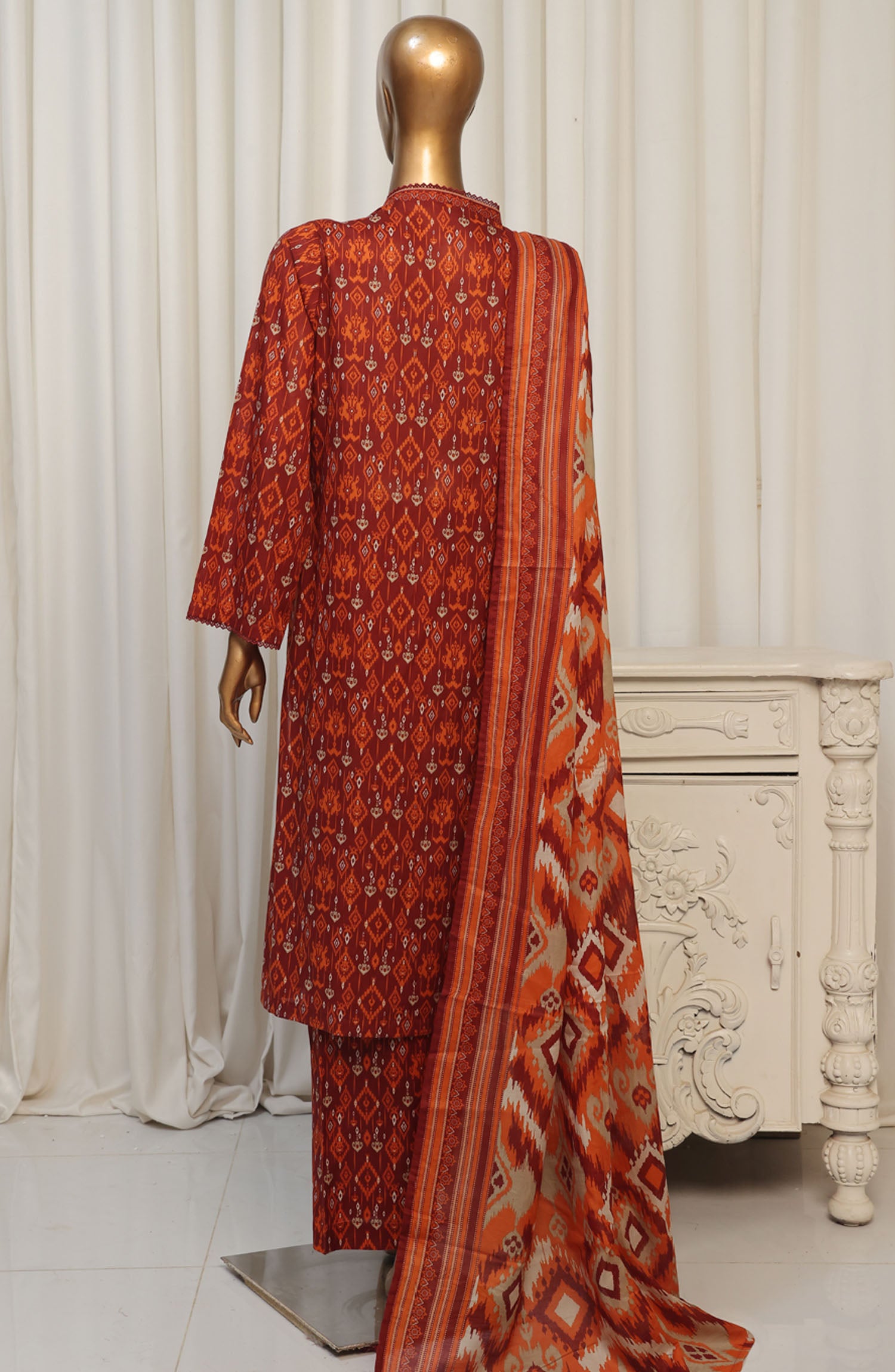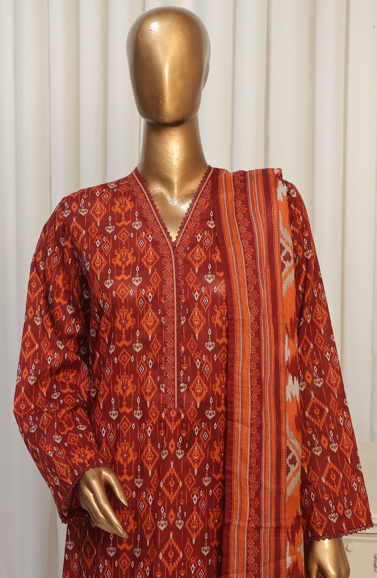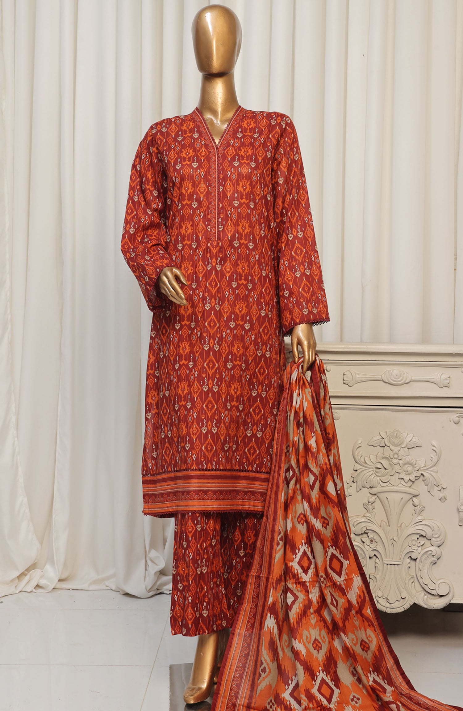 Home Bin Saeed Printed Lawn Stitched 3 Piece Suit - D-13 - BS25EPLV4 - Orange - Summer Collection