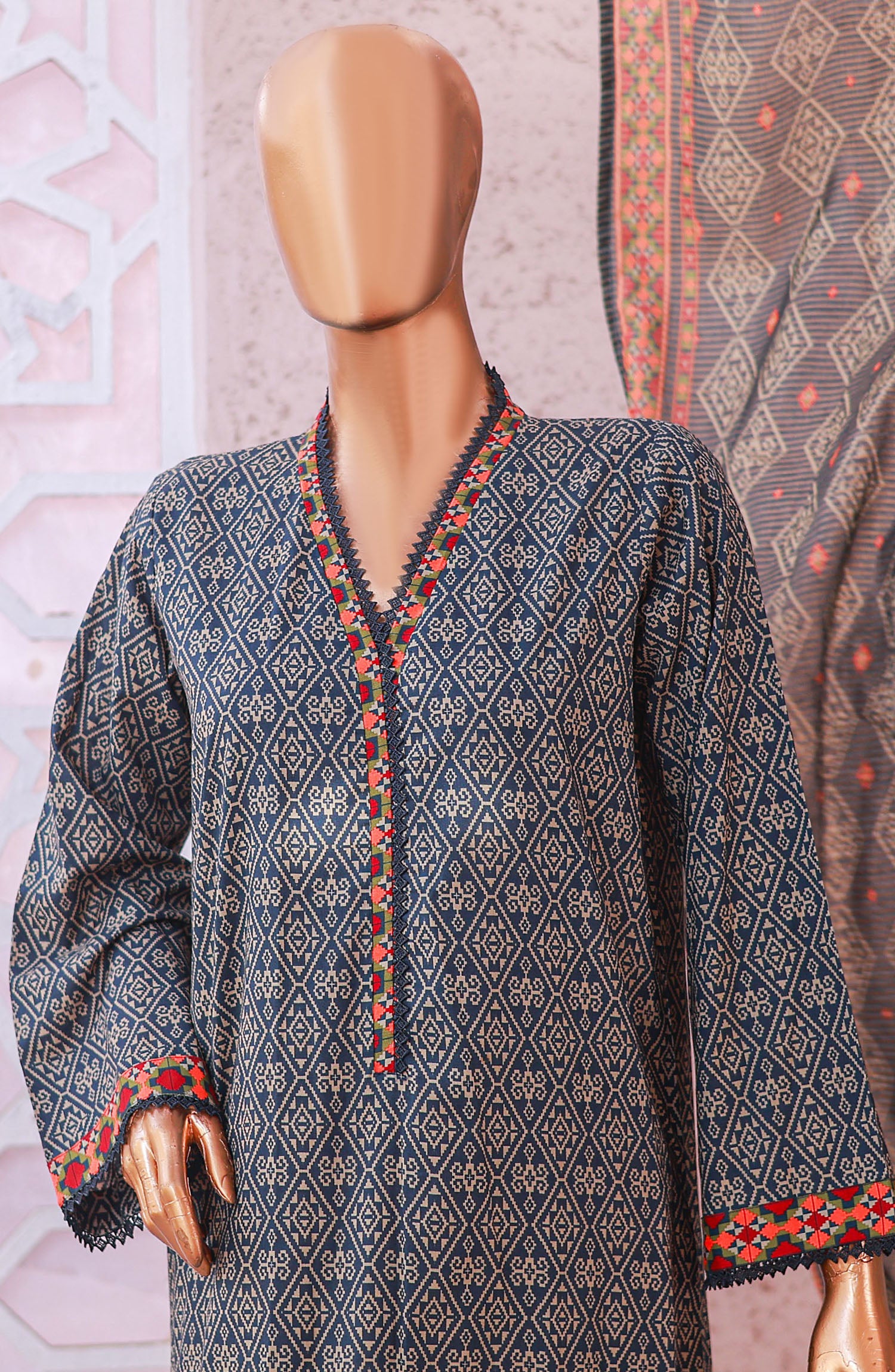 Modest Embroidered Khaddar Stitched 3 Piece Suit - 9990-Blk - MOD25WNT - Black - Winter Collection