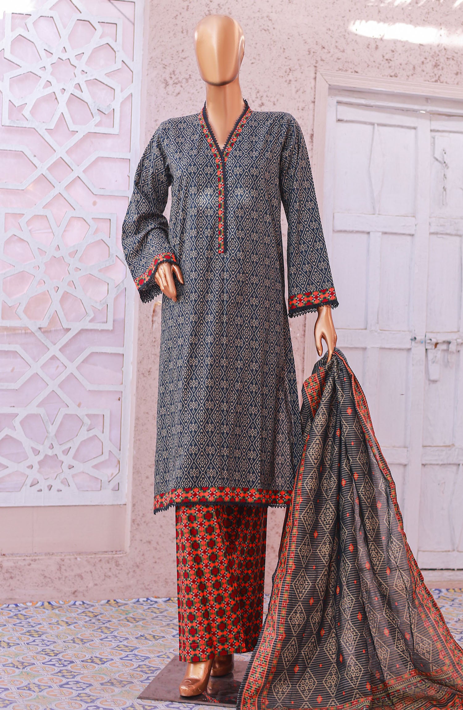 Home Bin Saeed Printed Lawn Stitched 3 Piece Suit - D-13 - BS25EPLV5 - Black - Summer Collection