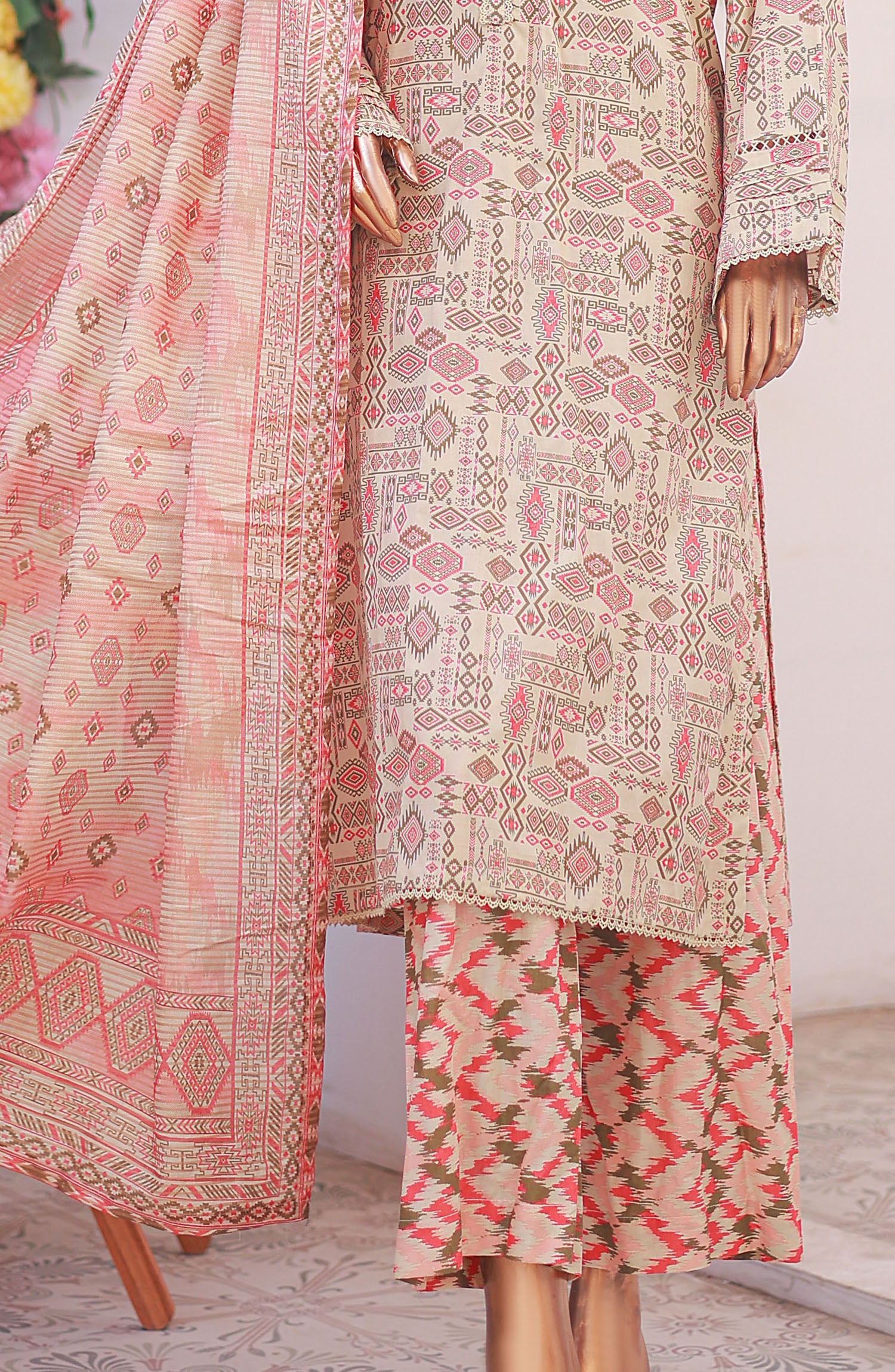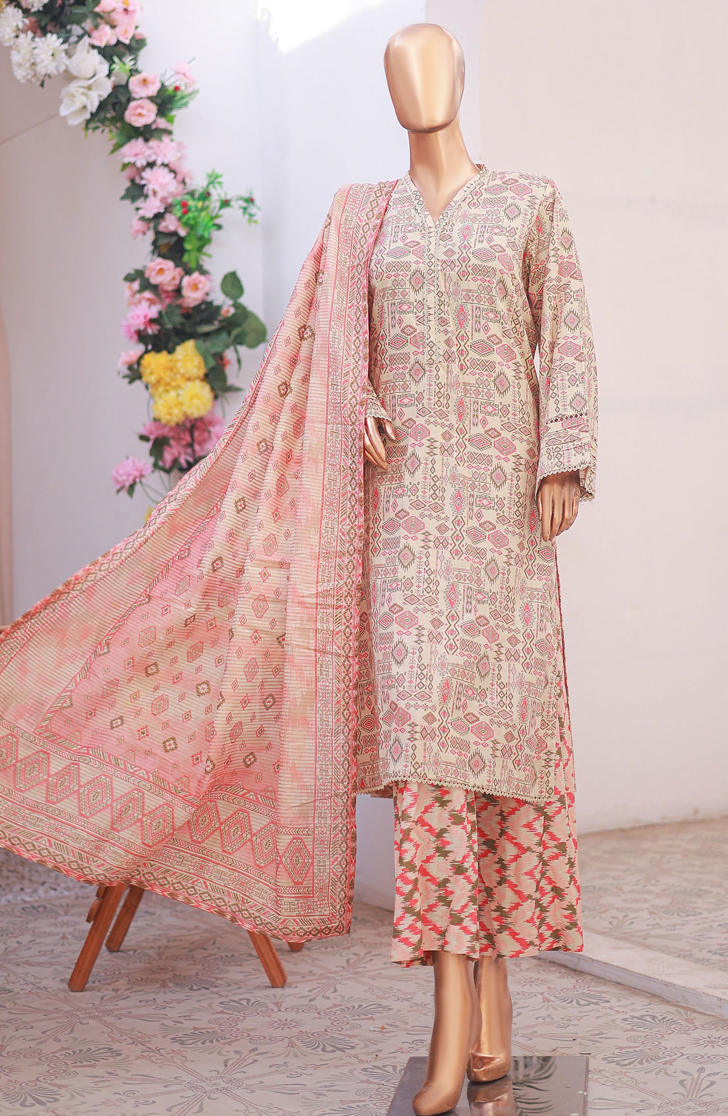 Home Bin Saeed Printed Lawn Stitched 3 Piece Suit - D-13 - BS25PLV6 - Beige - Summer Collection