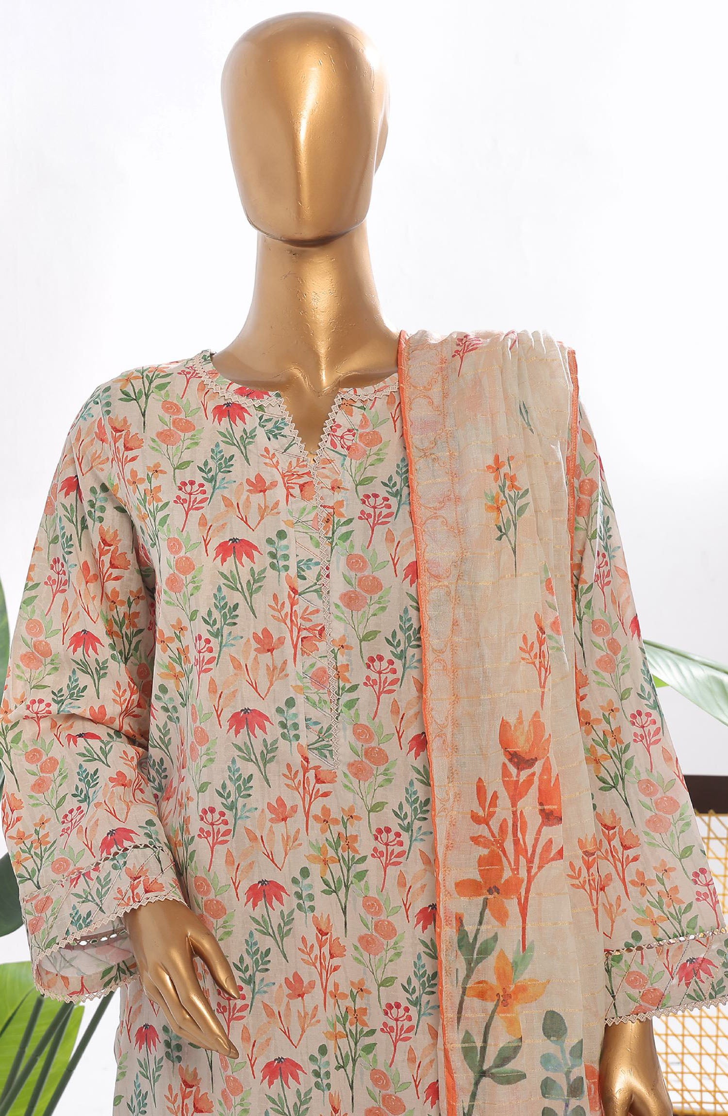 Bin Saeed Printed Lawn Stitched 3 Piece Suit - D-14 - BS25EPLV3 - Off White - Summer Collection