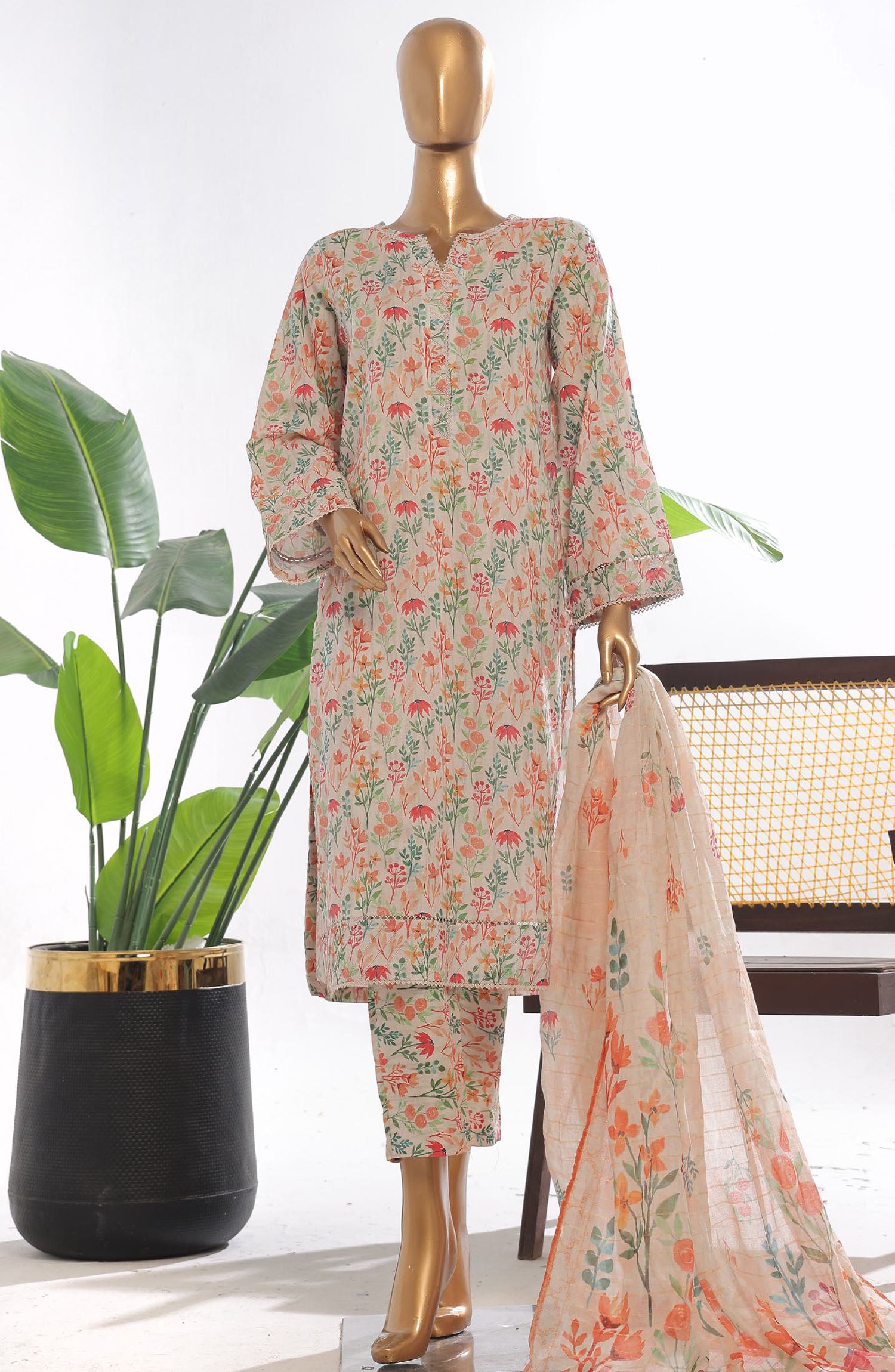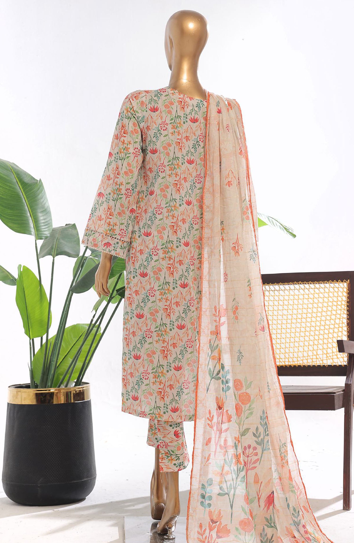 Home Bin Saeed Printed Lawn Stitched 3 Piece Suit - D-14 - BS25EPLV3 - Off White - Summer Collection