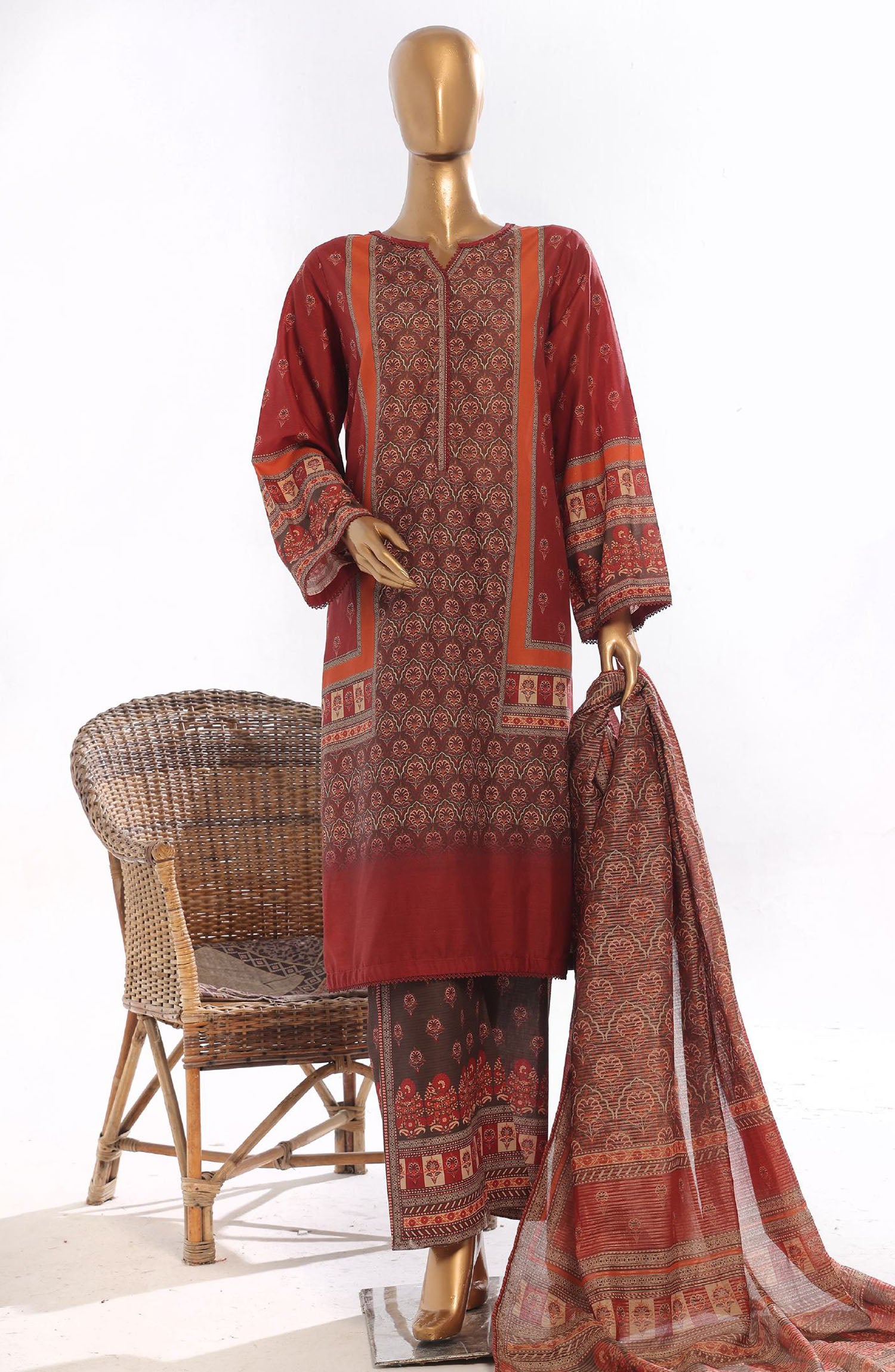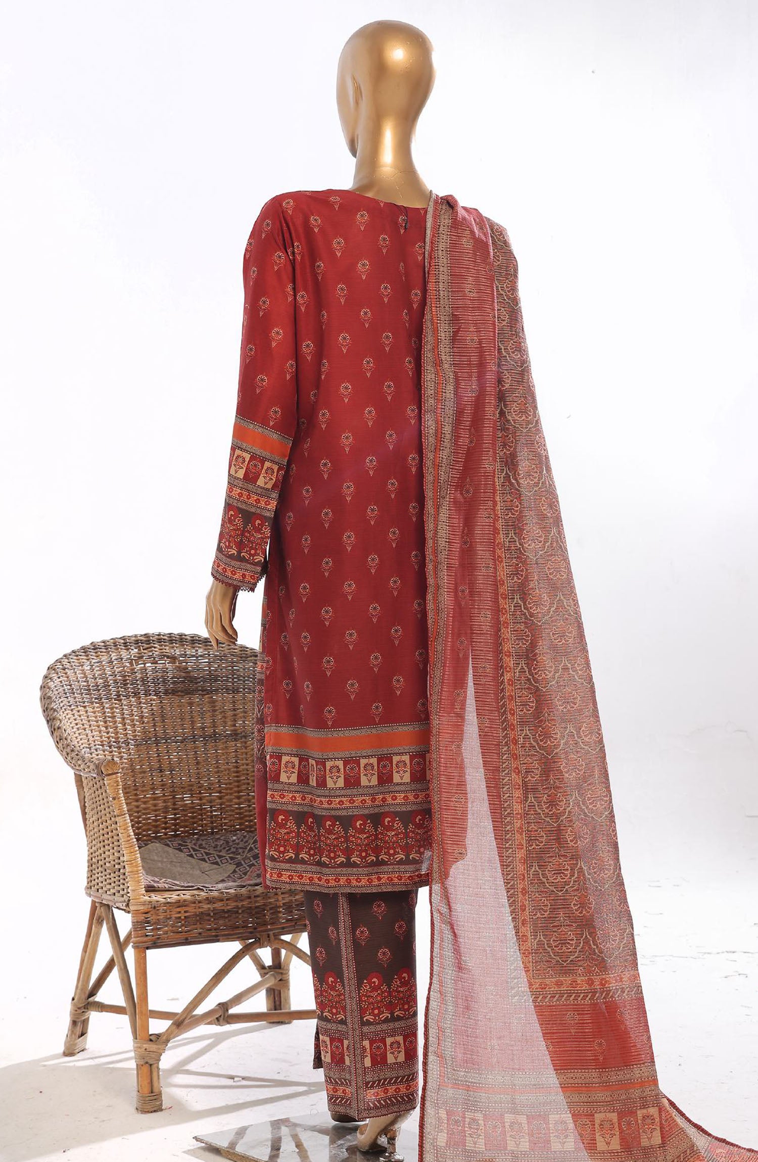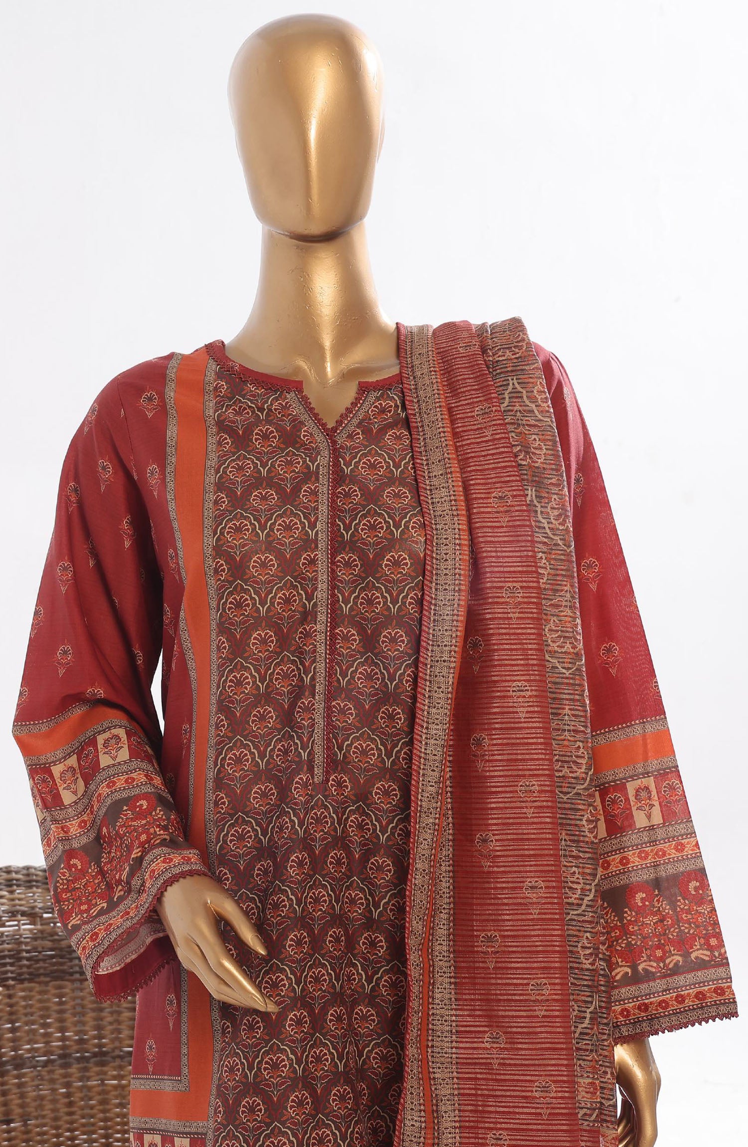 Home Bin Saeed Printed Lawn Stitched 3 Piece Suit - D-15 - BS25EPLV3 - Red - Summer Collection