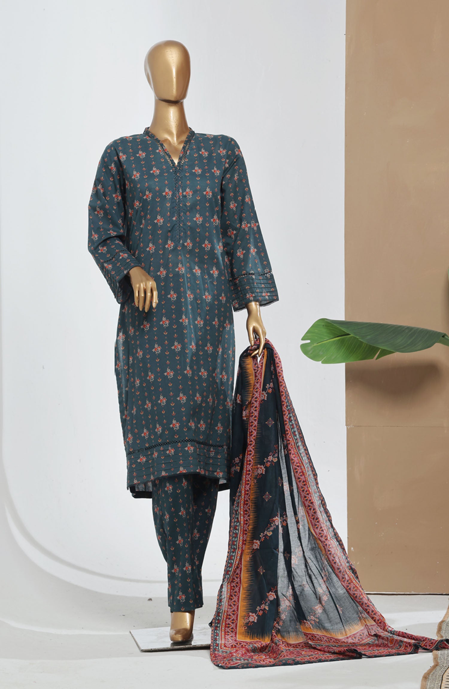 Home Bin Saeed Printed Lawn Stitched 3 Piece Suit - D-15 - BS25EPLV8 - Blue - Summer Collection