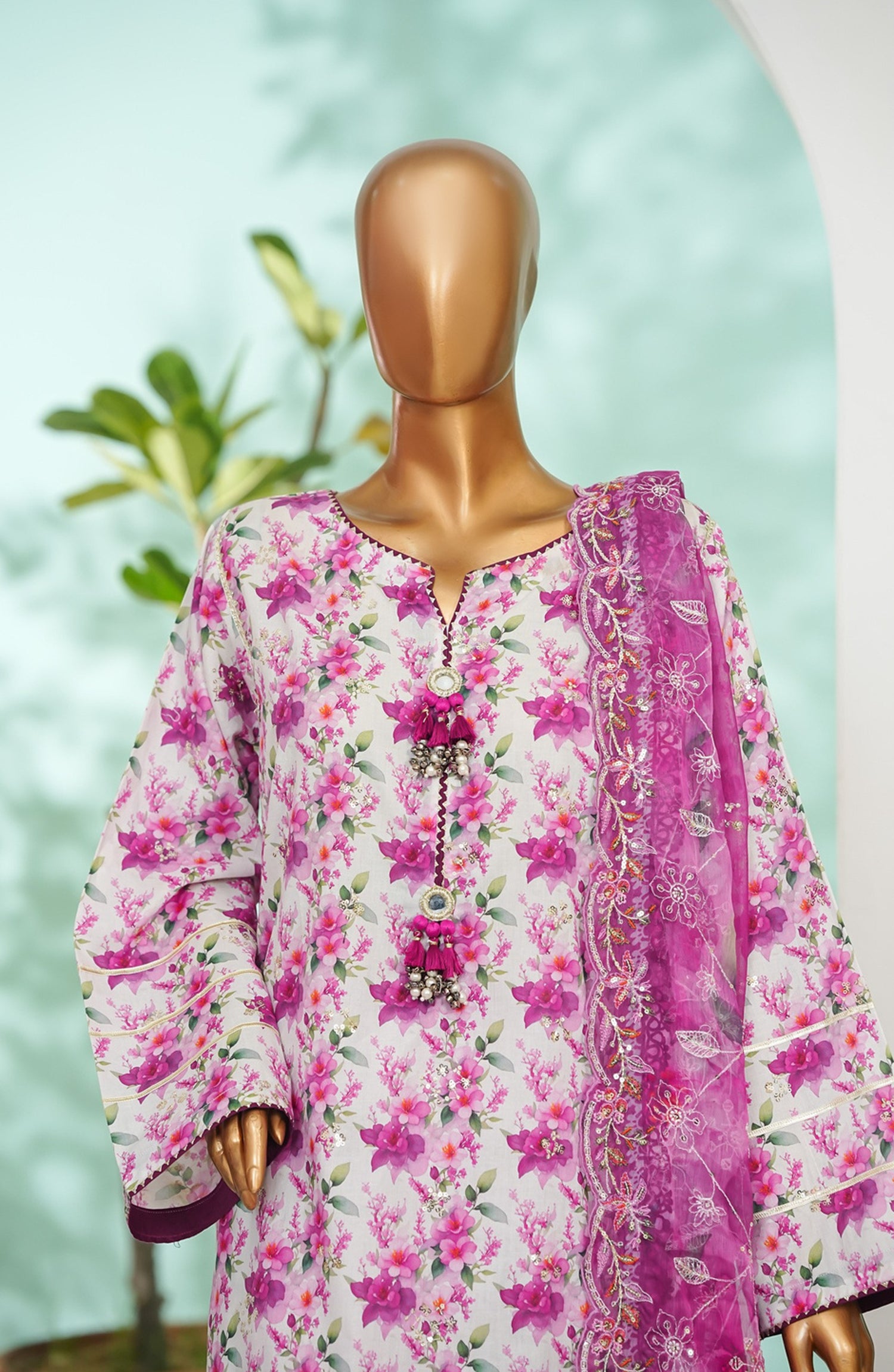 Printed Lawn Stitched 3 Piece Suit with Farshi Shalwar