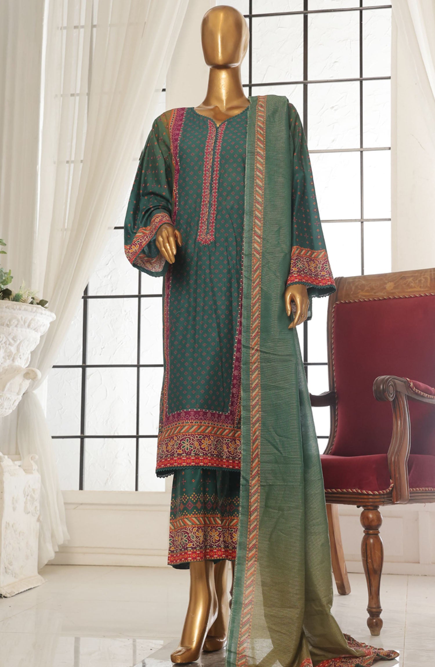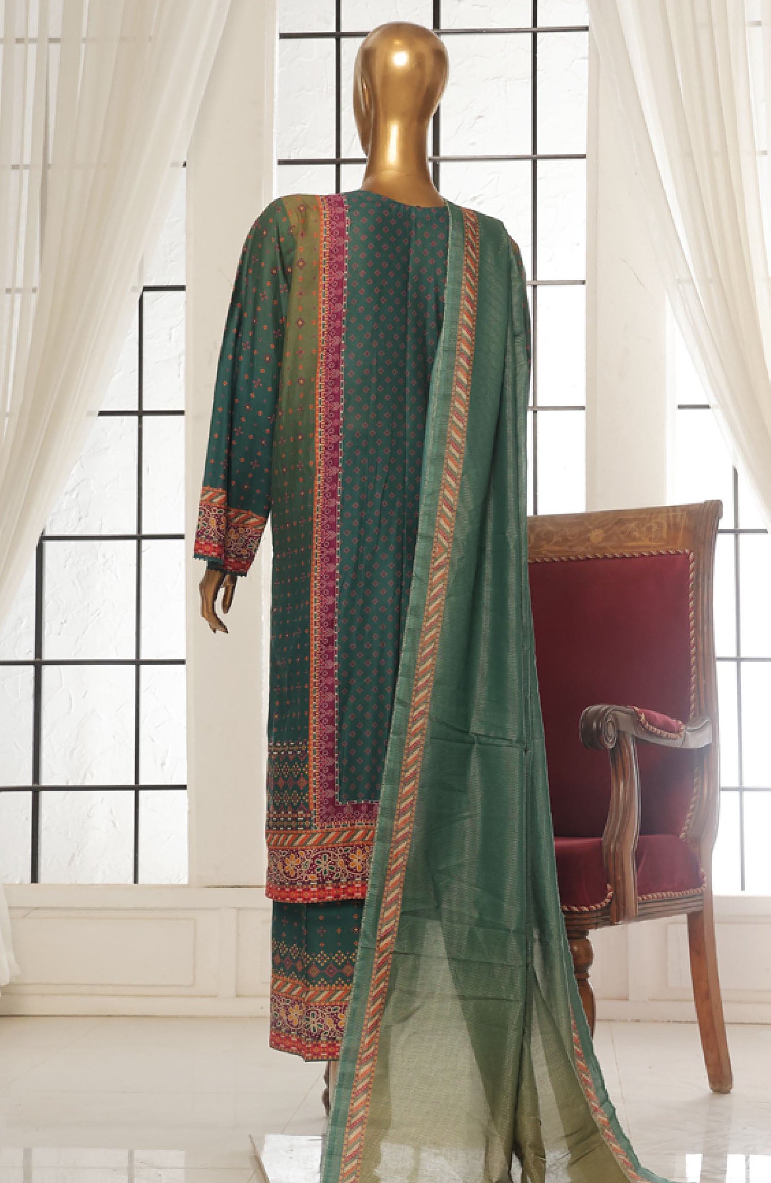 Home Bin Saeed Printed Lawn Stitched 3 Piece Suit - SM-111 - BS25EPLV2 - Green - Summer Collection