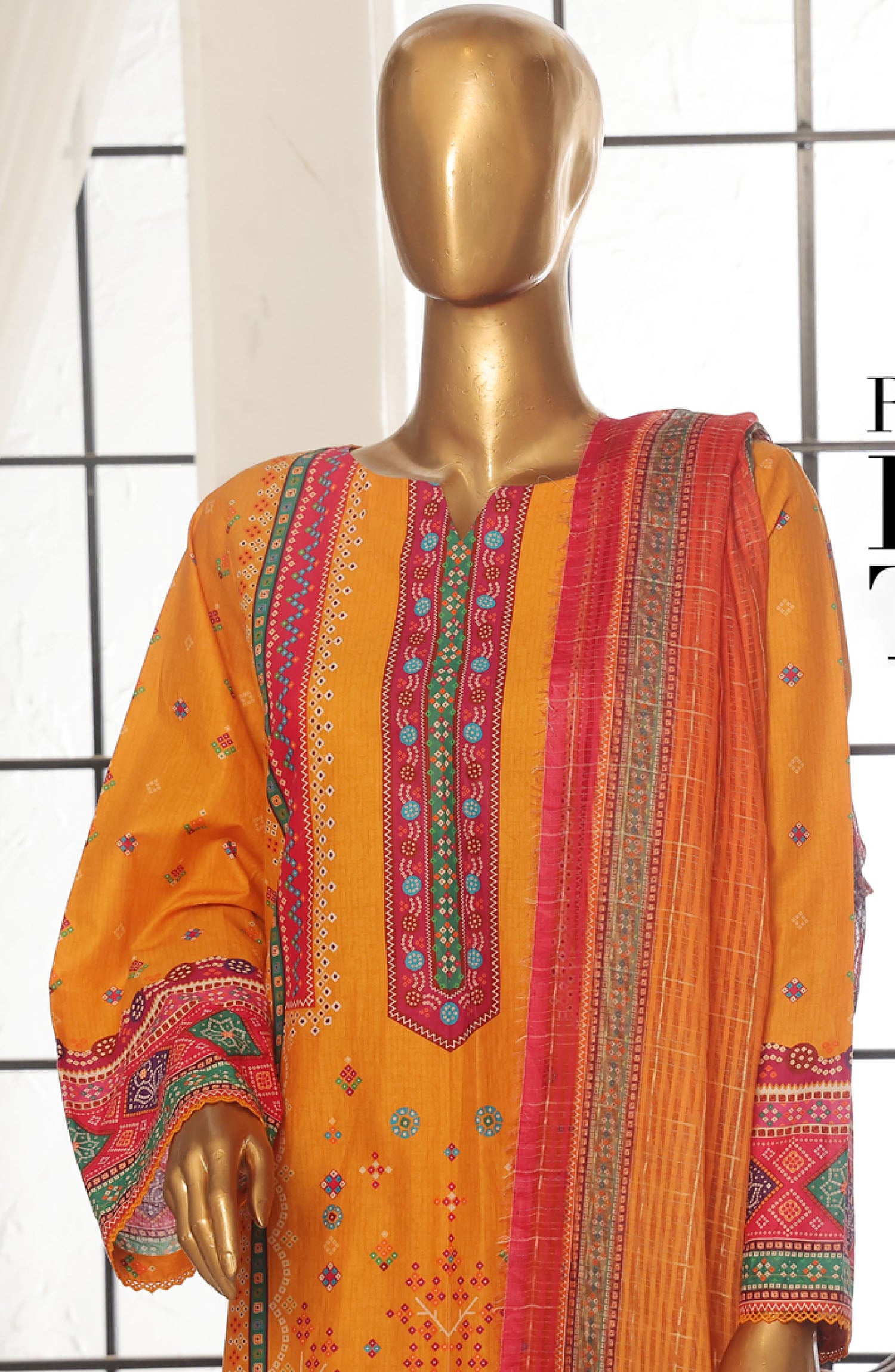 Bin Saeed Printed Lawn Stitched 3 Piece Suit - SM-113 - BS25EPLV2 - Mustard - Summer Collection