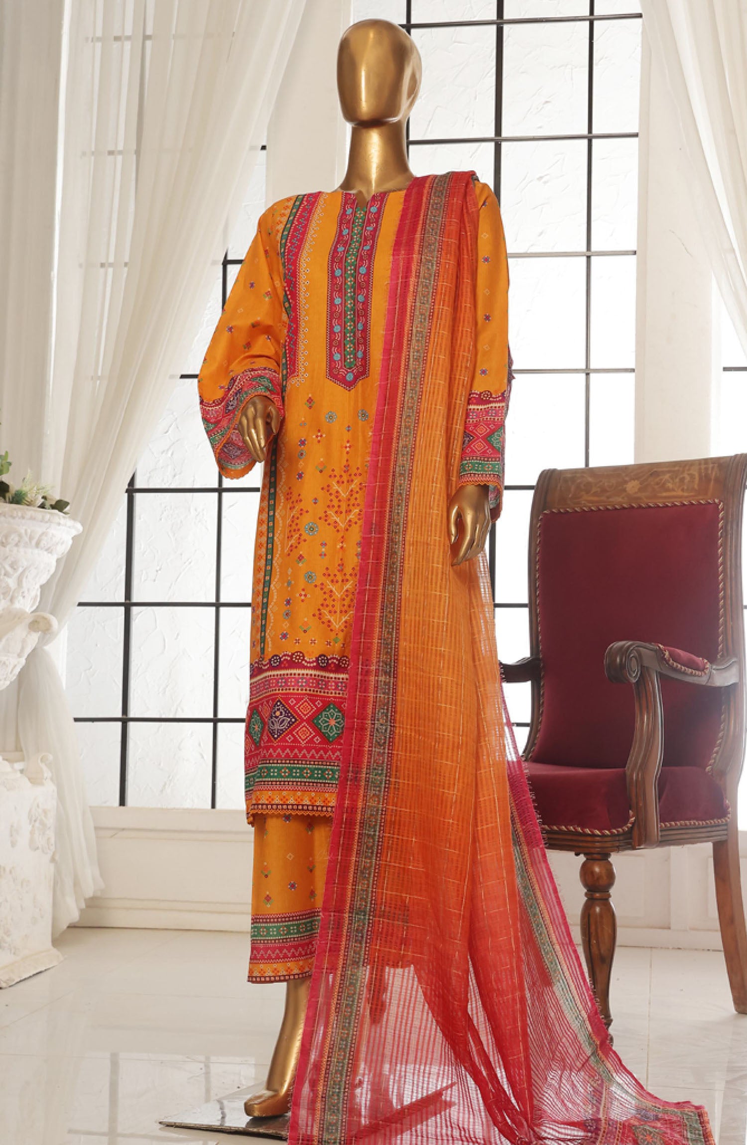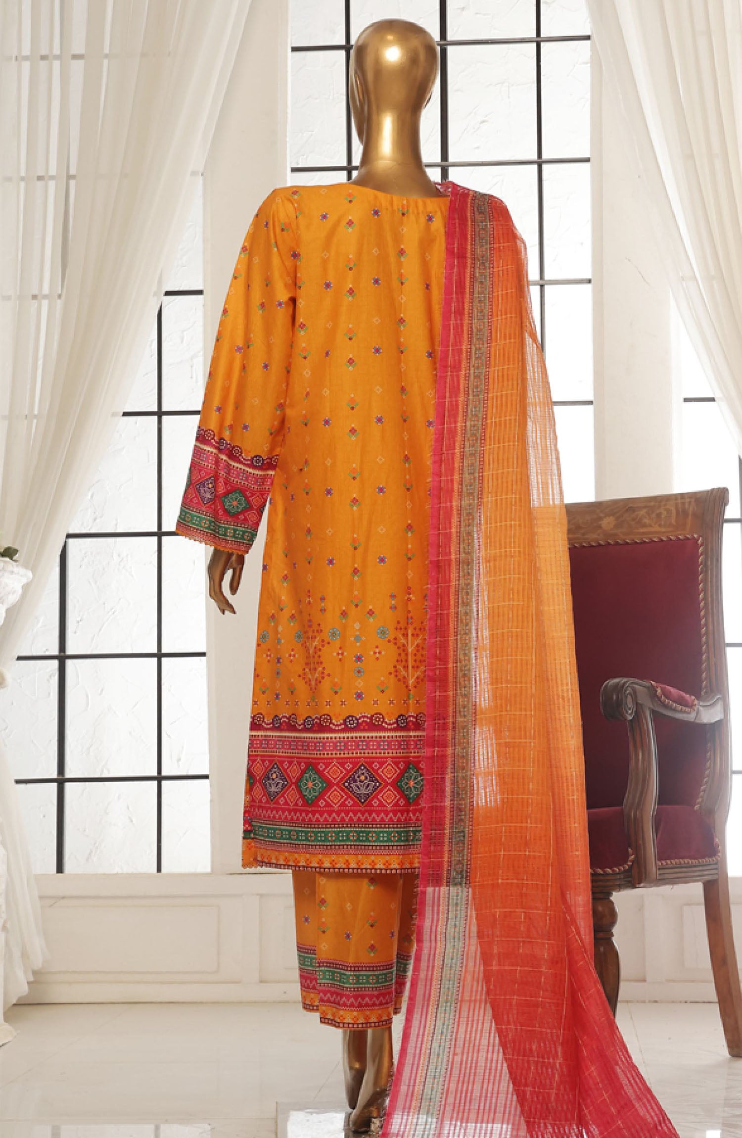 Home Bin Saeed Printed Lawn Stitched 3 Piece Suit - SM-113 - BS25EPLV2 - Mustard - Summer Collection