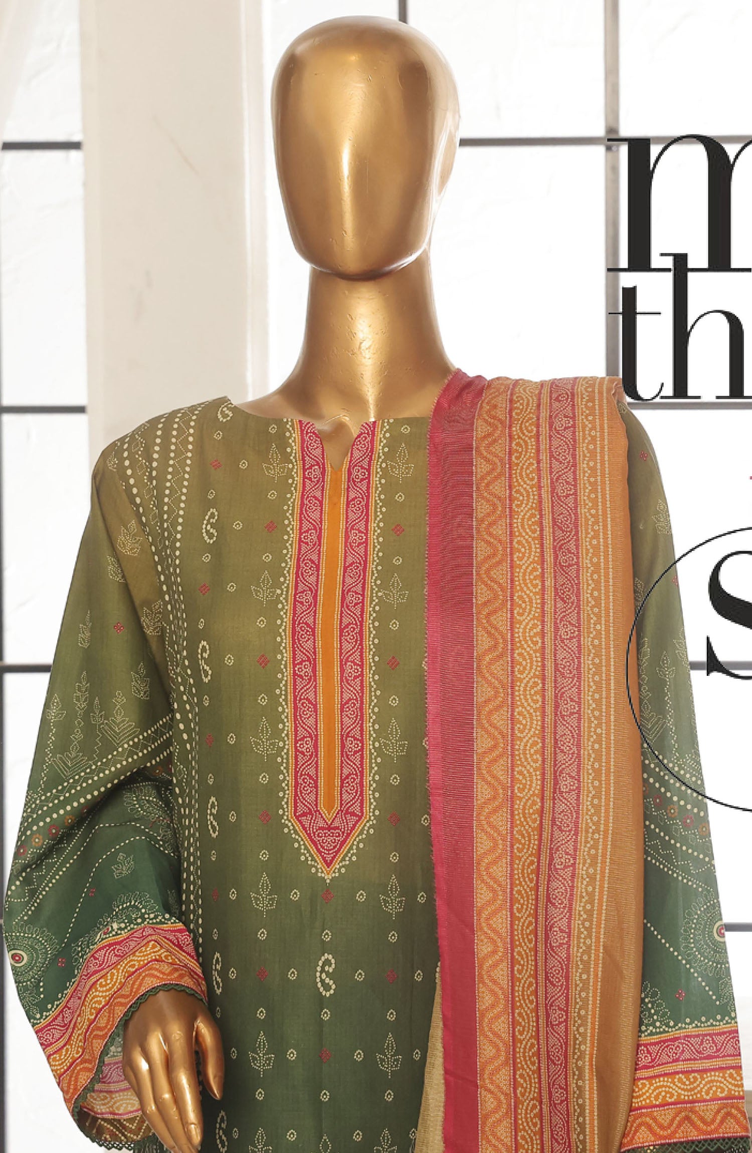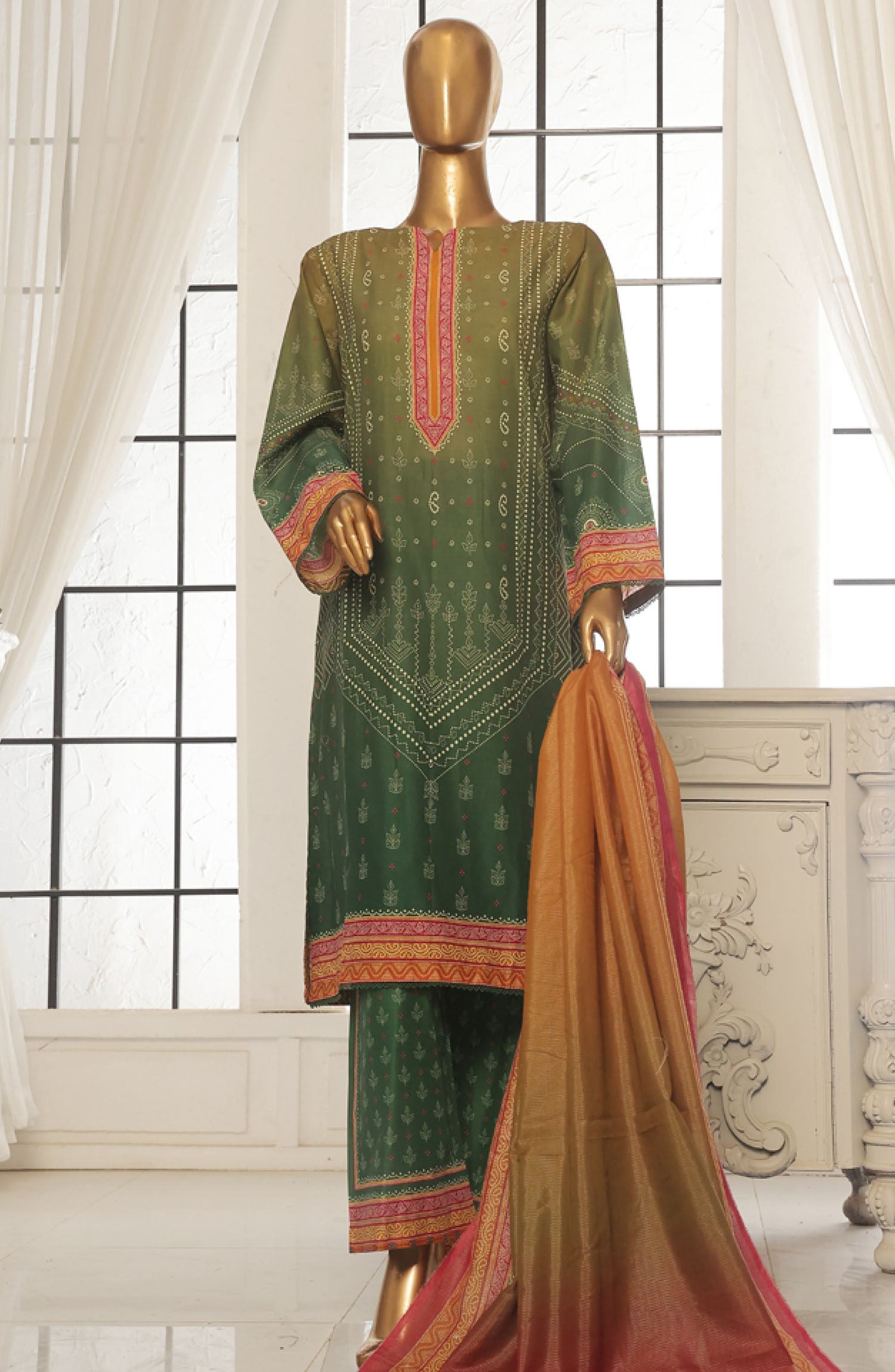 Home Bin Saeed Printed Lawn Stitched 3 Piece Suit - SM-115 - BS25EPLV2 - Green - Summer Collection