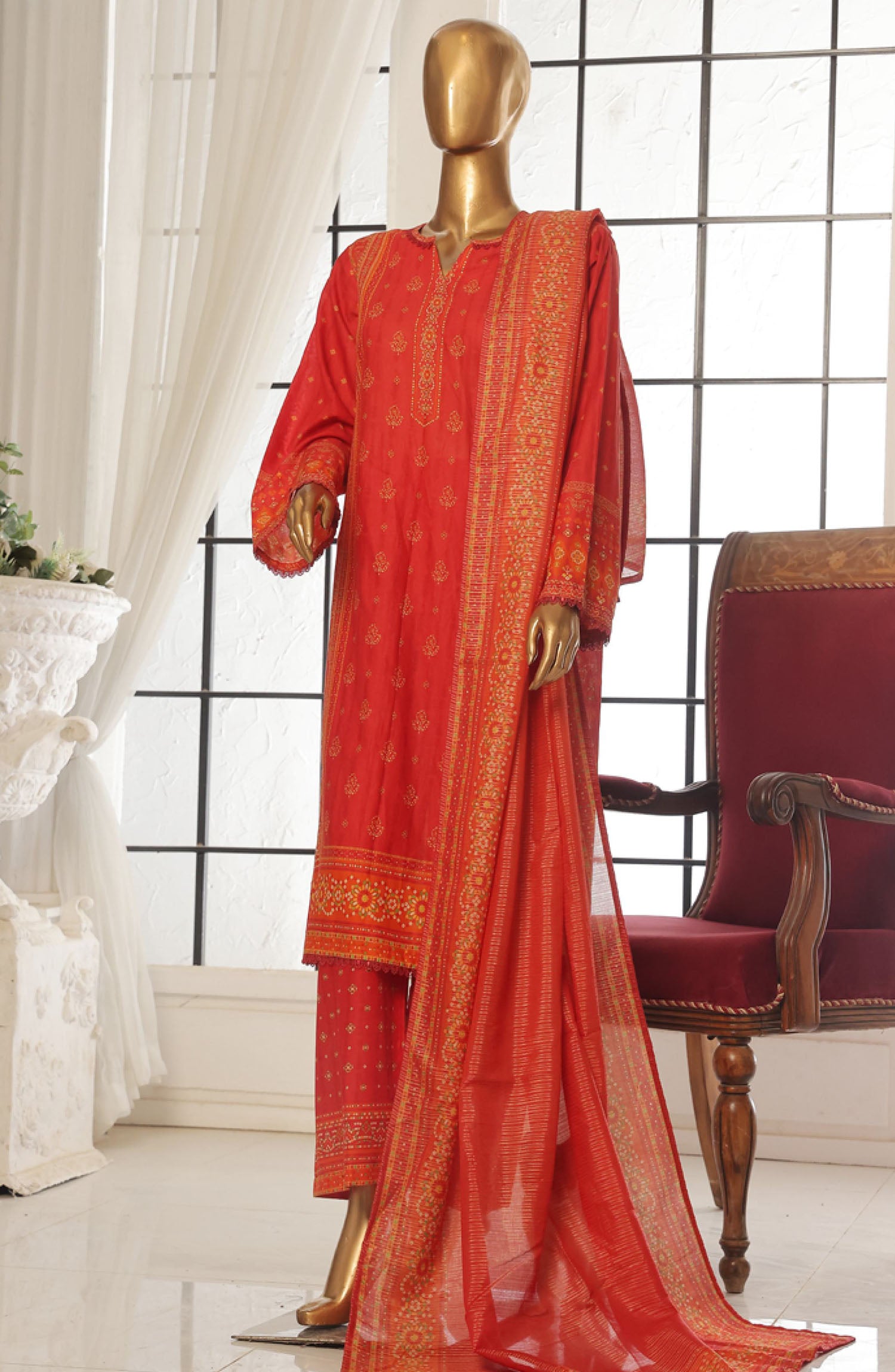 Home Bin Saeed Printed Lawn Stitched 3 Piece Suit - SM-118 - BS25EPLV2 - Red - Summer Collection