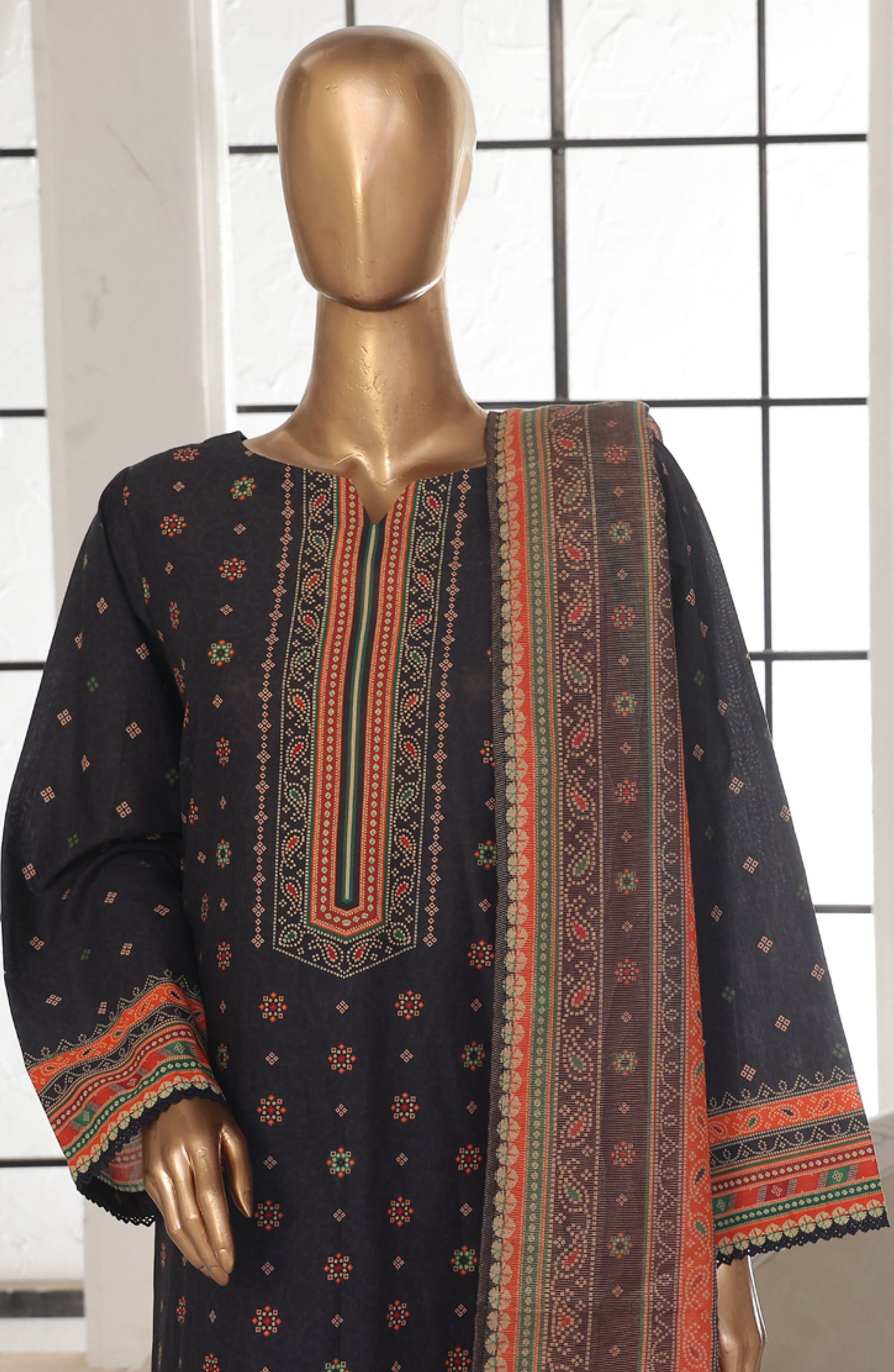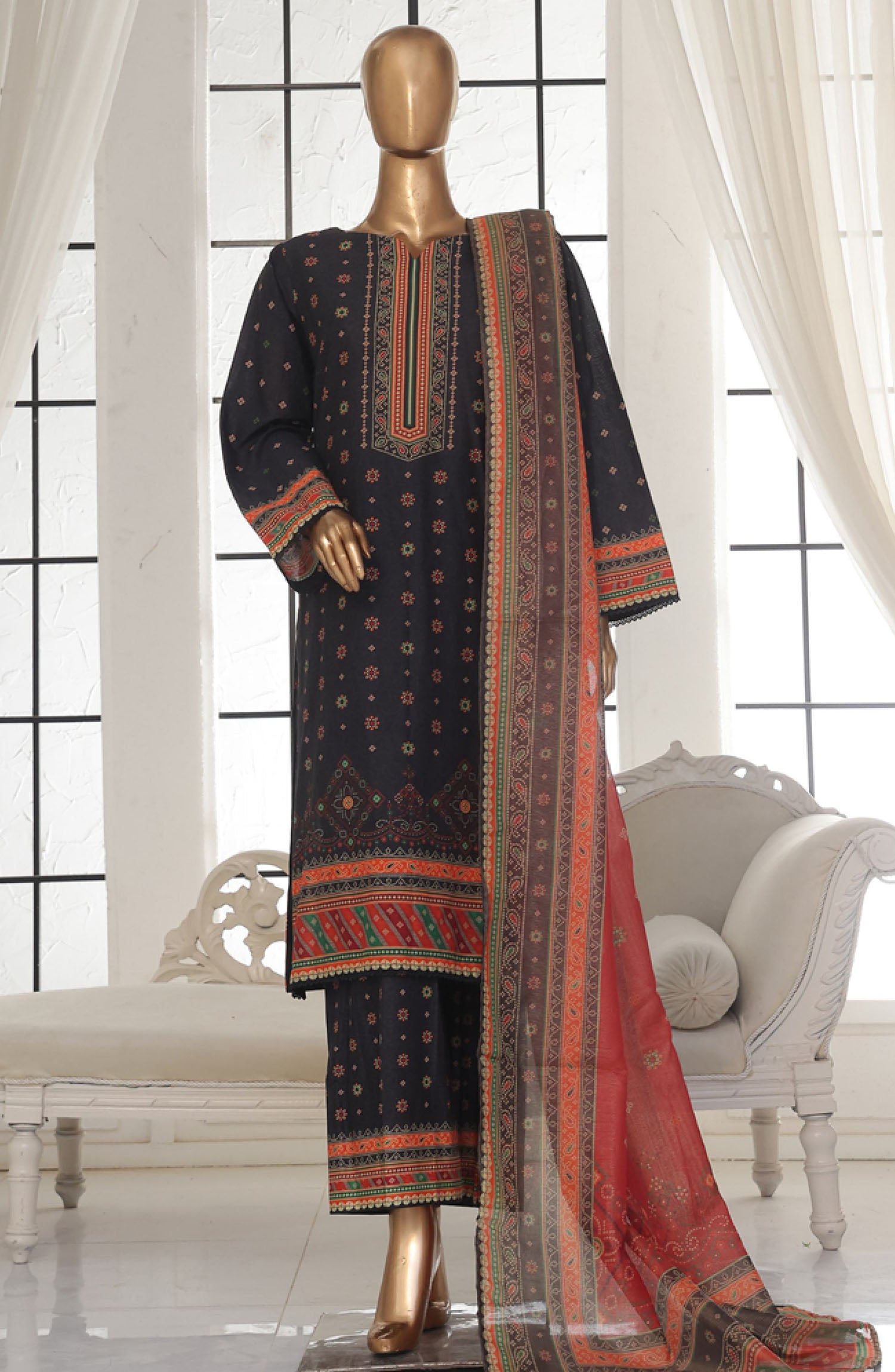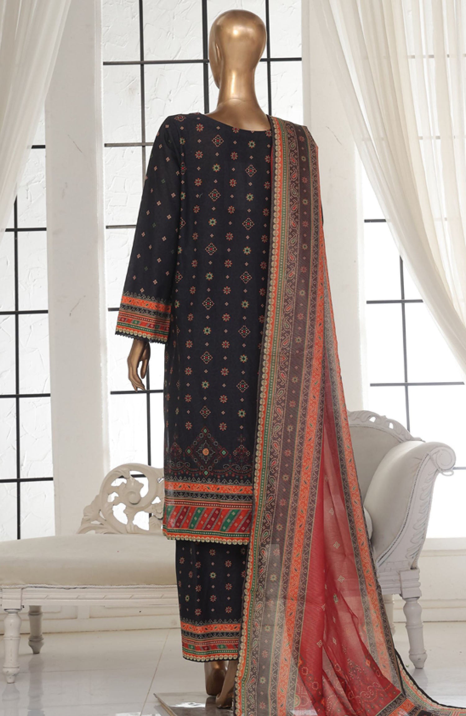 Home Bin Saeed Printed Lawn Stitched 3 Piece Suit - SM-123 - BS25EPLV2 - Black - Summer Collection