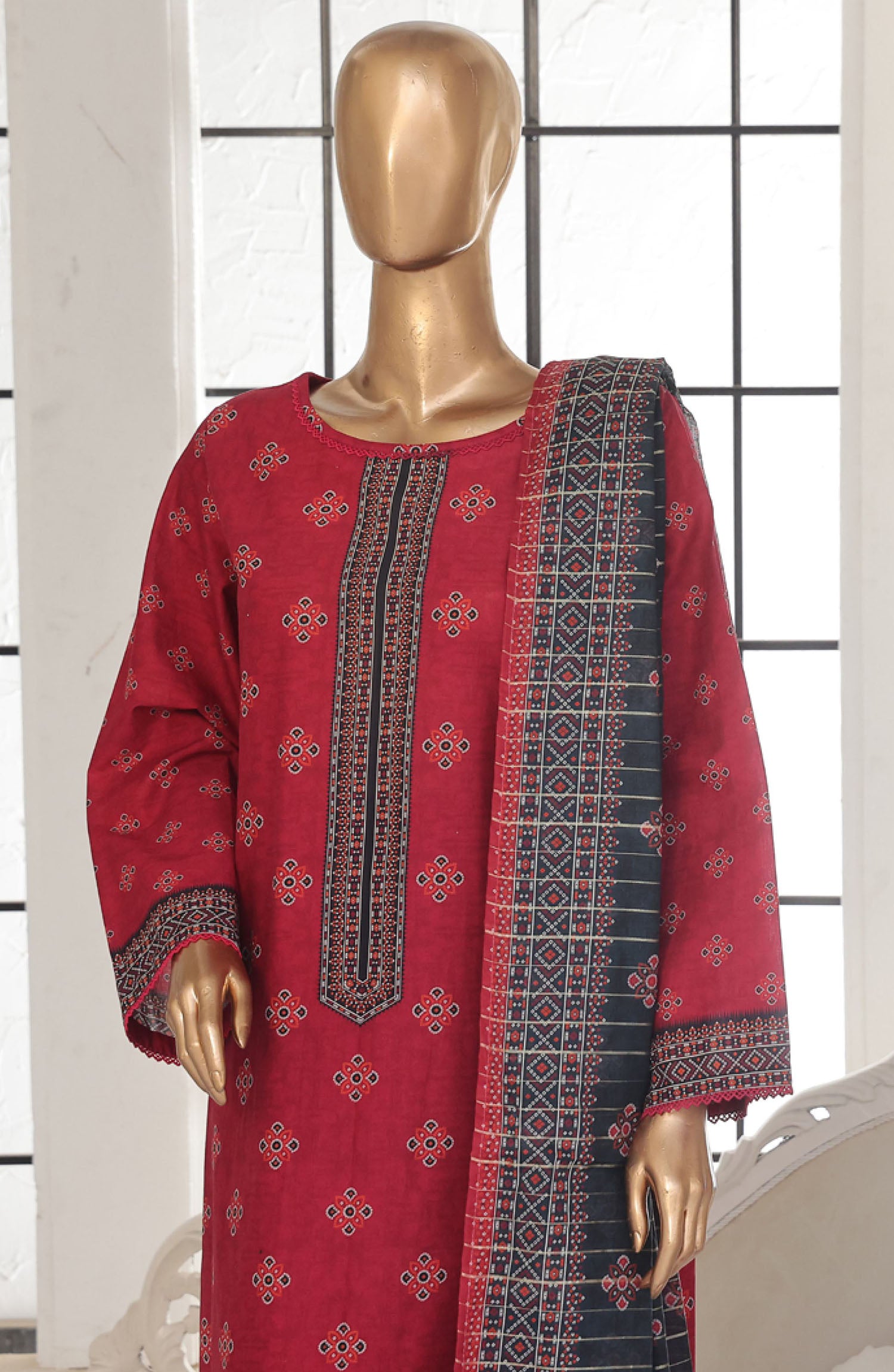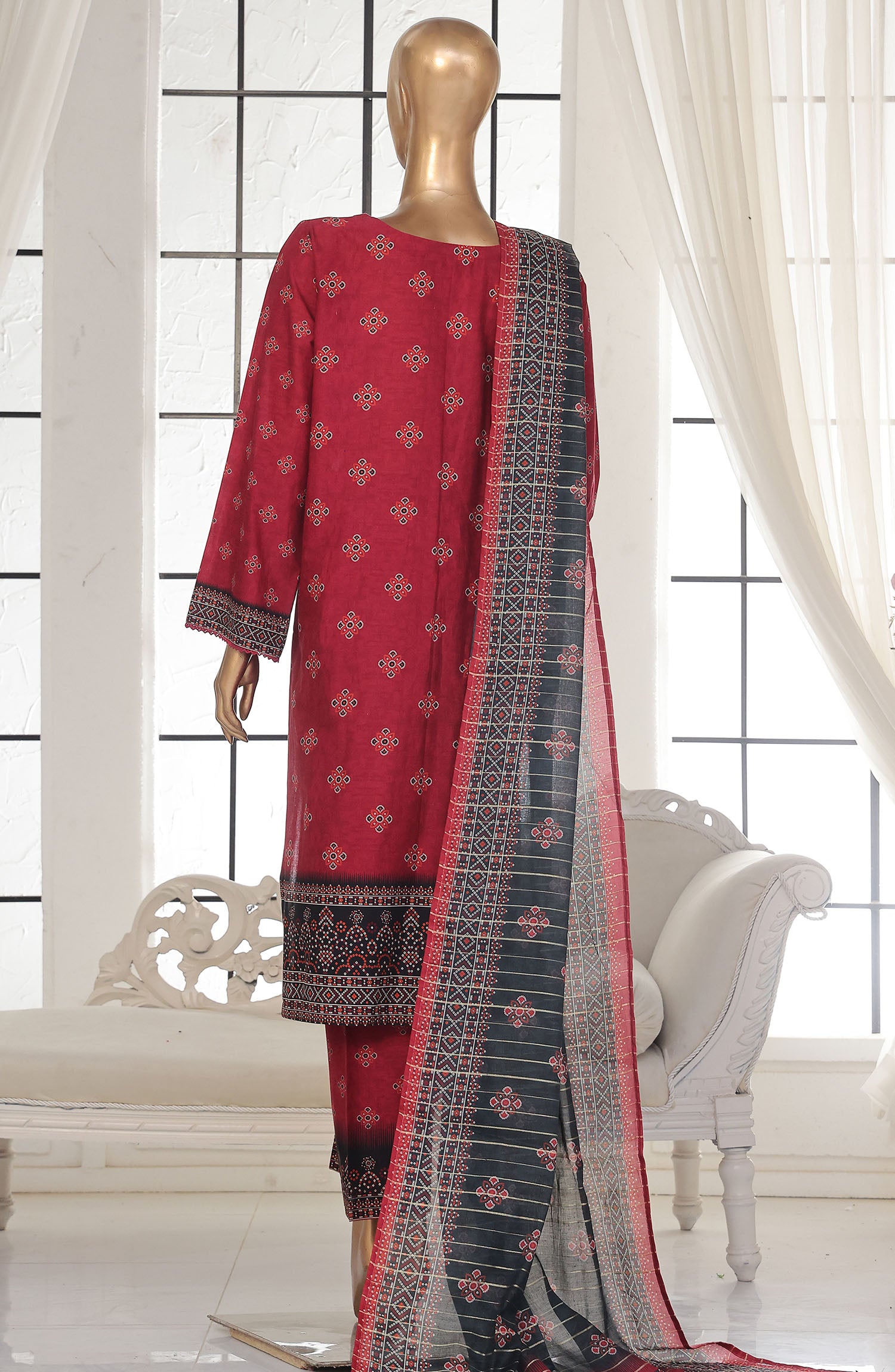 Home Bin Saeed Printed Lawn Stitched 3 Piece Suit - SM-126 - BS25EPLV2 - Red - Summer Collection