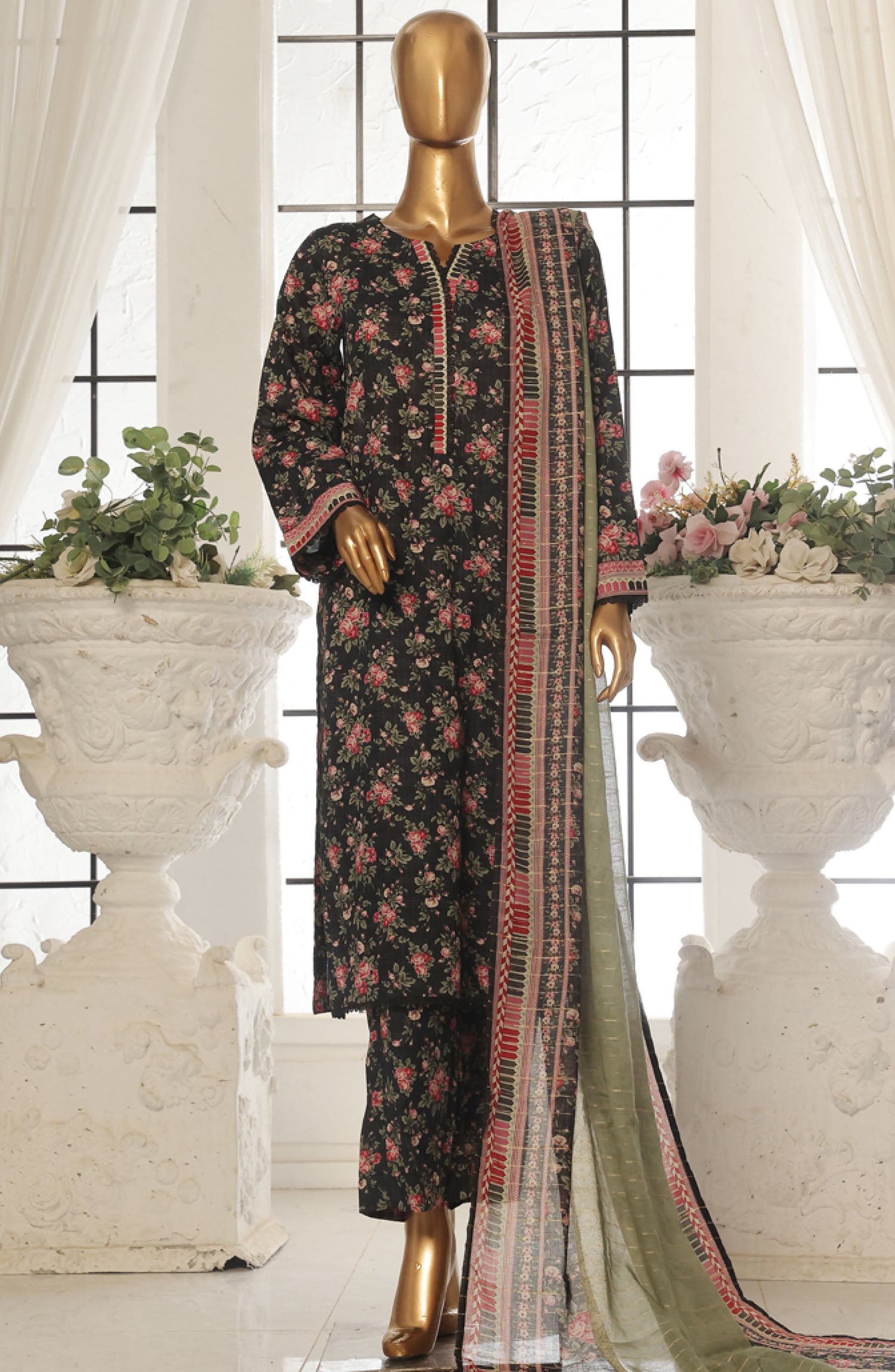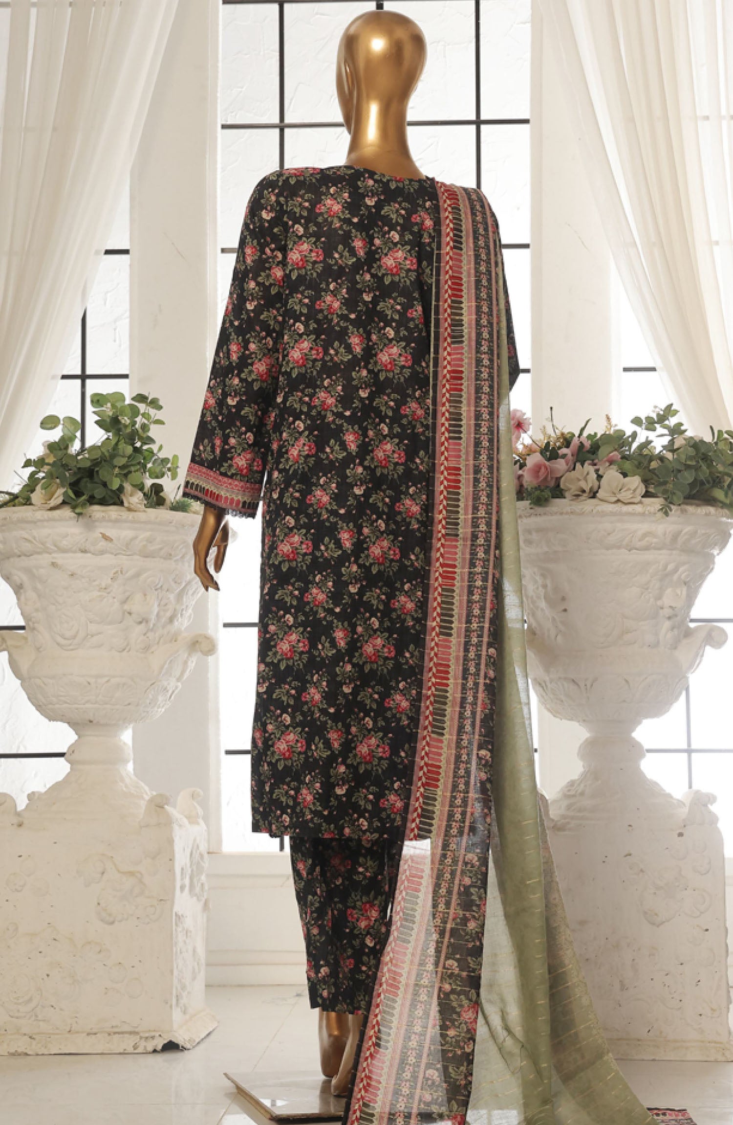 Home Bin Saeed Printed Lawn Stitched 3 Piece Suit - SM-130 - BS25EPLV2 - Black - Summer Collection