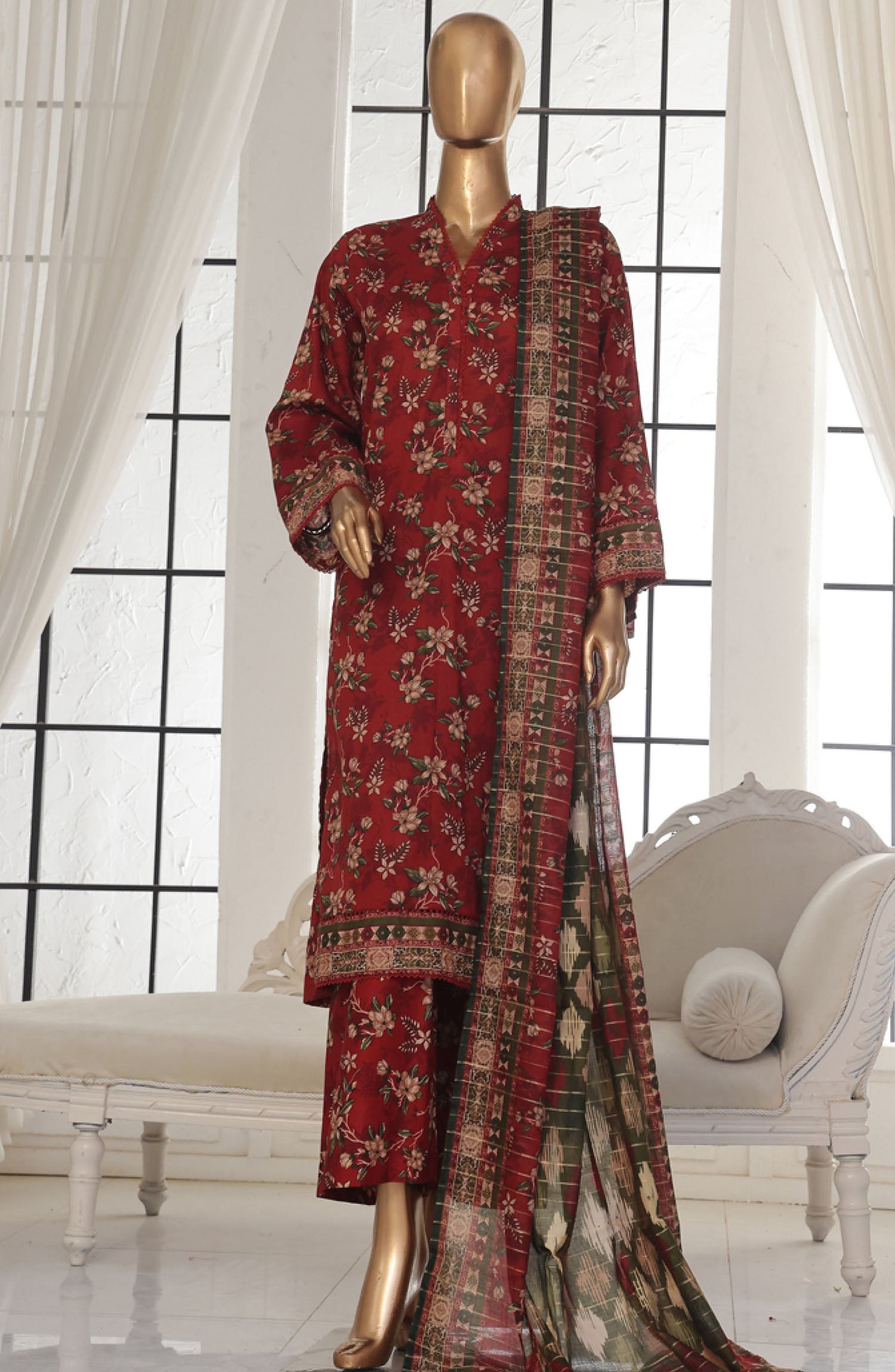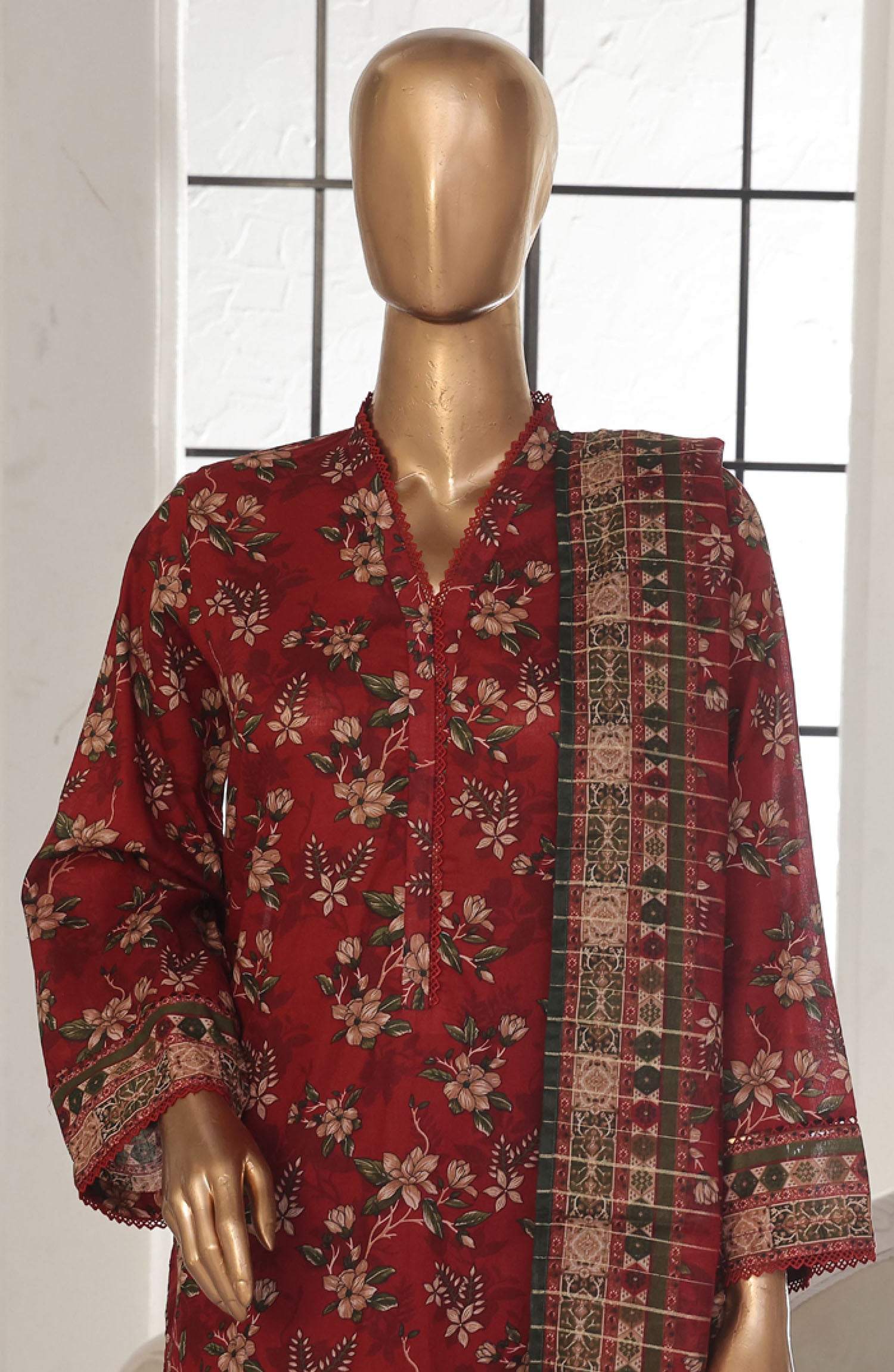 Home Bin Saeed Printed Lawn Stitched 3 Piece Suit - SM-131 - BS25EPLV2 - Maroon - Summer Collection